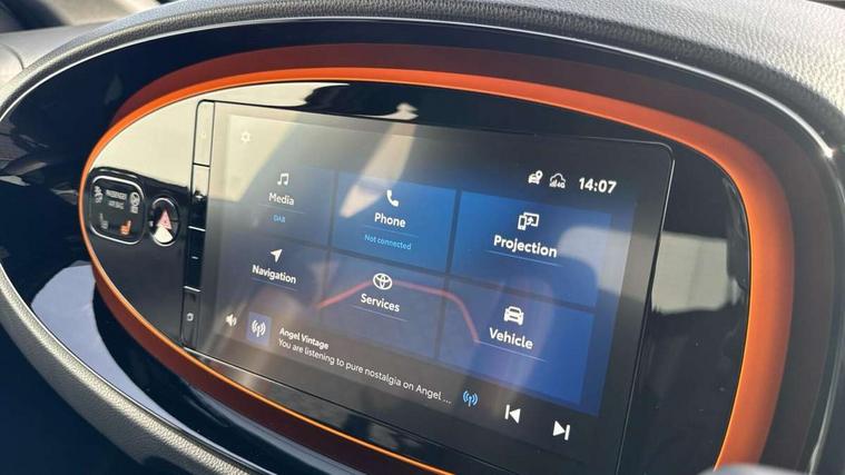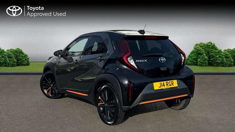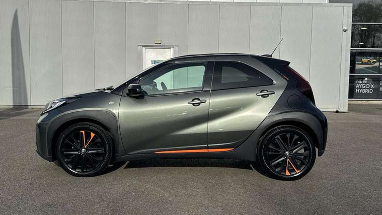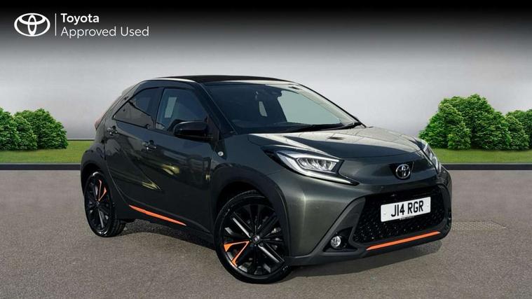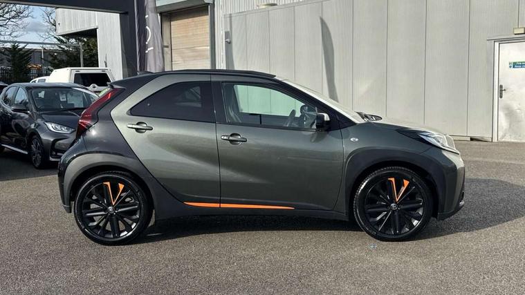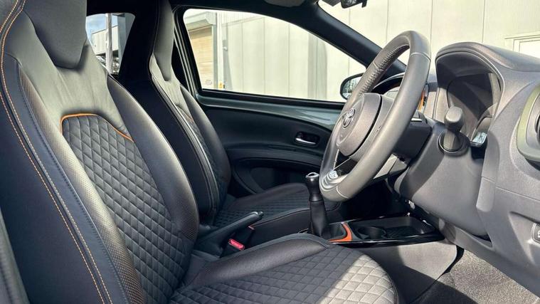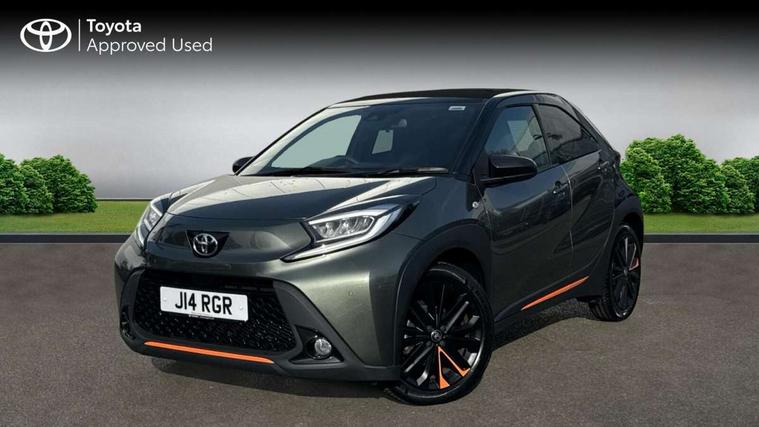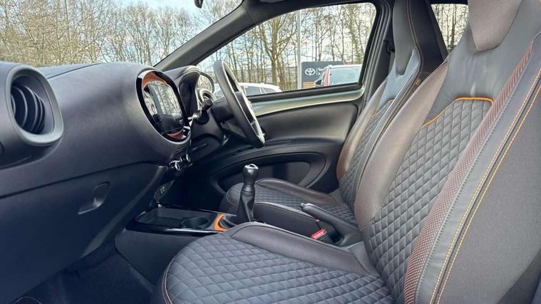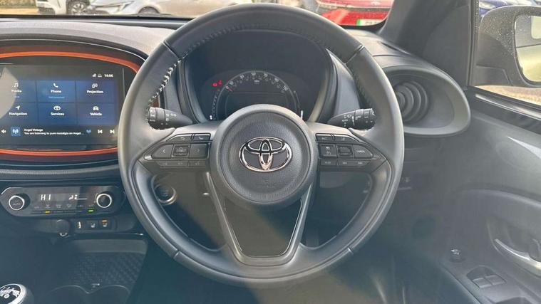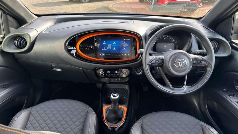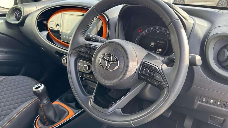 4.2" TFT colour screen, Adjustable speed limiter, Analogue speedometer, Bluetooth connectivity, Digital tachograph, Driver attention alert system, eCall emergency call system, Electric power steering, Front and rear parking sensors with auto brake, Intersection turn assist, Key reminder warning, Noise reduction kit, Pre collision system with emergency steering assist, Remote boot door release on key, Reversing camera with static guide lines, Smart entry and push button start, Speed limit display, Start and stop, Wireless charger, Wireless Smartphone Integration includes Apple CarPlay and Android auto, Vehicle Stability Control (VSC), 4 speakers, 9" HD multimedia display touch screen with Toyota smart connect, DAB digital audio broadcast, USB connector, Auto headlights, Auto wipers, Automatic headlights cut-off, Automatic high beam On/Off switch, Bicycle towing hook, Black fog light surrounds, Black side protection mouldings, Black wheel arch mouldings, Body colour door handles, Body coloured front bumper, Boot door scuff plate, Canvas roof, Eclipse black rear bumper, Electric heated door mirrors, Follow me home headlights, Front fog lights, Front power windows, Gloss black door mirrors, Gloss black upper front grille, Headlight cut-off reminder, LED daytime running lights guide, LED front light guide, LED High mounted stop lamp, LED projector headlights, Limited edition logo on C pillar, Magnolia strip on lower front and rear bumpers, Manual day/night rear view mirror, Manual headlight levelling, Metallic Bi-tone paint, Power adjustable door mirrors, Privacy glass, Rain sensor, Rear combination lights LED bulb type, Rear side wing doors, Rear windscreen defogger, Rear windscreen wiper, Remote hazard lights system, Short antenna, Variable intermittent windscreen wipers, 12v power outlet - front, 2 seat bench in 2nd row, 3 spoke leather steering wheel, 50/50 split folding rear seat, Adjustable speed limiter switch on steering wheel, Audio and telephone switches on steering wheel, Auto air conditioning, Black insert on steering wheel, Black roof lining, Boot light, Canvas top headlining, Centre room light, Chrome interior door handles, Chrome surround on air conditioning buttons, Clean air filter, Driver and front passenger heated seats, Floor mats, Front and rear cup holders, Front head rest deco art, Front head restraints, Height adjustable driver seat, Intelligent adaptive cruise control switch on steering wheel, ISOFIX child restraint system on rear seats, Lane departure alert switch on steering wheel, Leather gearshift knob, Light blue ambient lighting in centre console, Manual tilt steering wheel, Manually reclining and sliding driver seat, Manually reclining and sliding front passenger seat, Multimedia switches on steering wheel, Partial leather seats, Pollen filter, Rear door pockets, Rear head restraints, Satin silver insert on gear shift knob, Single compartment glovebox with lights, Single front passenger seat, Soft tonneau cover, Sun visors with mirror on driver and passenger side, Voice recognition switch on steering wheel, Toyota safety sense pack - Aygo X, Anti lock braking system + Electronic brake force distribution, Child safety door lock, Emergency brake light signal (EBS), Hill start assist control (HAC), Passenger airbag on/off switch, Seat belt reminder for front and rear seats, Supplement restraints system (SRS) - 6 airbags, Traction control, Tyre pressure warning system, Immobiliser, Remote power door locks, Black wheel centre caps, Mandarina Orange wheel insert, Tyre repair kit,