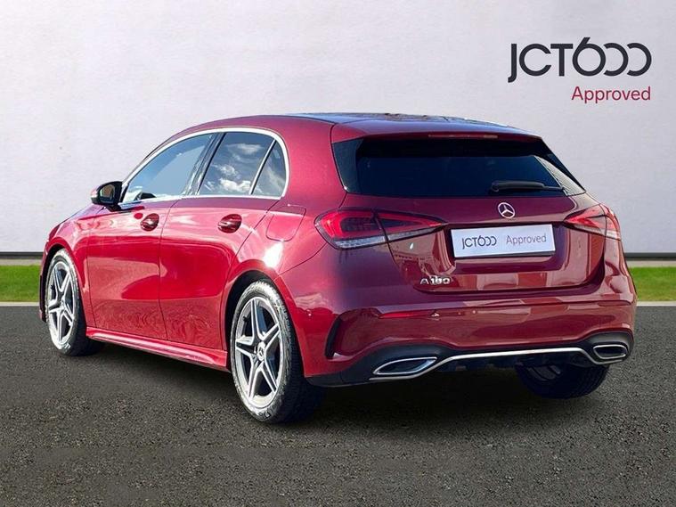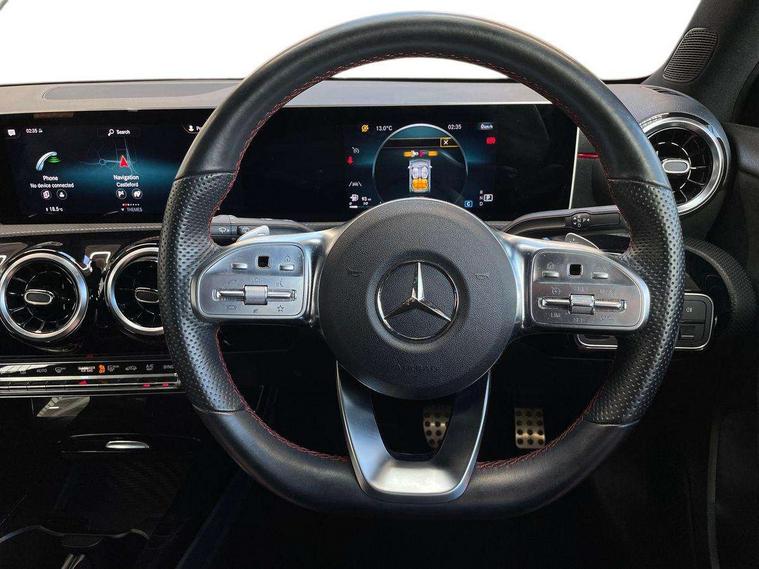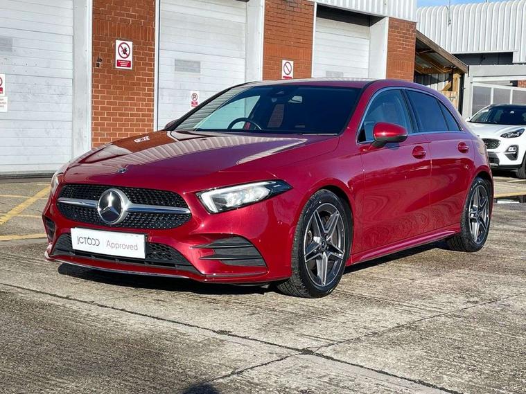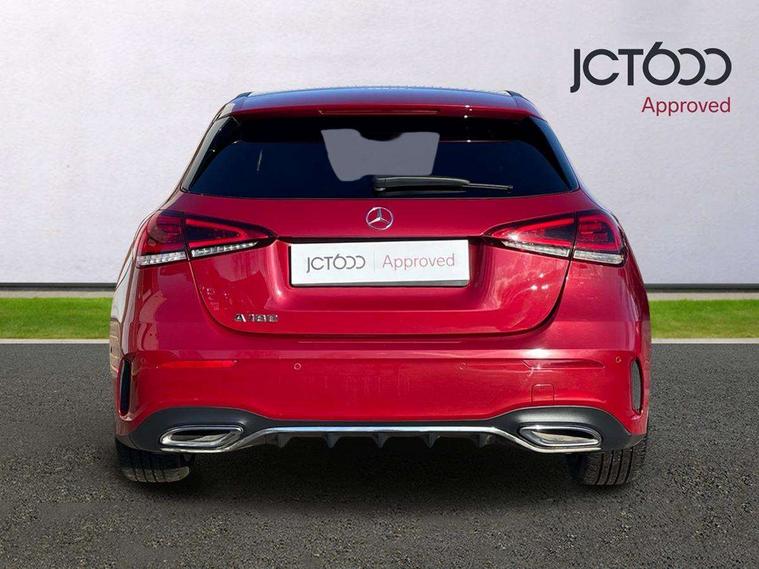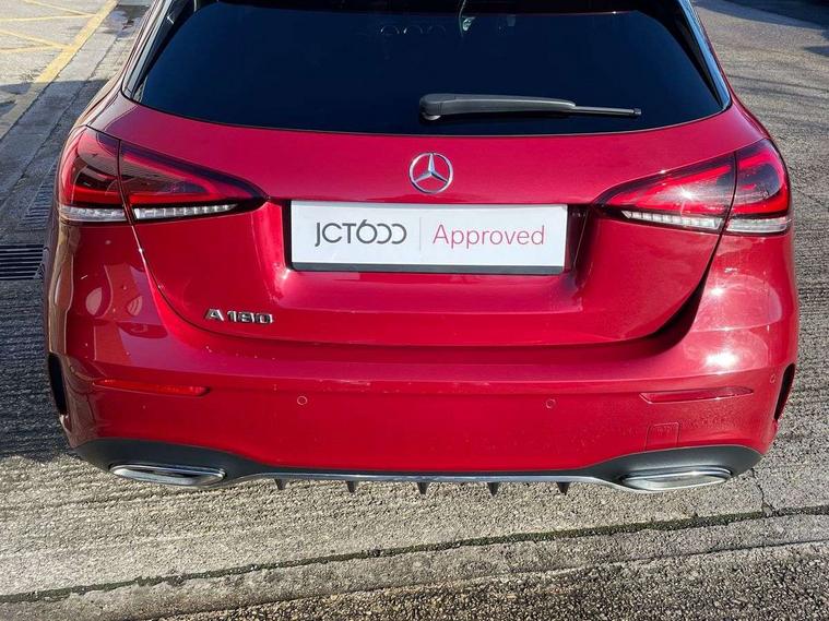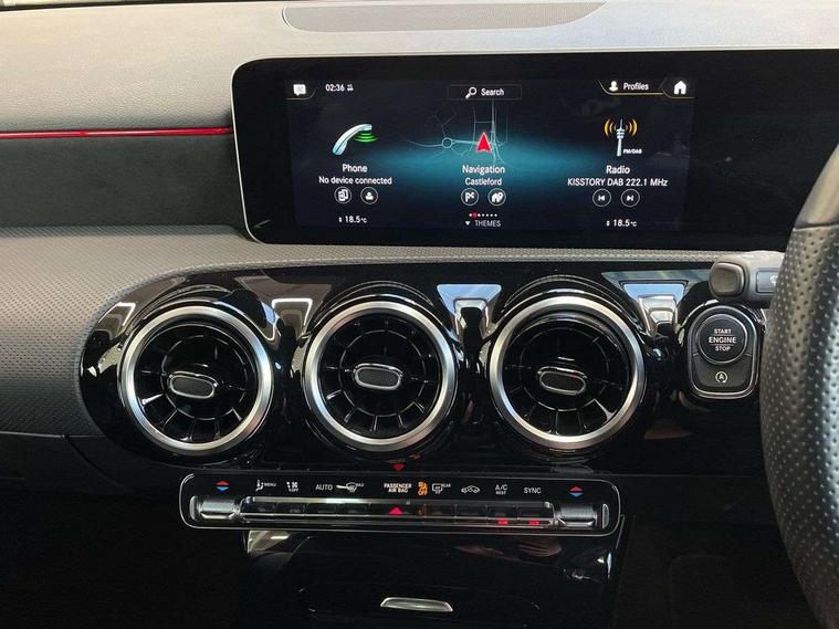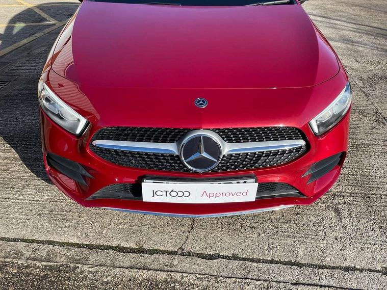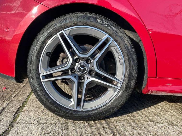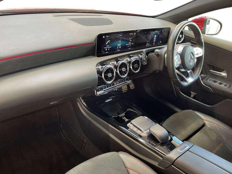 10.25" media display, 180 degree rear view camera with parking guidelines, 7" colour screen in instrument panel, Active lane keep assist, Active park assist with parktronic system including front and rear parking sensors, Attention assist, Brake pad wear indicator warning light, Car wash mode, Cruise control + speed limiter, Direct steering, Dual bluetooth interfaces, DYNAMIC SELECT with a choice of driving modes (ECO, Comfort, Sport and Individual), ECO start/stop function, Fluid level warning indicator for fuel, oil, coolant and washer fluid, Hard-disk navigation, Hey Mercedes Voice activation, Lamp failure indicator, Mercedes me connect including emergency call system, accident recovery, breakdown and maintenance management, Outside temperature gauge, Owners manual in English, Pre-installation for private car sharing, Pre-installation for Vehicle Monitoring, Pre-installation for Vehicle Setup, Preinstallation for Mercedes Benz link, Service indicator (ASSYST), Smartphone integration with Apple CarPlay and Android auto, Speed sensitive power steering, Trip computer, Wireless charging, Lowered comfort suspension, Rear axle torsion beam, 2 USB ports (type C) in rear stowage compartment and one in front of center console, 6 speakers, DAB Digital radio, MBUX multimedia system with DAB digital radio and touchpad including satellite navigation, Mercedes-Benz sound system - 100W, 4 Electric Front and Rear windows, Adaptive brake lights, AMG bodystyling - Front apron with splitter in chrome, rear apron with chrome trim and chrome visible trim elements in tailpipe, Black weather strip, Body colour bumpers, Body colour door handles, Body colour side skirt, Body coloured door mirrors, Chrome beltline trim, Diamond radiator grille with chrome pins and silver louvre + chrome insert, Electric adjustable and heated door mirrors with integrated LED side indicators, Exhaust system - Twin visible tailpipes in polished stainless steel, Headlamp assist automatic headlamp activation, Heated glass rear windscreen + timer control, LED high performance headlamps with integrated LED daytime running lights, LED tail lamp, LED third brake light, Privacy glass, Radio aerial, Rain sensing windscreen wipers with two sensitivity settings, Rear fog lights, Rear wiper, Window line trim strip in chrome, 3 Spoke flat bottom leather multi function steering wheel with perforated leather in grip area, 40:20:40 split folding rear seats, Artico man-made leather/Microfibre Dinamica upholstery with red contrast stitching, Auto Mercedes-Benz child seat recognition sensor, Black air vents with surround in silver chrome, Black roof lining, Brushed stainless steel sports pedals with rubber studs, Controller on centre console with chrome surround, Floor mats with stitched edging and AMG lettering, Front centre armrest with storage compartment, Front door sills with Mercedes Benz lettering, Front seat backs luggage nets, Front seat cushion length adjustment, Galvanished gear shift paddles on steering wheel, Heated front seats, Height/reach adjustable steering column, Interior mirror with reading lamps in black and frameless, Manual height adjustable front seats, Rear head restraints, Seat occupancy sensor for front passenger seat, Sports seats with integrated headrests, Stowage compartment in centre console with retractable cover, Sunvisors with illuminated vanity mirrors, Touchpad on center console, Twin front cupholders, Two zone thermotronic luxury automatic climate control, Light and sight pack - A Class, Mirror package - A Class, Seat comfort pack - A Class, 3 rear 3 point seatbelts, ABS with Brake Assist, Active bonnet, Active brake assist includes forward collision warning system with autonomous braking, Adaptive brake assist with hold function and hill start assist, Black seatbelts, Childproof locks manually operated for rear doors and electrically operated for rear power windows, Crash responsive emergency lighting, Driver and passenger head and side airbags, Drivers knee airbag, Dual stage driver/passenger airbags, Electronic parking brake, ESP curve dynamic assist, ESP with ASR, Front and rear seatbelt reminder, Front brake callipers with Mercedes Benz lettering, ISOFIX and top tether child seat fixing points in two outer rear seats, Tyre pressure monitoring system, Warning triangle and first aid kit, Window airbags, Alarm system/interior protection/immobiliser, Keyless Go, Remote central locking and crash sensor with emergency opening function, Urban guard vehicle protection system with immobiliser and interior protection, Dinamica microfibre trim in black, 18" AMG 5 twin spoke light alloy wheels in titanium grey with highsheen finish, Summer tyres, Tirefit sealant kit,
