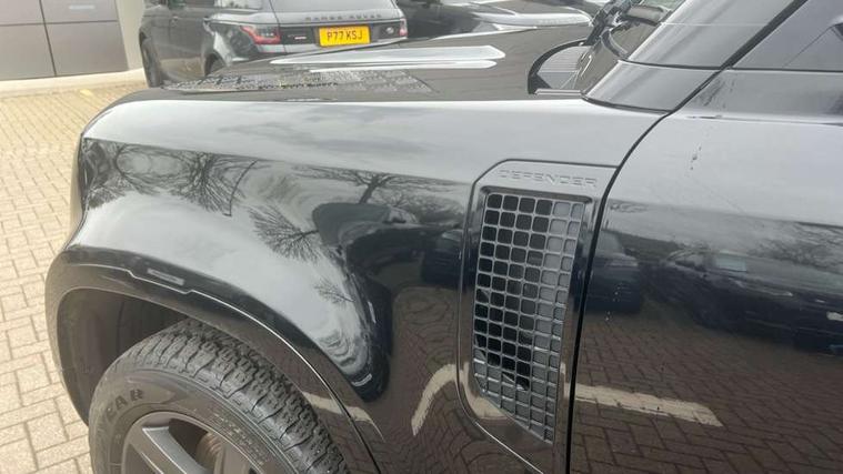 360 degree parking aid, 3D Surround Camera with 360 View, 180 Rear View, Front Traffic Detection, Forward Vehicle Guidance, Tow Hitch Assist and clear sight Ground View, Android Auto, Apple CarPlay, Assisted tailgate with soft close, Blind spot assist, Bluetooth system, Brake pad wear indicator, Clear exit monitor, Click and go integrated base unit, Connected navigation pro, Driver condition monitor, Electric power assisted steering (EPAS), Interactive driver display, Lane keep assist, Push button start, Rear traffic monitor, Traffic sign recognition with adaptive speed limiter, Trip computer, Wade Sensing, Adaptive dynamics, DAB Radio (Digital Audio Broadcasting), Meridian 400w sound audio system with 11 speakers and subwoofer, Pivi pro connected, Automatic headlight levelling, Automatic headlights, Black exposed rear recovery eyes, Centre high mounted stop light, Electric heated/power fold door mirrors with approach lights and auto dimming driver side, Electric windows with one touch open/close and anti-trap, Follow me home lighting, Front fog lights, Heated rear window with timer, Heated windscreen, Illuminated metal treadplates with brand name script, LED tail lights, Matrix LED headlights with signature DRL, Privacy glass, Puddle lights, Rain sensing windscreen wipers, Rear fog lights, Trailer stability assist, X-Dynamic badge, 12V power socket in loadspace, Cabin lighting, Carpet mats, Durable rubber cabin flooring, Durable rubber loadspace flooring, Electric reach + rake adjustable steering column, Footwell lights, Front passenger isofix child seat attachment, Loadspace cover, Loadspace Hook, Multifunction steering wheel, Overhead stowage for sunglasses, Rear headrests, Rear ISOFIX, Rear reading lights, Storage glovebox, Sunvisors with illuminated vanity mirrors, Online pack with data plan - Defender, X-Dynamic exterior pack - Defender, 5 x 3 point seatbelts, ABS, Brake hold function, Cornering brake control (CBC), Customer configurable autolock, Driver and passenger airbags, DSC - Dynamic Stability Control, EBD - Electronic brakeforce distribution, Electric parking brake (EPB), Emergency braking, ESP + traction control, Front airbags with passenger seat occupant detector, HDC - Hill descent control, Hill launch assist, Low traction launch, Power operated child locks, Remote for (e-Call, Optimised assistance call, InControl app, Climate, beep and flash and door), RSC - Roll stability control, Seat belt reminder, TPMS (Tyre pressure monitoring system), Alarm, Immobiliser, Intrusion sensor, Keyless entry and go, Locking wheel nuts,
