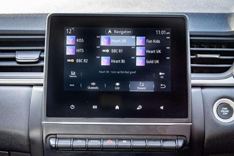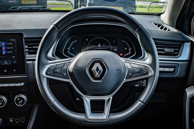 7" TFT Driver information display, Cruise control + speed limiter, EasyLink 7" touchscreen with navigation, google search and traffic information, Eco mode, EV button to activate pure mode, Gear change indicator, Lane departure warning system, Lane keep assist, Rear parking sensor, Renault automatic emergency assist, Smartphone integration compatible with Apple CarPlay and Android Auto, Traffic sign recognition with over speed prevention, Trip computer, Variable assistance power steering, DAB Radio with Bluetooth and USB, 2 reverse gear LED lamps and 1 rear LED fog lamp in the bumper, Automatic front wipers with rain sensors, Automatic headlights, Black side door protection, Body colour door handles, Body coloured bumpers, Body coloured door mirrors, Day time running light, Drivers one touch window with anti-pinch feature, Extra tinted glass in rear windows and tailgate, Front and rear electric windows, Full LED headlights with LED rear lights, Grey front and rear skid plate, LED front fog lights, LED high level brake lights, LED rear fog lights, LED turn indicators on door mirrors, Rear side wing doors, Rear wiper, 12V Accessory socket, 3 rear headrests, 60/40 split and fixed base rear seat bench, Automatic climate control with one touch demist function and air quality regulator, Cloth upholstery, Front head restraints, Glovebox, Heating system with pollen filter, Height adjustable driver's seat, Height/reach adjust steering wheel, ISOFIX child seat fixing points on rear outermost seats, Middle console with armrest and storage, Modular boot floor, Rear air vents, Single front passenger seat, Sliding rear bench, Standard bulb in front roof lights, Synthetic leather steering wheel, 3 rear seatbelts, ABS+EBA, Active emergency braking system, B Brake Mode - One pedal driving with increased regenerative braking, Distance warning alert, Driver and front passenger and 3 rear passengers seatbelt reminder, Driver and front passenger, side, head and curtain airbags, Driver height adjustable seat belt, Electric parking brake, Electronic stability control, Front dash warning indicator in case of heavy braking, Front driver and passenger side airbag deactivation, Hill start assist, Rear door and window child locking function for rear door, Tyre pressure warning light, Anti drill door locks and locking fuel cap, Central door locking, Deadlocking system, Hands free keycard with push button and start/stop function, RAID (Renault Anti-Intruder Device) automatic door locking, Black soft touch dashboard, 17" Ediris diamond cut alloy wheels,