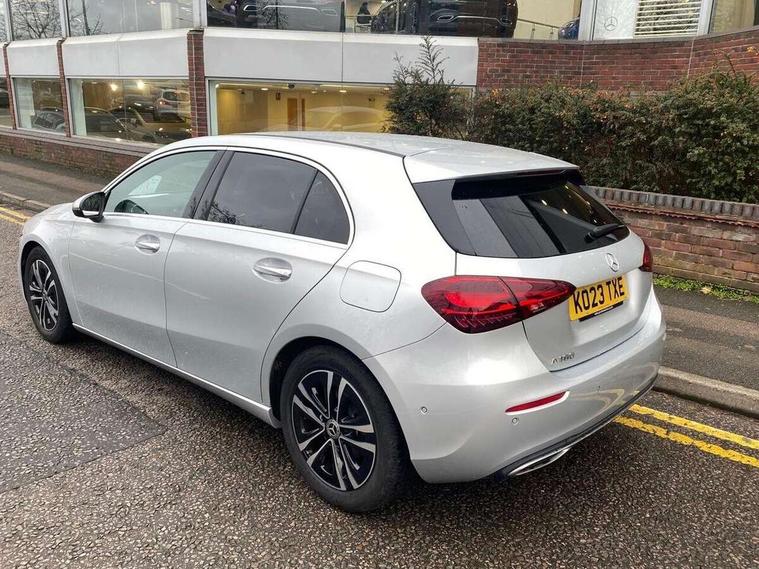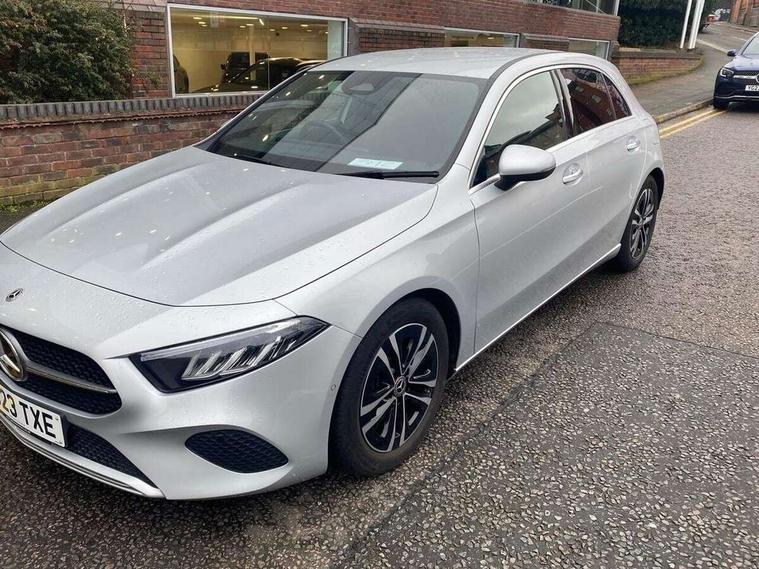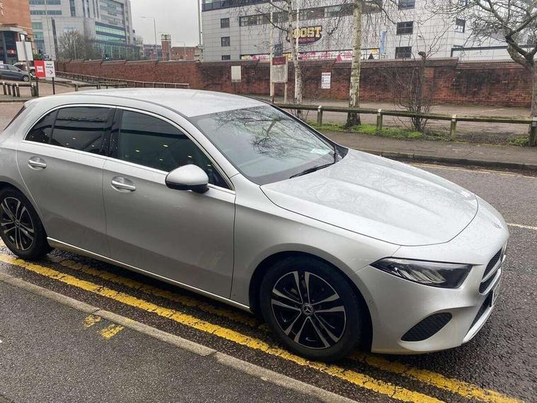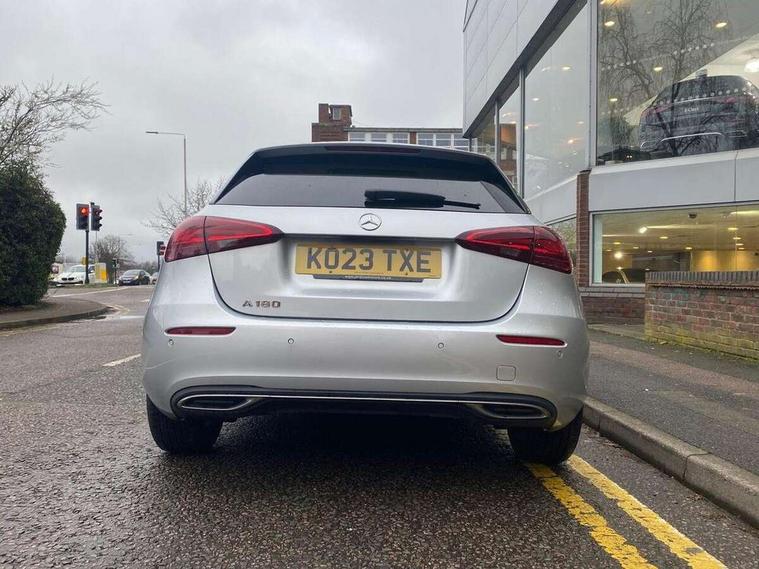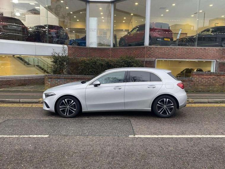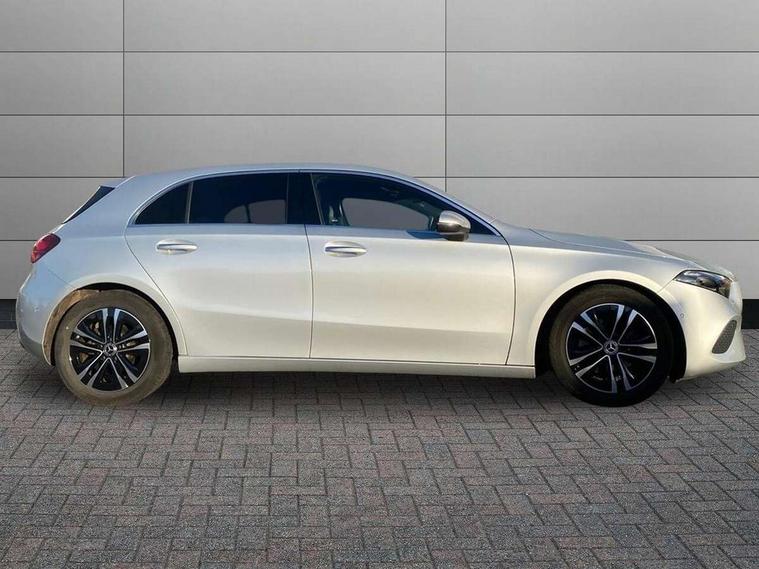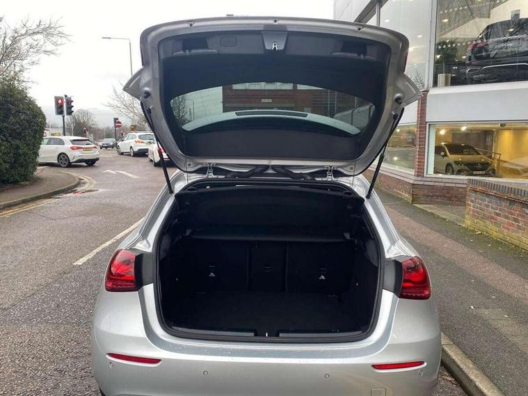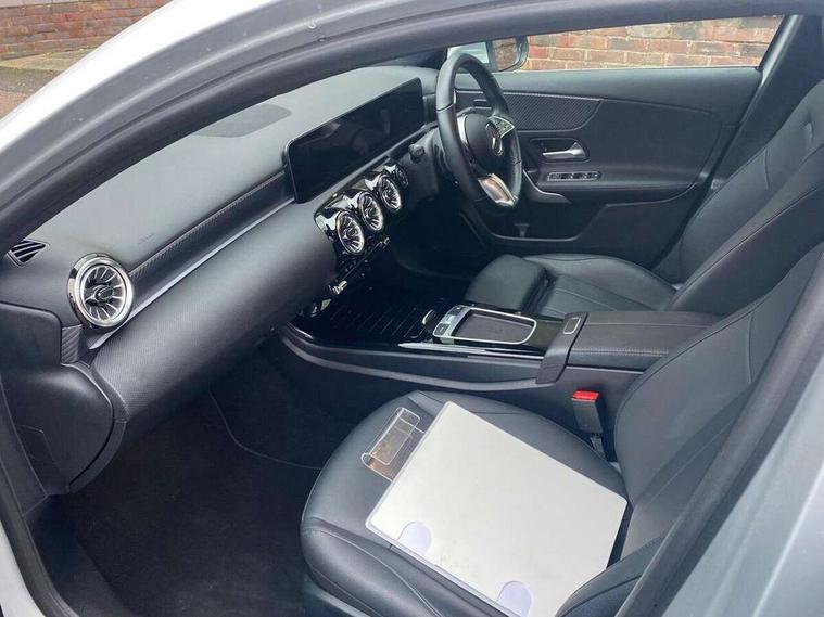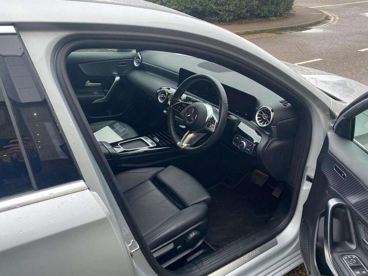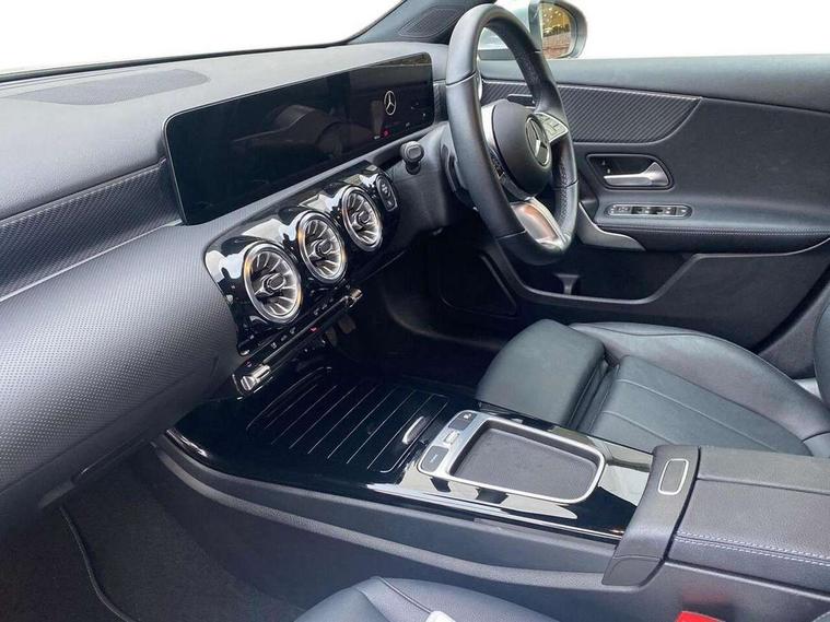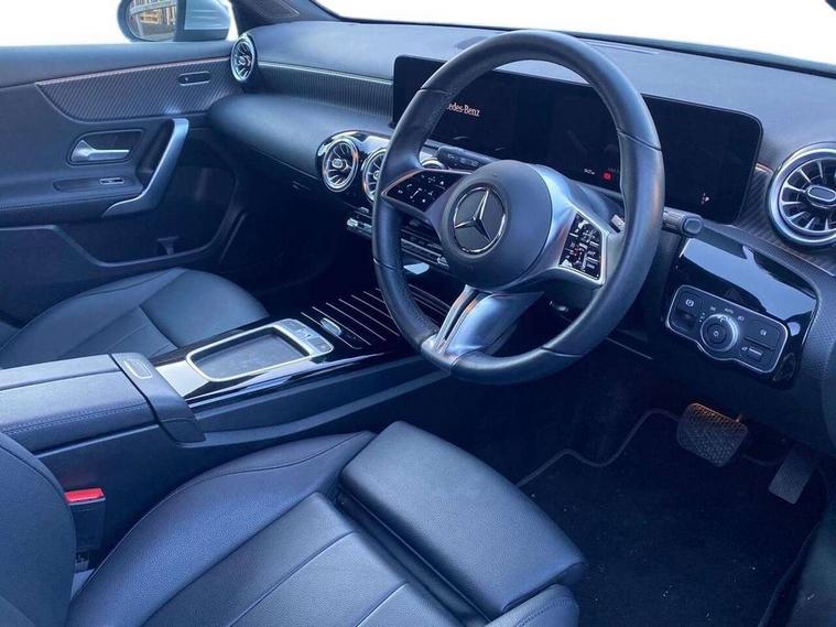 10.25 inch touchscreen central media display, 10.25" Digital instrument cluster display screen, Attention assist, Brake pad wear indicator warning light, Car wash mode, Cruise control + speed limiter, Direct steering, Direction indicators with lane change function, Dual bluetooth interfaces, DYNAMIC SELECT with a choice of driving modes (ECO, Comfort, Sport and Individual), Easy pack tailgate hands-free access, ECO start/stop function, Engine start/stop button, Fluid level warning indicator for fuel, oil, coolant and washer fluid, Hard-disk navigation, Hey Mercedes Voice activation, Lamp failure indicator, Lane keeping system, Mercedes me connect including emergency call system, accident recovery, breakdown management and maintenance, Mercedes me remote services, Outside temperature gauge, Owners manual in English, Pre-installation of private car share, Preinstallation for Mercedes Benz link, Remote boot closing, Service indicator (ASSYST), Smartphone integration with Apple CarPlay and Android auto, Speed limit assist, Speed sensitive power steering, Trip computer in multifunction display with current consumption indicator, Wireless charging, Lowered comfort suspension, DAB Digital radio, MBUX multimedia system, Mercedes Benz sound system (100 W) with 6 speakers, 4 Electric Front and Rear windows, Adaptive brake lights, Body colour bumpers, Body colour door handles with chrome inserts, Body colour side skirt, Body coloured door mirrors, Chrome beltline strips, Diamond radiator grille with pins in fine star pattern, Electric adjustable and heated door mirrors with integrated LED side indicators, Exhaust system with 2 visible tailpipe trim elements and rear apron, Headlamp assist automatic headlamp activation, Heat insulating dark tinted rear and rear side windows, Heated glass rear windscreen + timer control, LED High level third brake light, LED High Performance headlamps including integral LED daytime running lamps and adaptive highbeam assist, LED tail lamp, Privacy glass, Radio aerial, Rain sensing windscreen wipers with two sensitivity settings, Rear fog lights, Rear side wing doors, Rear windscreen wiper, Window line trim strip in chrome, 3 seat bench in 2nd row, 3 Spoke leather multi function steering wheel, 4 way lumbar support, 40:20:40 split folding rear seats, Air conditioning - One zone thermatic automatic climate control with automatically controlled air distribution, Artico man-made leather upholstery, Automatic child seat recognition sensor, Black air vents with surround in silver chrome, Black roof lining, Front centre armrest with stowage, Front comfort seats with adjustable head restraints, Front door sills with Mercedes Benz lettering, Front seat backs luggage nets, Gearshift paddles on steering wheel, Heated front seats, Height/reach adjustable steering column, Interior lighting - 64 colour Ambient lighting, Interior mirror with reading lamps in black and frameless, ISOFIX and top tether child seat fixing points in two outer rear seats, Rear armrest with 2 cupholders, Rear head restraints, Seat occupancy sensor for front passenger seat, Single front passenger seat, Stowage compartment in centre console with retractable cover, Sunvisors with illuminated vanity mirrors, Twin front cupholders, Velour floor mats, Light and sight pack - A Class, Mirror package - A Class, Parking pack - A Class, Seat comfort pack - A Class, USB pack plus - A Class, 3 rear 3 point seatbelts, ABS with Brake Assist, Active bonnet, Active brake assist includes forward collision warning system with autonomous braking, Adaptive brake assist with hold function and hill start assist, Black seatbelts, Bonnet with power domes, Childproof locks manually operated for rear doors and electrically operated for rear power windows, Crash responsive emergency lighting, Driver and passenger head and side airbags, Drivers knee airbag, Dual stage driver/passenger airbags, Electronic parking brake, ESP curve dynamic assist, ESP with ASR, Front and rear seatbelt reminder, Tyre pressure monitoring system, Warning triangle and first aid kit, Window airbags, Alarm system/interior protection/immobiliser, Guard 360 degree vehicle protection, Keyless entry lock/unlock, Keyless Go, Remote central locking and crash sensor with emergency opening function, Dark carbon fibre interior trim, 17" 5 spoke light alloy wheels, aerodynamically optimised, painted in black with high sheen finish, Summer tyres, Tirefit sealant kit,