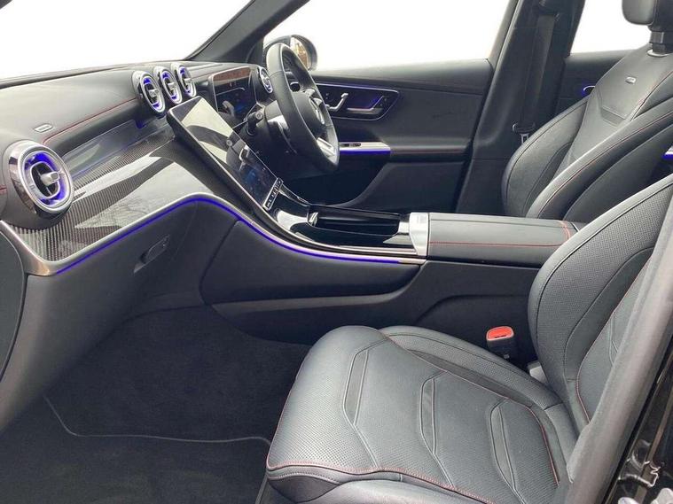 11.9" high resolution multimedia colour display, 12.3" Digital individually configurable instrument display, Acoustic presence indicator, Active lane keeping assist, AMG DYNAMIC SELECT with a choice of driving modes (Slippery, Comfort, Sport, Sport+, Individual), Attention assist, Bluetooth interface for hands free telephone, Collision prevention assist plus, Dashcam - front camera for video recording, eCall emergency call system, Fingerprint scanner, Fluorescent jacket for driver, Head up Display, Instrument display in miles with English lettering, MBUX augmented reality for navigation, MBUX navigation premium, MBUX voice control activated by keywords "Hey Mercedes", Mercedes connect me with remote online services, Multi function trip computer, Outside temperature display, Pre-installation for digital key transfer, Rear axle steering, Remote boot release, Remote services plus, Service indicator (ASSYST), Smartphone integration, Sports direct steer system with speed sensitive steering, Status display for rear seat belts in instrument cluster, Tailgate, Traffic sign assist, Wireless charging system for mobile devices in the front, 4MATIC permanent four wheel drive, 62 litre fuel tank, 9G TRONIC plus automatic transmission, AMG Ride Control suspension, Petrol Particulate Filter (PPF), Burmester 3D surround sound system, DAB digital radio tuner, MBUX extended functions, Sound personalisation, Adaptive brake lights, Adaptive high beam assist plus, Aluminium look running boards with rubber studs, AMG bodystyling front apron, rear apron and side skirts, AMG exhaust system with sporty engine sound, AMG fuel cap, AMG radiator grille with vertical struts in high gloss chrome and AMG logo, AMG Real Performance Sound, AMG spoiler lip, Auto dimming rear view mirror, Auto headlights, Digital light LED headlights, Electric panoramic glass sunroof, Electric windows with one touch opening/closing and obstruction sensors, Electrically adjustable and heated door mirrors, Headlight washers, Heat and noise insulating acoustic glass, Heat insulating dark tinted glass, Heated rear window, High level LED brake light, Integrated LED daytime running lights, LED indicator lights, LED rear fog lights, LED tail lamp, Mercedes AMG exterior, Rain sensor windscreen wipers, Range adjustable headlights, Rear side wing doors, Rear wiper, Transparent Bonnet, Variable front intermittent wipers, Welcome and follow-me home light functionality, Wheel arch liners in the vehicle colour, 3 seat bench in 2nd row, 40:20:40 split folding rear seats, Air balance package, Ambient lighting premium, AMG floor mats, AMG performance steering wheel in nappa leather with AMG steering wheel button, AMG sports seats, Artico leather dashboard with contrast stitching, Audio and onboard settings control on multifunction steering wheel, Automatic child seat recognition sensor, Double cup holder in centre console, Electrically height/reach adjustable steering column, Front centre armrest with stowage compartment, Front head restraints, Gearshift paddles on steering wheel, Heated steering wheel, Illuminated door sill panels with Mercedes Benz lettering, Illuminated glove compartment, Load compartment cover, Mercedes AMG interior, Partition net, Rear head restraints, Rear top tether child seat ISOFIX attachment, Single front passenger seat, Sports pedals with stainless steel surfaces and rubber studs, Sun visors with illuminated vanity mirrors, THERMATIC 2 zone automatic climate control, AMG Exterior Night pack - GLC AMG 63 Se, AMG Exterior Night pack - GLC Coupe AMG 63 Se, Boot comfort package - GLC, Energizing plus pack - GLC Coupe, Interior lighting pack - GLC AMG, Keyless-Go comfort package - GLC, Memory pack - GLC, Mirror pack - GLC AMG, Parking package with 360 degree camera - GLC, Stowage pack - GLC AMG, USB Plus Pack - GLC, 3 rear 3 point seatbelts, Active bonnet, Anti-lock braking system (ABS), Automatic front passenger airbag deactivation, Child proof door locks, Dual-stage airbags - driver and front passenger, driver knee bag and window bags for driver, front passenger and rear passengers, Electronic key chrome surround, Electronic parking brake, Electronic stability programme (ESP) with curve dynamic assist and cross wind assist, Front and rear seatbelt reminder, Front passenger seat occupancy sensor, Front seatbelt pretensioners, Hill start assist, Silver brake calipers, Tyre pressure monitoring system, Warning triangle and first aid kit, Anti theft alarm system with preinstallation for collision detection, Central locking with interior switch, automatic locking and crash sensor with emergency opening function, Guard 360 degree vehicle protection plus, Immobiliser, Increased anti-theft protection, AMG Carbon fibre with centre console in high gloss black, 21" AMG Y spoke light alloy wheels painted in matt black with high sheen rim flange, TIREFIT with tyre inflation compressor,