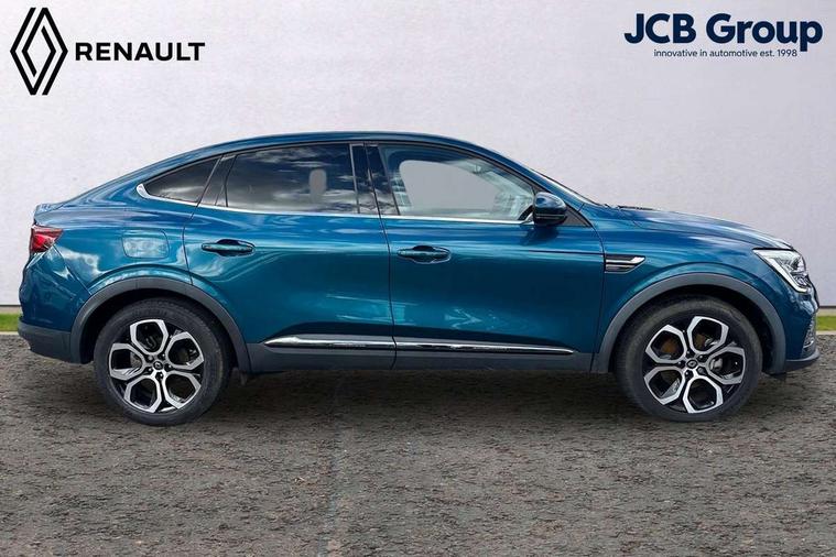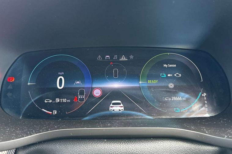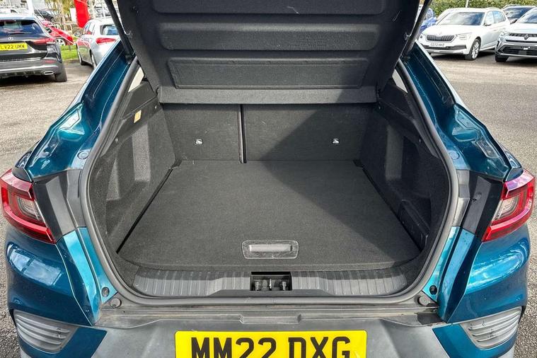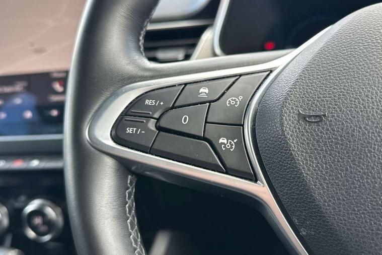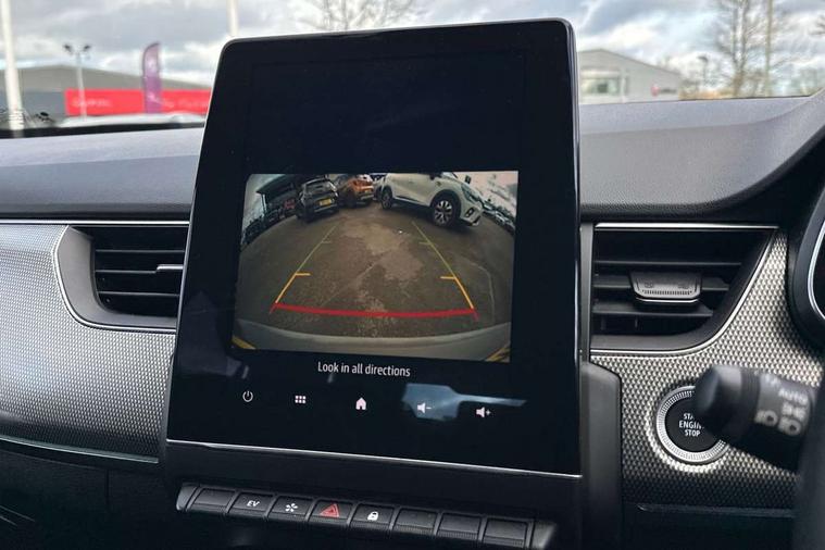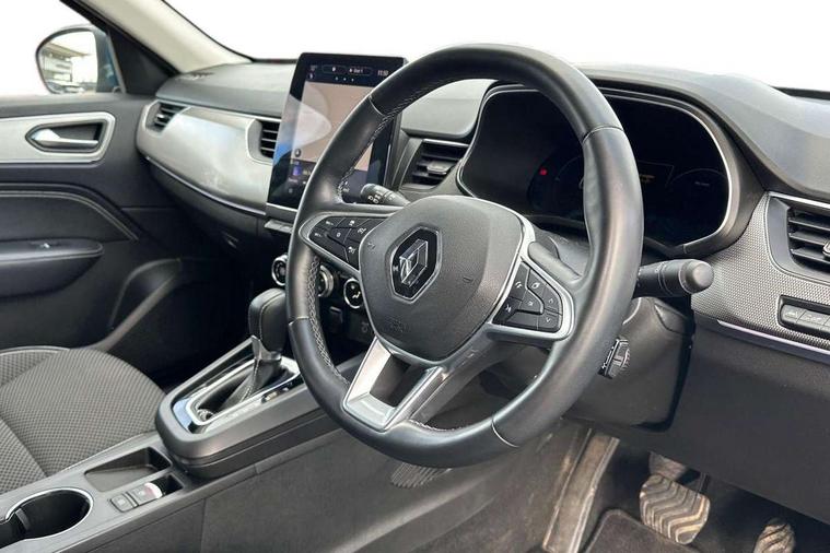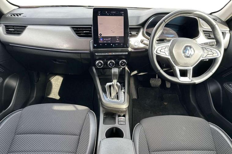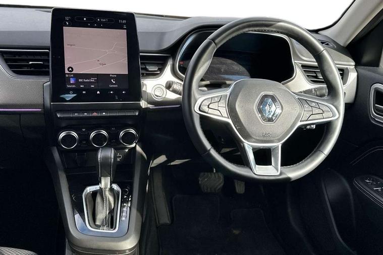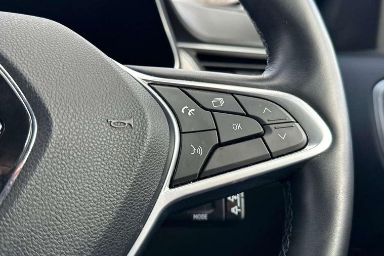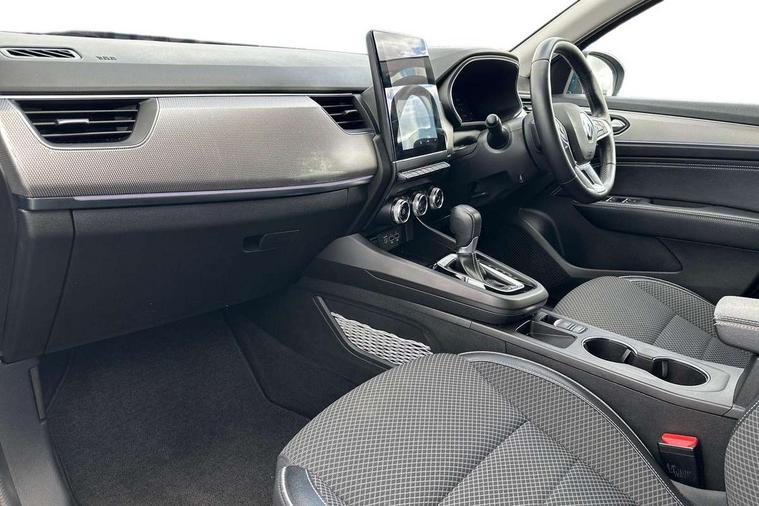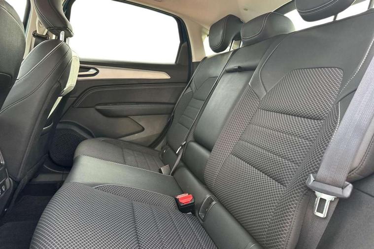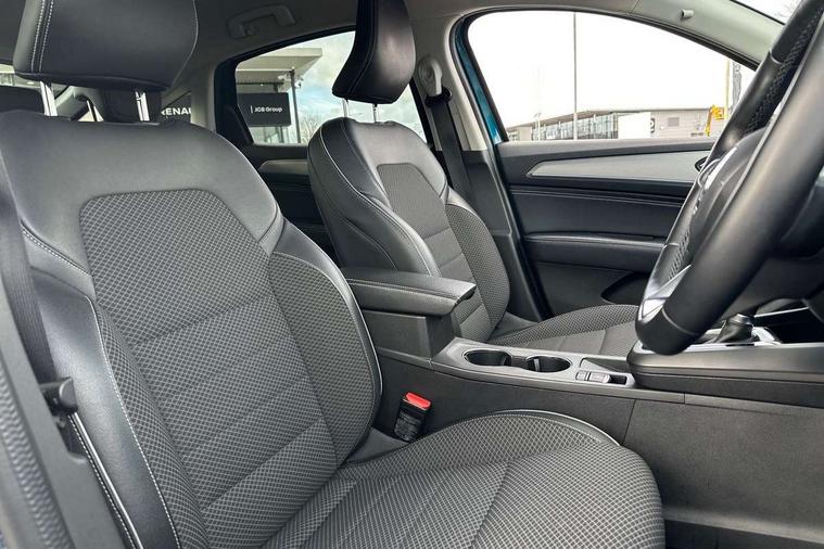 7" TFT Driver information display, Blind spot warning, Bluetooth system, EASY LINK 9.3" portrait touchscreen with navigation, Google search and traffic information, eCall emergency call system, Eco mode, EV button to activate pure mode, Front and rear parking sensors, Gear change indicator, Lane departure warning, Lane keep assist, Multi-sense - 3 driving modes and 8 ambient lighting, Rear cross traffic alert, Rear view camera, Renault automatic emergency assist, Smartphone integration compatible with Apple CarPlay and Android Auto, Traffic sign recognition with over speed prevention, Trip computer, Variable assistance electric power steering, Arkamys classic sound system with 6 speakers, DAB radio, USB port, 3rd brake light, Auto dimming rear view mirror, Automatic headlights, Automatic high / low beam, Automatic windscreen wipers with rain sensor, Black side door protection with chrome insert, Body coloured bumpers, C-shaped LED front signature lighting, Chrome decopart on wing (fender molding), Chrome window lower lining, Extra tinted rear windows and tailgate, Front and rear electric windows, Front driver window with one touch facility and anti-pinch function, Front grille with chrome on upper part, Full LED headlights, Grey front and rear skid plates, Heated rear window, Rain sensor, Rear windscreen wiper, Shiny black shark fin antenna, Side mirrors adjustable electrically, electrically foldable, with defrosting and temperature sensor, automatically foldable at vehicle closure, 3 seat bench in 2nd row, 60:40 split and fixed base rear seats, Automatic climate control with combined filter, humidity sensor and AQS, Central console with storage, Front and rear head restraints, Height and reach adjustable steering wheel, ISOFIX child seat fixing points on rear outermost seats, Leather steering wheel, LED front and rear roof lights, Rear air vents, Single front passenger seat, 3x3 point rear seat belts, ABS+EBA, Active emergency braking system, B Brake Mode - One pedal driving with increased regenerative braking, Distance warning alert, Driver airbag, Driver and passenger front and side airbag deactivation, Driver and passenger side airbags, Driver height adjustable seat belt, Electronic parking brake with auto hold, ESC (Electronic Stability Control), Front and rear no seatbelt warning sound, Front curtain airbags, Front head airbags, Hill start assist, Passenger airbag, Tyre pressure warning light, Anti drill door locks and locking fuel cap, Central door locking, Deadlocking system, Hands free keycard with Keyless access and start, RAID (Renault Anti-Intruder Device) automatic door locking, Rear side wing door and window child locking function (front driver door control panel), Superlocking, Thatcham alarm, 18" Pasadena diamond cut alloy wheels with grey inserts,