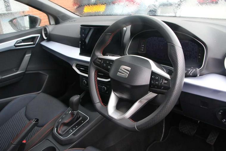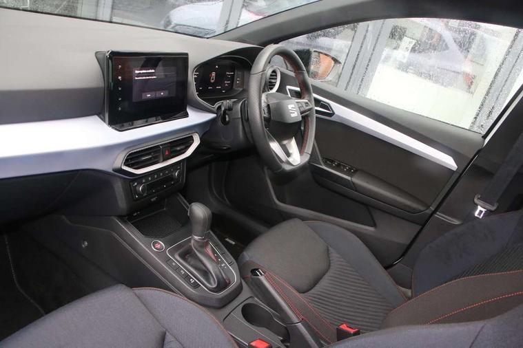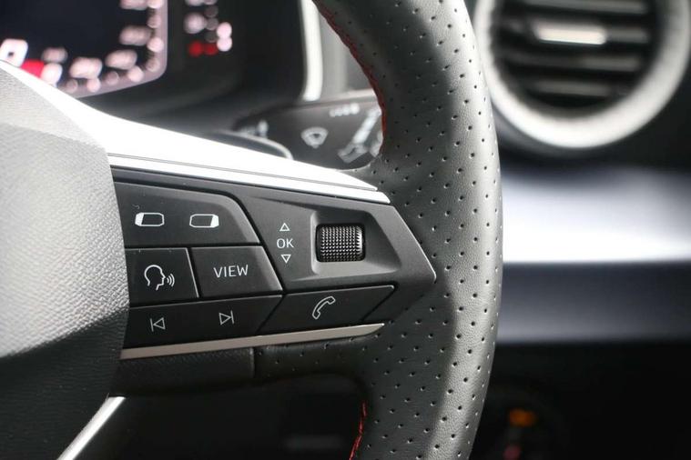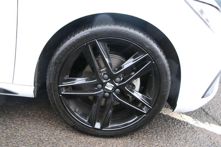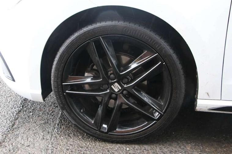 'Lights On' Reminder warning buzzer, 10" Digital cockpit, 9.2" touchscreen navigation system with type C USB socket, Voice control and DAB/AM/FM radio, Auto start and stop system, Bluetooth audio streaming with handsfree system, Digital clock, E-call, Full link smartphone integration with mirror link, wireless apple carplay, Google android auto + USB Type C cable for apple and android devices, Lane assist, Low fuel warning light, Outside temperature gauge, Power Steering, Rear parking sensor, Seat connect plus with safety, service, remote and online, SEAT drive profiles and ECO function, SEAT logo boot release, Speed limiter, Traffic sign recognition, Trip computer, Sports suspension, Auxiliary input socket, Radio/MP3 player, SD card slot, Steering wheel mounted controls, Anti theft roof antenna, Auto dimming rear view mirror, Automatic rain sensing wipers, Black door mirror caps, Black roof spoiler, Black side skirts, Body colour bumpers, Body colour door handles, Brilliant black window surrounds, Dark tinted rear windows, Electric adjustable/heated/folding door mirrors, Electric front windows, Electric headlight adjustment, Electric panoramic sunroof, Electric rear windows, Front/rear fog lights, FULL LED automatic headlights with dynamic headlight range control, coming and leaving home, LED daytime running lights, LED 3rd brake light, LED tail lights, Rear roof spoiler with FR twin exhausts, Rear side wing doors, Rear wiper, 3 seat bench in 2nd row, 60/40 split folding rear seat, Ambient interior lighting, Chrome detailing and black headlining, Dual zone climate control with combination filter, Front courtesy lights, Front cupholders x 2, Front reading lights, Front sport bucket seats, Gear shift indicator, Glovebox, Heated front seats, Height adjustable front and rear headrests (five), Height adjustable front seats, Height/reach adjust steering wheel, Illuminated air vent surrounds, Illuminated boot, Instrument lighting with brightness control, Isofix, Leather multifunction flat bottomed sports steering wheel with gearshift paddles, Microsuede cloth upholstery, Passenger sunvisor, Single front passenger seat, Storage pockets on back of front seats, Sunvisors with mirror and driver side card holder, Safety and driving pack (S) - Ibiza, ABS, Active front headrests, Child locks on rear doors, Electronic stability control, Energy recovery system, Front driver and passenger side airbags with curtain airbag and front passenger airbag deactivation, Hill hold control, Multi-Collision braking, Seat belt reminder for front and rear seats, Tiredness recognition system, Tyre pressure monitoring system, KESSY Keyless entry and go, Locking wheel bolts, Perimeter alarm and interior monitoring with backup horn and tow away protection, Remote central locking + deadlocks, 18" Performance alloy wheels in glossy black,