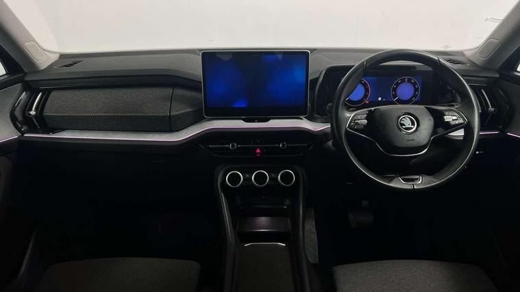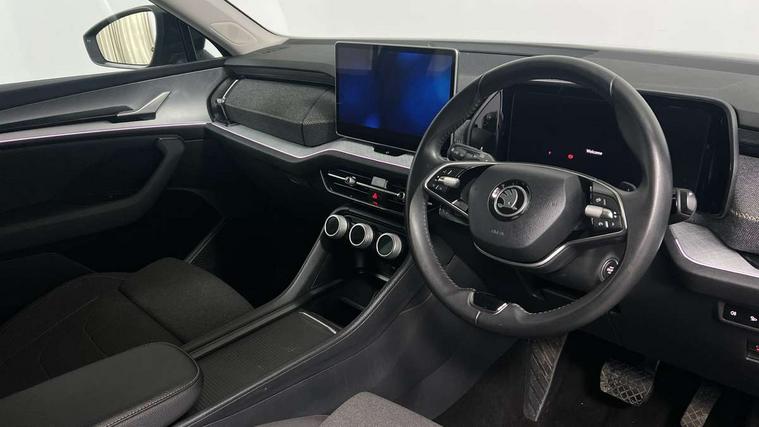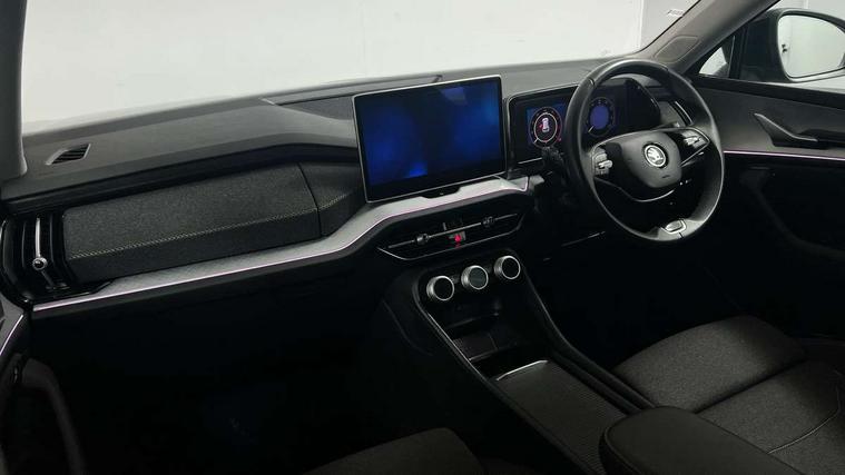 13" satellite navigation touchscreen display, Blind spot detection with door exit warning, Bluetooth system, ChatGPT functionality, Drive mode selector, Driver alert with fatigue sensor, Driver drowsiness alert system, Dry display cleaner, e call+, Front and rear parking sensors, Front cross traffic assist, Lane assist, PAS, Rear traffic assist, Rear view camera, Tailgate unlocking from outside, Traffic sign recognition, USB C Port x 2 in front centre console, Virtual Cockpit - 10.25" digital display, Voice control system, Wireless charging for two smartphones (15W) with cooling function, Wireless SmartLink for Apple CarPlay and Android Auto, Stop/start function, 2x USB-C in the rear, 8 Speakers, DAB Digital radio, Aero front windscreen wipers with intermittent function, All weather light, Auto dimming rear view mirror, Black wheel arch surrounds, Body colour bumpers, Body colour door mirrors and handles, Cornering light and poor weather light, Electric folding /adjustable/separted heated/folding door mirrors, auto dimming with boarding sports and memory function, Electric front and rear windows, Exterior black decorative trims, Heat insulating glass in windshield, Heated rear window, Ice scraper in fuel tank cap, Invisible tailpipe, LED daytime running lights, LED front fog lamps, LED Headlights, LED rear fog light, LED rear lights, LED third brake light in rear spoiler, Light assistant with automatic headlight control and coming home feature, Logo projection in door mirrors, Rear side wing doors, Rear spoiler, Rear window wiper, Safety reflectors on front and rear doors, Unique dark chrome design logo on alloy wheels, Window control switches with black trim, Windscreen wipers with rain sensor, Without engine designation, 1.5l bottle holder points in all door, 12V socket in boot, 1x centre rear reading light, 2 seat bench in 3rd row, 3 configurable smart dials with 32mm coloured display, 3 seat bench in 2nd row, 4 foldable roof handles with rear coat hooks, Ambient interior lighting - Dashboard, front-door stowage compartments, front and rear door panels and footwell lighting, Automatic gear selector on steering wheel, Chrome interior door handles, Driver/front passenger reading lights, Fabric headlining, Fixed bench 40:60:40 split folding backrests, Front and rear floor mats, Front centre armrest with jumbo box storage compartment, cup holder and 12V socket, Front courtesy lights, Height adjustable front headrests, Isofix child seat fittings in outer middle row rear seats and front passenger with top tether, Manual height adjustment for front passenger seats and thigh support extender, Manual lumbar support for front passenger seat, Manually adjustable steering column, Pollen filter, Rear centre armrest with cupholders, Rear seat boot backrest release, Retractable luggage compartment cover, Single front passenger seat, Skoda lettering on steering wheel, Sliding trunk cover, Small Bags on the inner sides of the front backrests, Storage pocket including mobile phone pockets on the backs of the front seats, Sunvisors with illuminated vanity mirrors, Three rear height adjustable headrests, Ticket holder on A Pillar, Tri zone climate control, Umbrella in door panel x1 made from sustainable materials, Upper and lower glovebox with card holder and coin compartment, USB C port by rear view mirror for charging only (15W), Variable boot floor, Auto door release and activation of warning lights in the event of an accident, Driver and front passenger airbag with knee airbag and front passenger airbag deactivation, Electric child locks, Electronic parking brake, ESC (incl. ABS+EMD+MSR+ASR+EDL+HBA+DSR+RBS+ESBS+MCB+TSA+XDS), Front assist with braking reaction to vehicles, pedestrians and cyclists, Front disc brakes, Fuel cut off safety device, Height adjustable front 3 point seatbelts + pretensioners, Hill hold control, Junction assist with automatic emergency braking, Rear disc brakes, Safety vest holder in door, Seat belt reminder for all seats, Three point rear seat belts, Two tone horn, Tyre pressure monitor, Alarm with interior monitoring and tilt sensor with safe function, Anti-theft wheel bolts, Immobiliser, Remote central locking with 2 keys, Breakdown kit,