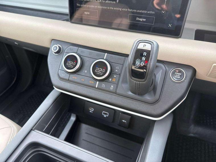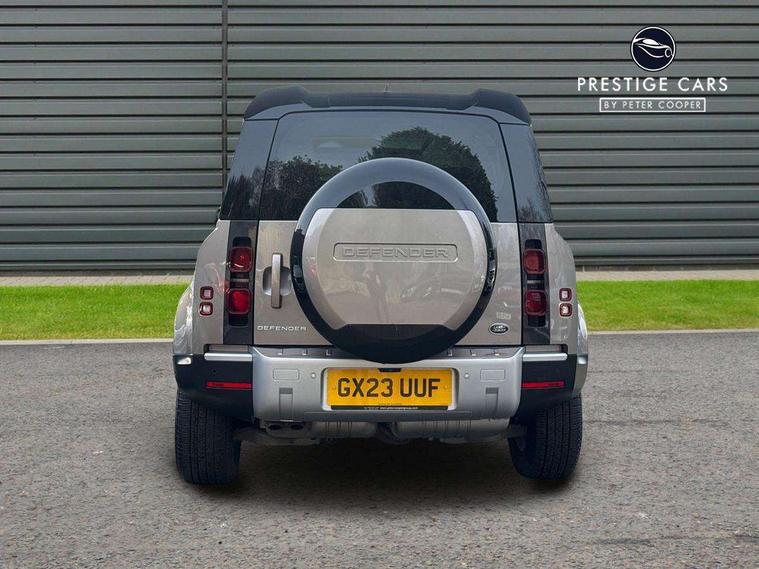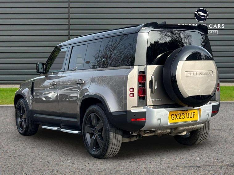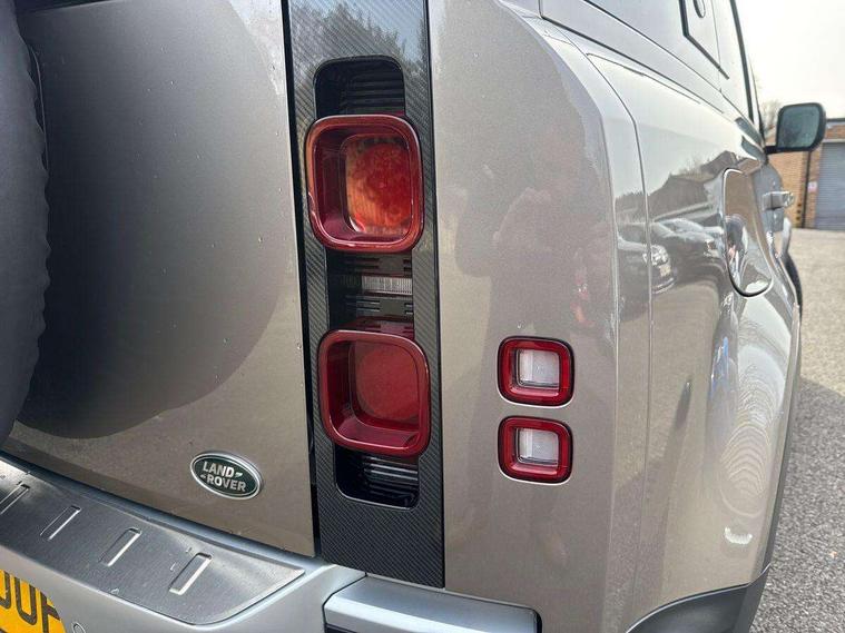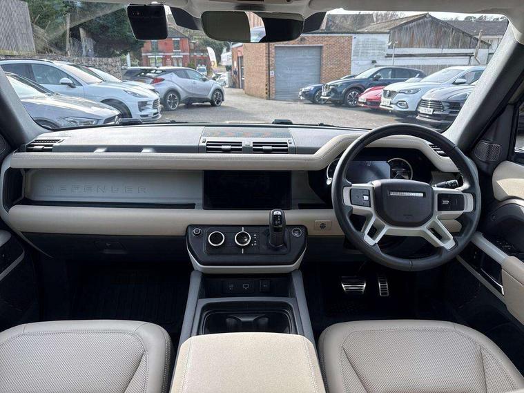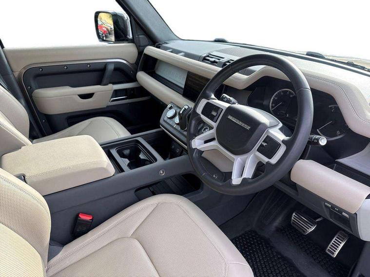 360 degree parking aid, 3D Surround Camera with 360 View, 180 Rear View, Front Traffic Detection, Forward Vehicle Guidance, Tow Hitch Assist and clear sight Ground View, Adaptive cruise control, Android Auto, Apple CarPlay, Assisted tailgate with soft close, Blind spot assist, Bluetooth system, Brake pad wear indicator, Clear exit monitor, Connected navigation pro, Driver condition monitor, Electric power assisted steering (EPAS), Interactive driver display, Lane keep assist, Push button start, Rear traffic monitor, Traffic sign recognition with adaptive speed limiter, Trip computer, Wade Sensing, 8 speed automatic transmission, All wheel drive system, Twin speed transfer box, DAB Radio (Digital Audio Broadcasting), Pivi pro connected, Automatic headlight levelling, Automatic headlights, Centre high mounted stop light, Electric heated/power fold door mirrors with approach lights and auto dimming driver side, Electric windows with one touch open/close and anti-trap, Follow me home lighting, Heated rear window with timer, Heated windscreen, LED tail lights, Puddle lights, Rain sensing windscreen wipers, Rear fog lights, Rear side wing doors, Rear wiper, Side hinged tailgate, Trailer stability assist, 12V power socket in loadspace, 3 seat bench in 2nd row, Alpine lights, Durable rubber cabin flooring, Durable rubber loadspace flooring, Footwell lights, Front passenger isofix child seat attachment, Loadspace cover, Loadspace Hook, Multifunction steering wheel, Overhead stowage for sunglasses, Premium cabin lighting, Rear headrests, Rear ISOFIX, Rear reading lights, Single front passenger seat, Standard seat configuration, Storage glovebox, Sunvisors with illuminated vanity mirrors, Online pack with data plan - Defender, 5 x 3 point seatbelts, ABS, Brake hold function, Cornering brake control (CBC), Customer configurable autolock, DSC - Dynamic Stability Control, EBD - Electronic brakeforce distribution, Electric parking brake (EPB), Emergency brake assist, Emergency braking, ESP + traction control, Front airbags with passenger seat occupant detector, HDC - Hill descent control, Hill launch assist, Low traction launch, Power operated child locks, Remote for (e-Call, Optimised assistance call, InControl app, Climate, beep and flash and door), RSC - Roll stability control, Seat belt reminder, TPMS (Tyre pressure monitoring system), Alarm, Immobiliser, Intrusion sensor, Keyless entry, Locking wheel nuts,