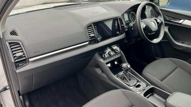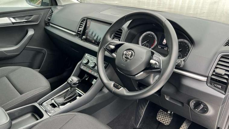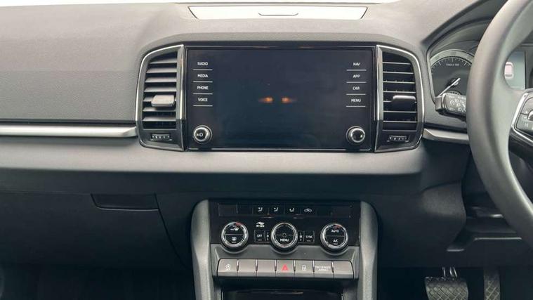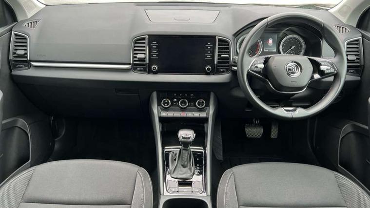 Amundsen satellite navigation with 8" touchscreen display with maps Europe, WLAN and web radio, Care connect, Driver fatigue sensor, Emergency services call system, Multifunction colour trip computer, Outside temperature gauge, Service interval indicator, SmartLink wireless for Apple and wired for Android, Start/stop system with regenerative braking, USB C Port x 2 in front centre console, 8 Speakers, DAB radio with Bluetooth, USB connection, Acoustic glass, Aero front windscreen wipers with intermittent function, Auto dimming rear view mirror with light and rain sensors, Automatic headlight control system, Black electric window control buttons, Body colour door mirrors and handles, Body coloured bumpers, Doors steps in front with Karoq badging, Electric front and rear windows with child proof lock, Electrically adjustable heated folding and auto dimming door mirrors, Front fog lights, Heated rear windscreen, LED daytime running lights, LED Headlights, LED rear lights with high functionality welcome effect and dynamic indicators, Light assistant (coming/leaving home/tunnel light), Privacy glass, Rear side wing doors, Rear wiper, Safety reflectors on front doors, 1.5 litre bottle holders in driver and front passenger door panels, 12V socket in boot, 12v socket in front centre armrest with storage compartment and rear air vents, 2 Folding hooks and nets in boot, 2 Front readings lights for driver and passenger, 2 x Tablet holder, 3 rear height adjustable headrests, 3 seat bench in 2nd row, 4 foldable roof handles with rear coat hooks, Black floor carpet, Chrome inner door handles, Double sided boot floor, Foldable hooks in the boot, Folding tables on the front seat backrests, Front head restraints, Height adjustable driver and passenger seat, Height adjustable front three point seats belts with tensioners, Height/reach adjust steering wheel, Ice scraper, Illuminated and cooled glovebox, Illuminated luggage compartment, Isofix child seat preparation for front passenger seat, Isofix child seat preparation outer rear, Manual lumbar support for front seats, Pearl grey interior ceiling, Pen holder, Pollen filter, Rear boot cover, Rear reading lights, Rubbish bin door, Safety vest holder, Single front passenger seat, Storage box in upper central dashboard closed, Sunvisors with illuminated vanity mirrors, Textile floor mats, Umbrella under passenger seat, Airbags - Front side, head, knee and curtain, Automatic door unlocking in case of crash, Automatic fuel cut off in case of crash, Child locks on rear doors, Driver airbag, Electronic parking brake with auto hold function, Emergency rear braking signal, ESC including ABS, MSR, ASR, EDS, HBA, DSR, RBS, MKB and traction control, Front assist radar scanning of the space in front of the car with automatic braking, Hill hold control, Passenger airbag with switch-off function, Pedestrian monitor, Seatbelt reminder signalisation and pretensioner for all seats, Three point seatbelts rear, Two tone horn, Tyre pressure display, Tyre pressure monitor, Alarm with interior monitoring, back up horn and tilt sensor with safe function, Electronic engine immobiliser, Remote central locking with 2 remote folding keys, Black centre console, Chrome framed air vents, Satin black dashboard, Satin black door trim, Anti-theft wheel bolts protection, Storage on wheel cover,