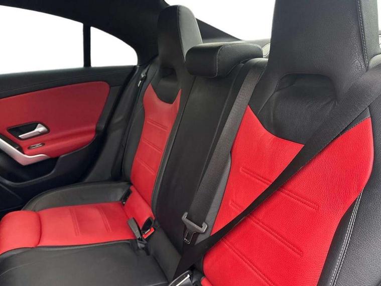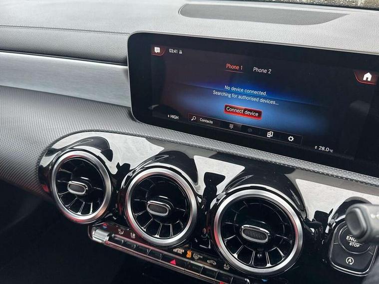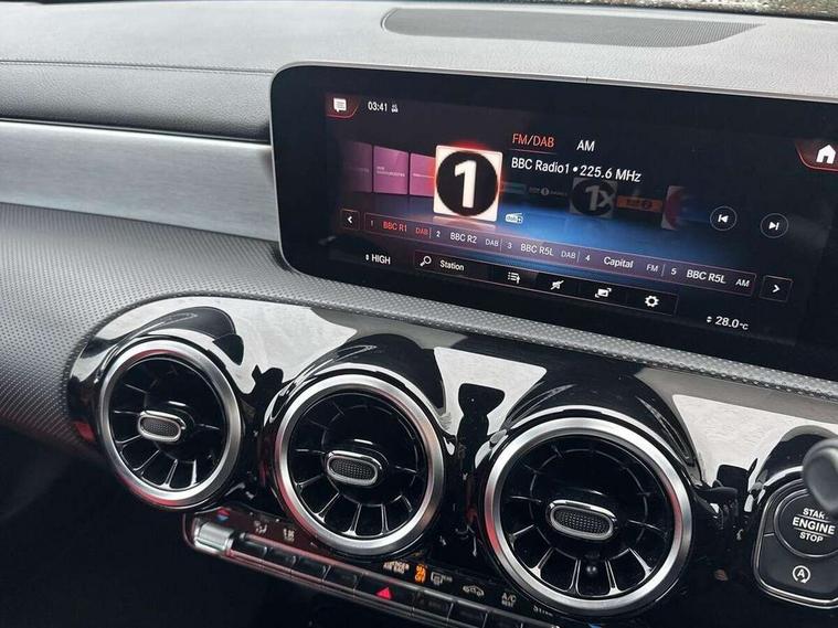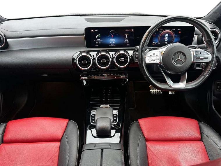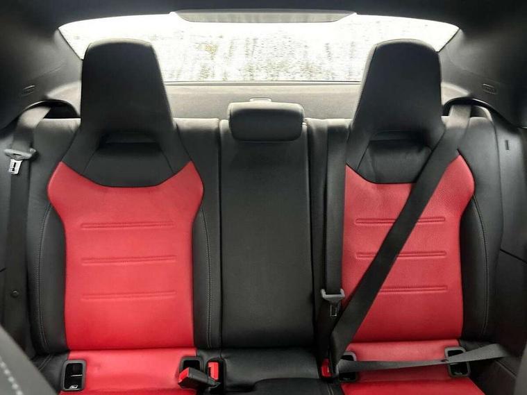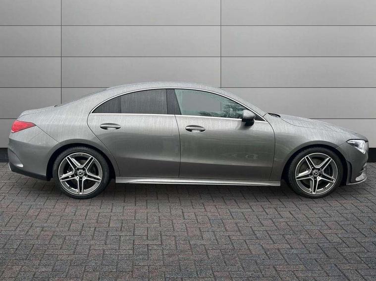 10.25" media display, 180 degree reversing camera, 7 inch display in instrument panel, Active lane keeping assist, Active park assist with parktronic system, Attention assist - Monitors steering behaviour and long journey fatigue, Cruise control + speed limiter, Direct steering, DYNAMIC SELECT with a choice of driving modes (ECO, Comfort, Sport, Sport+ and Individual), ECO start/stop function, Fluid level warning indicator for fuel, oil, coolant and washer fluid, Front and rear parking sensors, Hard-disk navigation, Hey Mercedes Voice activation, Lamp failure indicator, Outside temperature gauge, Pre-installation for private car sharing, Preinstallation for Mercedes Benz link, Radio aerial integrated into front and rear windshields, Service indicator (ASSYST), Smartphone integration, Trip computer in multifunction display with current consumption indicator, Wireless charging, Lowered comfort suspension, Rear axle multi-link, DAB digital radio tuner, MBUX multimedia system with DAB digital radio and touchpad including satellite navigation, Rear stowage compartment with 1 front centre console, 2 x USB ports (type C), Active radiator shutters open for cooling air and close when not needed to improve aerodynamics and fuel efficiency, Adaptive brake lights, AMG body styling front apron, rear apron and side skirts, Beltline strips and weather strip in chrome, Body colour bumpers, Body colour door handles with chrome inserts, Diamond radiator grille pins in chrome with silver painted louvres and chrome insert, Electric windows, Electrically adjustable and heated door mirrors with integrated LED indicators, Exhaust system - Twin trapezoidal tailpipes in polished stainless steel, Headlamp assist automatic headlamp activation, Heated glass rear windscreen + timer control, High level LED third brake light, LED high performance headlamps with integrated LED daytime running lights, LED tail lamp, Privacy glass, Rain sensing windscreen wipers with two sensitivity settings, Rear fog lamp, 3 spoke flattened bottom nappa leather multifunction steering wheel with perforated leather in grip area, 40:20:40 split folding rear seat backrests, Air conditioning - Two zone thermotronic luxury automatic climate control with display, Air vents with surround in silver chrome, Ambient lamp and signal, Automatic child seat recognition sensor, Black roof lining, Brushed stainless steel sports pedals with rubber studs, Cup holder and stowage compartment lighting, Floor mats with AMG lettering, Freight packaging with tie-down hooks, Front and rear Handle recess/closing handle light in left and right, Front centre armrest with stowage, Front door sills with Mercedes Benz lettering, Front footwell lights, Front reading lamps in left and right console downlighter, Front seat cushion length adjustment, Front signal exit lamp in left and right, Front vanity light in left and right, Galvanished gear shift paddles on steering wheel, Heated front seats, Illuminated glove compartment stowage, Luggage net on driver/front passenger seat backrest, Manually adjustable front seats, Manually height and reach adjustable steering column, Oddments tray lighting, Rear interior lamp, Rear reading lamp in support plate in left and right, Spectacles compartment for driver, Sport seats with fixed head restraints, Stowage compartment in centre console with retractable cover, Sunvisors with illuminated vanity mirrors, Touchpad illumination, Touchpad on center console, Twin front cupholders, Two outer rear seat isofix and top tether child seat fixing points, Light and sight pack - CLA, Mirror pack - CLA, Seat comfort pack - CLA, Active bonnet pedestrain safety measure which detects an impact and raises bonnet by 65mm, Active brake assist includes forward collision warning system with autonomous braking, Adaptive brake assist with hold function and hill start assist, Anti-lock braking system (ABS) with brake assist, Brake pad wear warning indicator, Childproof locks manually operated for rear doors and electrically operated for rear power windows, Crash responsive emergency lighting, Driver and front passenger head and sidebags, Driver and front passenger windowbags, Drivers knee airbag, Dual stage driver and front passenger airbags, Electric parking brake, Electronic stability programme with acceleration skid control, ESP curve dynamic assist, Front and rear seatbelt reminder, Front brake callipers with Mercedes Benz lettering, Front passenger seat occupancy sensor, Three point rear seat belts, Tyre pressure monitoring system, Warning triangle and first aid kit, Alarm system with immobiliser and interior protection -Thatcham category 1, Keyless Go starting function, Remote central locking and crash sensor with emergency opening function, Light aluminium with longitudinal grain interior trim, 18" 5 twin spoke design alloy wheels painted in titanium grey with high sheen finish, Summer tyres, Tirefit tyre sealant kit,