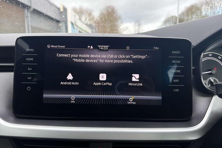 Amundsen satellite navigation with 9.2" glass colour touchscreen display, web radio, voice control and traffic sign recognition, Bluetooth system, E-call, Front assist system, Gesture control, PAS, Service indicator, Speed limiter, Wireless SmartLink for apple car play, android auto and mirrorlink, 8 Speakers, Auxiliary input socket, DAB Digital radio, Body colour bumpers, Body colour door mirrors and handles, Chrome grille surround, Dimming rear view mirror with black surround, Electrically adjustable and heated door mirrors, Front and rear electric windows, Headlight range control, Heated rear window, LED rear lights - low functionality, LED third brake light, Light sensors, Privacy glass, Rain sensor, Rear fog lights, Rear side wing doors, Rear wiper, 12V Accessory socket in centre console, 3 seat bench in 2nd row, Chrome inner door handles, Cloth upholstery, Front head restraints, Glove compartment with illumination, Height adjustable driver and front passenger seats - manual, Ice scraper, Isofix child seat fittings on outer rear seats, ISOFIX on front passenger seat, Manual lumbar support for front seats, Rake/reach adjustable steering wheel, Reading lights, Single front passenger seat, Sun visors with illumination on front passenger, Textile floor mats, Third rear headrest, Top tether for front passenger seat, Umbrella in driver's door, 3x3 point rear seatbelts, Airbags - driver and front passenger, ESP, Front passenger airbag deactivation switch, Front side airbags with curtain airbags, Hill hold control, Manual parking brake, Manual rear child locks, One tone horn, Rear disc brakes, Seatbelt reminder for driver an co-driver, Traction control, Tyre pressure monitor, Anti-theft alarm system with interior monitoring, backup horn, towing protection and remote central locking with SAFE system, Anti-theft wheel bolts, Electronic engine immobilizer, Silver haptic decorative insert on the dashboard with hot stamping in glossy black,