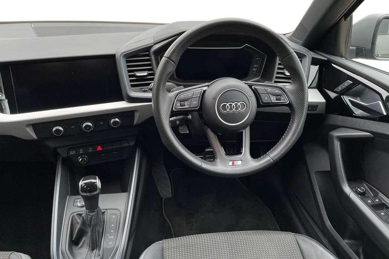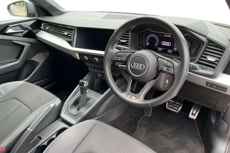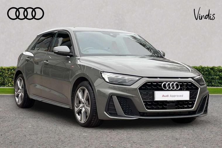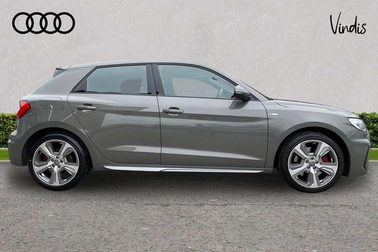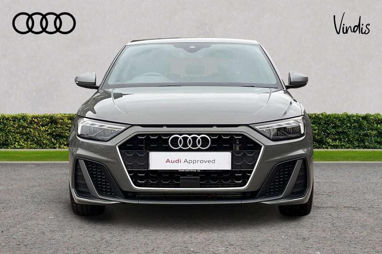 10.25" Digital instrument cluster display classis style instrument dials + speed, odometer, time, outside temperature, telephone menu + fuel level warning, Audi connect safety emergency and service including E-call, Audi drive select - power steering assistance + engine + gear shift 3 preset modes (auto, dynamic, efficiency and an Individual mode), Audi smartphone interface with connect compatible smartphone via USB directly MMI display + Nav, music, third party apps controlled via MMI controller, Automatic start/stop system, Bluetooth interface, Cruise control, Driver's information system, Electromechanical power steering, Lane departure warning system, Rear parking sensor, Service interval indicator, Speed limiter, Voice control system, Washer fluid level indicator, Sports suspension with adjustable dampers, 1 x SDXC card reader, 1 x USB type C and 1 USB type A charging points, DAB Digital radio, MMI radio plus with 8.8" colour MMI display screen and MMI touch, Audi rings logo foil in platinum grey, Auto dimming rear view mirror, Deletion of engine technology designation at rear, Door mirrors in platinum grey, Door sills with aluminium inlays and S Line logo, Electric front and rear windows, Electrically adjustable, heated, folding door mirrors with integrated LED side indicator, Front side air inlets in grained matt black and C frame in titanium black, Heat insulating glass windscreen and side windows, Heated rear windscreen, LED headlights with LED rear lights + dynamic rear indicators + headlight adjustment and high beam, turning light + LED daytime running lights, Radiator grille and rear diffuser in matt titanium black, Radiator protective grille frame in matt aluminium silver, Rain and light sensors, Rear fog lights, Rear wiper, S line badges on front wings, Side front spoiler lips in grained matt black, Visible tailpipes, 12V socket in centre console with two cup holders, 3 rear seats with headrests, 40:60 Split folding rear seat or folded fully, Black cloth headlining, Driver and passenger seat with manual height adjust with forward and backwards adjustment, Front and rear black floor mats with contrast stitching in fine silver, Front head restraints, Height and reach adjustable steering wheel, ISOFIX child seat mounting for front passenger and outer rear seats including top tether attachment point of outer rear seats, Leather gear knob with aluminium trim, Luggage compartment light with front and rear reading lights, Manually adjustable lumbar support in front seats, Stainless steel pedals, LED interior lighting pack - A1, Luggage compartment pack - A1, S line exterior styling pack - A1 Sportback, 3x3 point rear seatbelts, Audi pre-sense front with pedestrain and cyclist recognition, Brake assist function, Driver and front passenger airbag with front side and head airbags, Electronic Stability Control including ABS, EBD, ASR and EDL, Front and rear seatbelt reminder, Front passenger airbag deactivation switch, Hill hold assist, Red brake calipers, Seatbelt height adjustment for front seats, Seatbelt monitoring, Tyre pressure warning light, Warning triangle and first aid kit, Anti theft alarm, Anti theft wheel bolts and loose wheel warning, Immobiliser, Remote central locking with 2 foldaway keys, Aluminium trim for control switches, air vents and digital instrument cluster, Silver grey inlays polygon structure in diamond paint finish, Structured grey accent areas including air vents, door handle recesses and centre console in quartz paint finish,