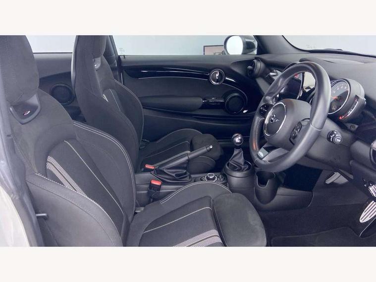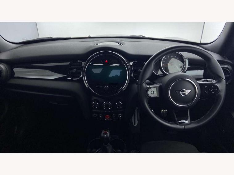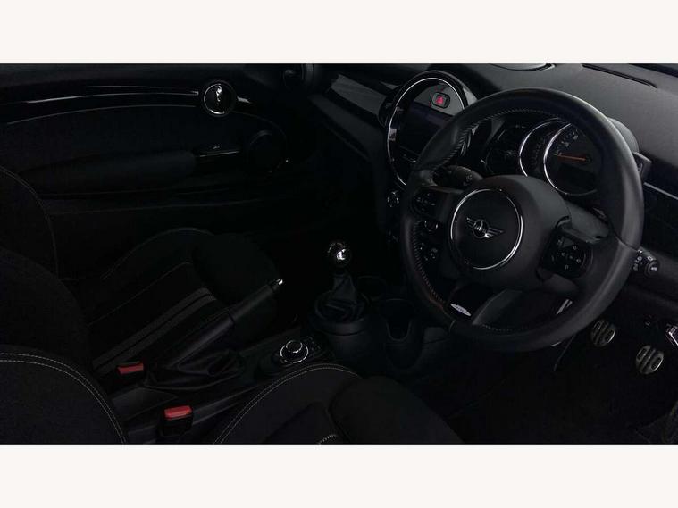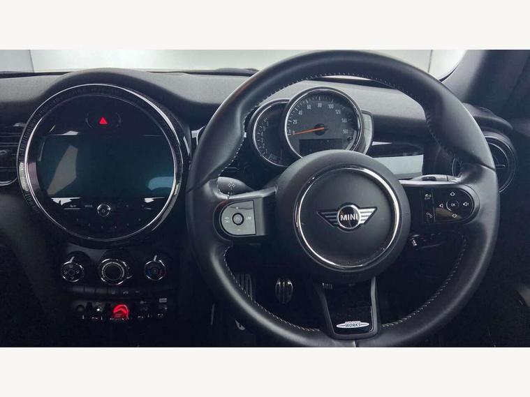 Automatic start/stop function with brake energy recuperation, Compatible mobile phone bluetooth with audio streaming, Cruise control with brake assist, Electro-mechanical speed dependant steering assistance, Flexible car sharing preparation, Instrument cluster, MINI Driving Modes - centre toggle switch to control driving setting (sport, mid and green), Mini E-call, MINI TeleServices, On board computer, Rear park distance control, Service interval indicator, 6 Speed manual transmission including gear change indicator display, Adaptive suspension, Double Vanos system, Fully variable valve control, High precision injection, Performance Control, 4 speakers in front door trims and underneath front seats, 8.8" touchscreen with LED ring, FM tuner and DAB digital radio, Automatic headlight activation switch, Body colour fuel filler cap, Chrome border high gloss black slats radiator grille, Dynamic brake lights, Electric front windows, Exhaust tailpipe on left with chrome finisher, Heated rear window, Heated windscreen washer jets, JCW Aerodynamic kit - Front and rear bumpers with sporty JCW styling and part-painted side sills with MINI John Cooper Works door sill finishers, John Cooper Works rear spoiler, LED headlight with closed ring and daytime driving lights, Metal door sill strips with MINI imprint, Model logo Cooper on right of tailgate, Rain sensor window wipers, Rear fog lights, Rear LED lights with union jack design, Rear window wiper, Side scuttle panel with integrated indicator, Sun/heat protection glass, White indicator lenses, 12V Accessory socket in centre console, 4 lashing eyes in luggage compartment, 60/40 split folding rear seat, Anthracite headliner including grab handles and clothes hooks, Carbon black colour line - Knee roll and door armrest, Chrome interior highlights, Cupholders, Front and rear isofix with front passenger airbag deactivation, Glove compartment, Height and length steering column adjustment, Interior lighting with 12 different colours across the dashboard, underneath door bezel with illuminated laser-engraved design on central display, JCW Sport seats with integrated headrests, adjustable thigh support and John Cooper Works logo, Leatherette gearshift lever and handbrake gaiters, LED reading lights, vanity mirror lights, front foot well light and spotlight on front seats, Manual air conditioning, Mechanical seat adjustment - forward/back & backrest for front seats and driver seat height adjust, Multifunction steering wheel, Passenger seat height adjuster, Storage compartments in doors, Sunvisors with vanity mirrors, Velour floor mats, Walknappa leather steering wheel with grey seam and John Cooper Works badge on Piano Black lower steering wheel spoke, Piano black exterior pack - Mini Hatchback Cooper, 3 point seatbelts on all four seats, 6 Airbags - front, side, head and seat belt tensioners, Anti-lock braking system (ABS), DSC - Dynamic Stability Control, Front and rear disc brakes, Single tone fanfare horn, Tyre pressure monitoring system, Alarm system with tilt sensor, monitoring doors, bonnet interior and tailgate, Electronic vehicle immobiliser, Start/stop toggle with keyless go, Piano black interior trim, Tool kit,