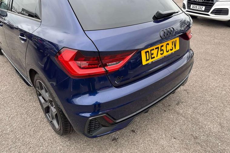10.25" Digital instrument cluster display classis style instrument dials + speed, odometer, time, outside temperature, telephone menu + fuel level warning, Advanced driver attention and drowsiness monitor, Audi connect emergency call and service, Audi drive select, Audi remote connect and control, Bluetooth interface, Camera based traffic sign recognition, Cruise control, Driver's information system, Electromechanical power steering, Lane departure warning system, Rear parking sensor, Service interval indicator, Smartphone interface, Speed limiter, Start stop system with recuperation, Voice control system, Washer fluid level indicator, Sports suspension, 2 x USB type C connection points, 6 loudspeakers, DAB Digital radio, MMI radio plus with 10.1" colour MMI display screen and MMI touch, Auto dimming rear view mirror, Black door mirror housings, Black side skirts, Body coloured bumpers, Door sill trims with aluminium inlays and logo, Electric front and rear windows, Electrically adjustable, heated, folding door mirrors with integrated LED side indicator, Front side air inlets in grained matt black and C frame in anthracite black, Front wing badges, Headlight cleaning system, Heat insulating glass windscreen and side windows, Heated rear windscreen, High level LED brake light, LED daytime running lights, LED headlights with range control LED rear lights + dynamic rear indicators, Light and rain sensors, Privacy glass, Radiator grille and rear diffuser in matt anthracite black, Radiator protective grille frame in matt aluminium silver, Rear fog lights, Rear side wing doors, Rear wiper, Side front spoiler lips in grained matt black, 12V socket in centre console with two cup holders, 3 rear seats with headrests, 3 seat bench in 2nd row, 3 spoke flat bottomed multi-function plus leather steering wheel with S badging, grips in preforated leather, contrast stitching and paddle shift, 40:60 Split folding rear seat or fully collapsed, Black carpets, Black cloth headlining, Front and rear velour black floor mats with contrast stitching in fine silver, Front head restraints, Front passenger seat, Height and reach adjustable steering wheel, Interior lighting includes roof module, front and rear reading lights and right luggage compartment lighting, ISOFIX child seat mounting for front passenger and outer rear seats including top tether attachment point of outer rear seats, Leather gear knob with aluminium trim, Leather handbrake grip, Manual air conditioning, Manual height adjustable for driver and front passenger seat, Manually adjustable lumbar support in front seats, Stainless steel pedals, Ambient lighting package - A1, Black styling pack - A1 Sportback Black Edition, Luggage compartment pack - A1, 3x3 point rear seatbelts, Audi pre-sense front with pedestrain and cyclist recognition, Brake assist function, Driver and front passenger airbag with front side and head airbags, Electronic Stability Control including ABS, EBD, ASR and EDL, Front passenger airbag deactivation switch, Hill hold assist, Manual rear child locks, Seatbelt height adjustment for front seats, Seatbelt monitoring, Tyre pressure loss indicator, Warning triangle and first aid kit, Anti theft alarm, Anti theft wheel bolts, Immobiliser, Remote control key with safelock, Aluminium trim for control switches, air vents and digital instrument cluster, Black dashboard, Silver grey inlays polygon structure in diamond paint finish, Structured grey accent surfaces insert of air vents, interior door handle recesses and centre console in quartz paint finish,