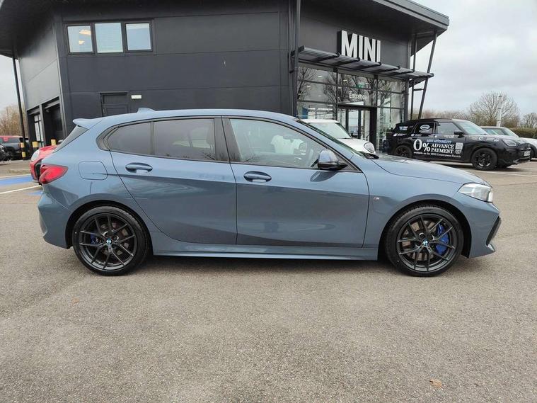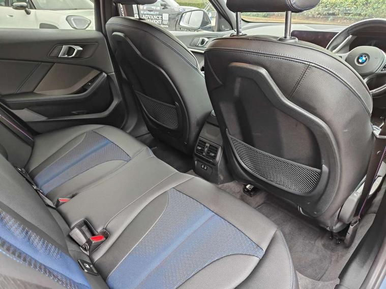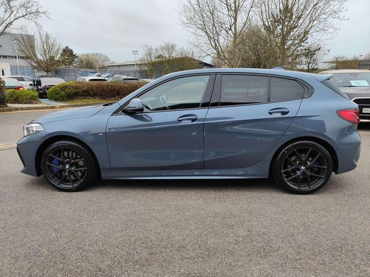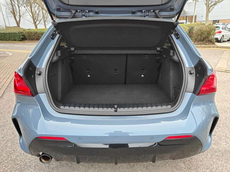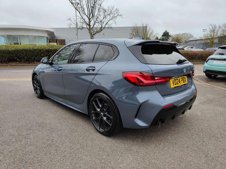 Active guard plus, Attentiveness assist, BMW ConnectedDrive online services, BMW Teleservices, Check Control warning system for monitoring of lights and door/luggage compartment open warning, Cruise control with speed limiter, Eco pro mode, Front axle single joint with specific axle kinematics to minimise drive influences on steering + provide increased rigidity agile driving behaviour, Integrated owners handbook, Lane departure warning system, Oil sensor for level and grade, On board computer, Optimum shift indicator, Personal Profile, Pull away assistant, Rigidly mounted rear subframe - Multi link construction with separate spring / damper configuration and excellent driving characteristics, Speed limit Info including no-overtaking indicator, Aluminium lightweight construction, Anti roll bar front and rear, Balancer shaft, Double VANOS twin scroll turbocharging system, Drive Performance Control, Electronic differential lock, High precision injection, M sport suspension, Petrol Particulate Filter, Twin tube gas filled shock absorbers with degressive characteristic curve, VALVETRONIC engine management, DAB Digital radio, Auto dimming rear view mirror, Automatic headlight beam throw control, Automatic windscreen wipers and automatic headlight, Body colour door handles, Body colour mirror caps, Body colour roof trims, Chrome 'M' logo side designation, Chrome exhaust twin tailpipes round 90mm in left, Chrome kidney grille frame with Satin Aluminium struts, Direction indicator side lights in exterior mirrors, Electrically adjustable exterior mirror with mirror adjustment switch on drivers armrest and aspheric on driver side, convex on passenger side, Fading support, Folding side mirrors with auto dimming/folding wing mirrors with auto dimming, Follow me home headlights, Front and rear bumper system with replaceable deformation elements, Front and rear electric windows with open and close fingertip control, anti trap facility and comfort closing, Front door sill finishers in black plastic with M designation in metallic look, Green tinted heat protection glazing, High gloss shadowline window frame, Recess cover mirror frames and B/C pillar embelisher trim, High level third brake light, Integrated front windscreen with washer jets, LED daytime running lights, LED eyebrow turn indicators, LED front fog lights, Lightweight engineering, Matt black air guide grilles, Matt black wheel arch trim, Model designation on electric bootlid, Nearside reverse light in rear light cluster, Preparation for high beam assistant, Rear fog lights, Rear side wing doors, Rear window wiper, Shark fin antenna, Trailer stabilisation logic, Visible VIN plate, Welcome lighting, 12V power socket in front centre console with blanking plug, 3 rear seat head restraints, 3 seat bench in 2nd row, 3 spoke sports leather steering wheel with black leather and stitching, pearl chrome decorative finish, specific M Badge, Anthracite headlining, Black boot net with lashing eyes, Cargo function on 2nd seat row, Child seat ISOFIX attachment for two outer rear seats and front passenger seat with anchorage points, Conditioned based service, Driver and front passenger backrest net on rear, Driver and front passenger seat heating, Driver side folding compartment in instrument panel, Folding rear clothes hook, Four grab handles integrated in roof lining, Front and rear door pockets with bottle holders, Front and rear side armrest integrated into door trim, Front armrest, Front sports seats, Glove compartment, Height adjustable front head restraints, Luggage compartment for bag hooks on left and right, foldable luggage compartment liner and four lashing eyelets, Manual adjust steering wheel, Multi-function controls for steering wheel, Single front passenger seat, Storage compartment in centre console, Storage compartment in luggage compartment, Stowage of the parcel shelf in luggage compartment trim, Sun visors with vanity mirrors and insert tab, Two front centre console cupholders, Two zone automatic air conditioning, Type C two USB ports in rear centre console, Velour floor mats, Additional interior lighting pack - 1 Series, BMW live cockpit professional pack- 1 Series, Connected pack professional - 1 Series, Interior lights pack - 1 Series, M Sport exterior styling aerodynamics pack - 1 Series, 2 tone horn, 3 point seatbelts on all seats, front pyrotechnic belt tensioners, stopper and belt force limiters, rear coded belt buckles, Airbags - Front driver/passenger, front and rear curtain head protection, front side, manual deactivation of front passenger airbag, Anti lock braking system (ABS) with brake assist, BMW emergency call, Brake drying, Braking readiness, Child proof locking system in rear door, City braking function, Comfort modes, Cornering brake control, Crash sensor activating of airbags, Unlocking doors, hazard warning lights, fuel cut off, interior lighting+activation of safety battery terminal clamp, Driver and front passenger seat belt security check, Dynamic stability control + (DSC+), Dynamic Traction Control - DTC, Electrically operated hand brake including automatic hold function, Front and rear disc brakes, Seatbelt warning, Side impact protection, Tyre pressure monitoring system, Warning triangle and first aid kit, Central locking switch for all doors, fuel filler cap and luggage compartment, Deadlocking function system to all doors, Drive away locking system on all doors and luggage compartment with de-activated in iDrive settings, Locking wheel bolts, Remote control with integrated key with High-gloss Black inlay and M designation and 1 button for open/ close lock, window, open luggage compartment, Start/stop button illuminated in centre console with keyless engine start and auto start stop deactivation button, Thatcham Cat.1 alarm and immobiliser, Wheel slip limitation close to the actuator (ARB), Contrast stitching on instrument panel, 18" Burnished M double spoke bi-colour alloy wheels finished in orbit grey - styl