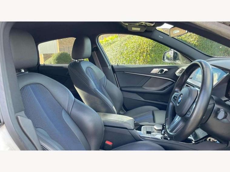 Active guard plus, Attentiveness assist, Auto start-stop, BMW Intelligent Personal Assistant, BMW Live Cockpit Professional with 10.25" high resolution instrument and control display, BMW Online services, BMW operating system with 7.0 mid interface, BMW Teleservices, Check Control warning system for monitoring of lights and door/luggage compartment open warning, Cruise control with braking function, iDrive controller with 7 short cut favourite buttons on centre console, Integrated navigation data with map data via USB +features such as 3D landmarks and micro city models, Integrated owners handbook, Intelligent voice assistant, Lane departure warning system, M Sports steering, On board computer - average speed+fuel consumption, service interval, clock/date, odometer/trip meter, outside temperature display and ice warning, Optimum shift indicator, Personal Profile, Pull away assistant, Speed limiting function, Aluminium lightweight construction, Balancer shaft, Double VANOS, Drive performance control with ECO PRO comfort + sport mode, Dual clutch automatic transmission, Electronic differential lock, High precision injection, M Sport suspension with stiffer spring/damper set-up and vehicle lowered by 10mm + twin tube gasfilled shock absorbers and Anti roll bars, Performance Control, Petrol Particulate Filter, VALVETRONIC engine management, 2x USB Type C ports (for charging and data transfer), 4G LTE Connectivity with hard wied 4G network sim card, DAB digital radio, MP3 players and RDS double tuner, Auto wipers, Automatic headlight beam throw control, Automatically dimming rear view mirror, Body colour door handles, Body colour mirror caps, Chrome 'M' logo side designation, Chrome exhaust single tailpipe, round, Direction indicator side lights integrated exterior mirrors, Electric windows - front and rear, with open/close fingertip control and trap release, Exterior mirrors - electrically folding with anti-dazzle, Fading support, Follow me home headlights, Front and rear bumper system with replaceable deformation elements, Front door sill finishers in black plastic with M designation in metallic look, Heated, electrically adjustable exterior mirror aspheric on driver side, convex on passenger side, High gloss black B pillar finish, High gloss shadow line exterior trim, High level third brake light, LED daytime running lights, LED front fog lights, LED Headlights, Lightweight engineering, Model designation on right side of tailgate, Preparation for high beam assistant, Rain sensor with automatic headlight activation, Rear boot, Rear fog lights, Rear side wing doors, Reversing light in rear light cluster, Welcome lighting, 12V power socket in centre console, 2 cupholders in front centre console, 3 rear seat head restraints, 3 rear seats, 3 spoke M sports design leather steering wheel finished in nappa leather with specific M badge, Anthracite finished floor mats with contrasting surround, Anthracite headlining, Automatic two zone climate control air conditioning, Child seat ISOFIX attachment for two outer rear seats and front passenger seat with anchorage points, Conditioned based service, Driver and front passenger seat heating, Front and rear door pockets including bottle trays, Front and rear side armrests integrated into door trim, Front armrest foldable with integrated storage compartment, Front centre interior light over interior mirror and rear centre automatic interior light when door is opened/ignition switched off or via remote key, Front head restraints, Front passenger seat, Front sports seats with electric side bolster adjustment, Glove compartment, Glovebox with light, Luggage compartment lighting, Manually adjustment steering wheel column, Multi-function controls for steering wheel, Sun visors with vanity mirrors and insert tab, Through loading system with 40/20/40 split folding rear seat, Two lashing eyes, Additional interior lighting pack - 2 Series Gran Coupe, Extended storage pack - 2 Series Gran Coupe, M Sport exterior styling aerodynamics pack - 2 Series Gran Coupe, 2 tone horn, Airbag - Front driver and passenger, front and rear head, front side, curtain head protection, manual deactivation of front passenger airbag possible, Anti lock braking system (ABS) with cornering brake control, BMW emergency call, Brake drying, Braking readiness, City braking function, Crash sensor activating of airbags, Unlocking doors, hazard warning lights, interior light, safety battery terminal, Dynamic stability control + (DSC+), Dynamic Traction Control - DTC, Electrically operated hand brake, Rear brake discs, Rear child proof door locks, Seat belt security check for driver and front passenger, Seatbelt warning, Side impact protection, Three point seat belts on all seats including front belt stopper, pyrotechnic belt tensioners and belt force limiters, Trailer stability control, Tyre pressure monitoring system, Ventilated front disc brakes, Warning triangle and first aid kit, Central locking switch for all doors, fuel filler cap and luggage compartment, Deadlocking function system to all doors, Drive away locking system on all doors and luggage compartment, Locking wheel bolts, Start/Stop button (illuminated) in centre console with keyless engine start and Auto Start-Stop deactivation button, Thatcham Cat.1 alarm and immobiliser, Two remote control key with integrated key - open/close doors/fuel flap/tailgate +1 button for unlock compartment with M design high gloss black inlay, Contrast stitching on instrument panel, 18" Burnished M double spoke bi-colour alloy wheels finished in orbit grey - style 819M, Reduced rolling resistance tyres,