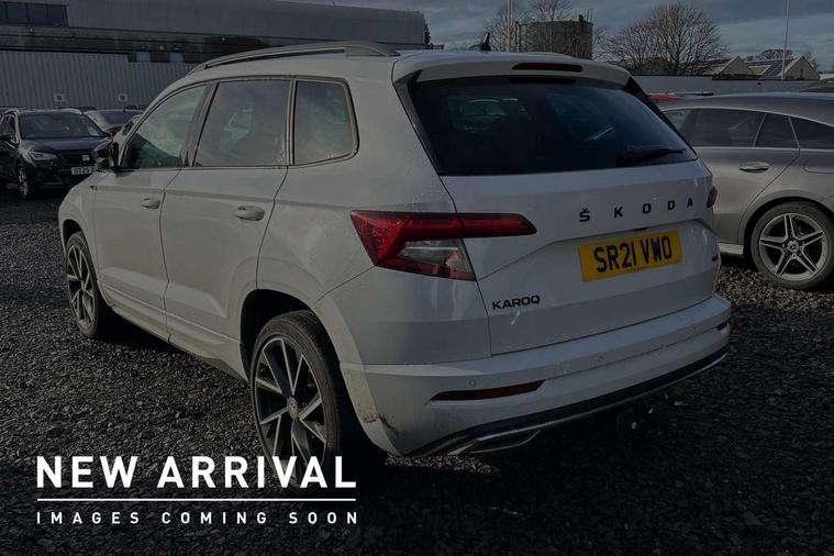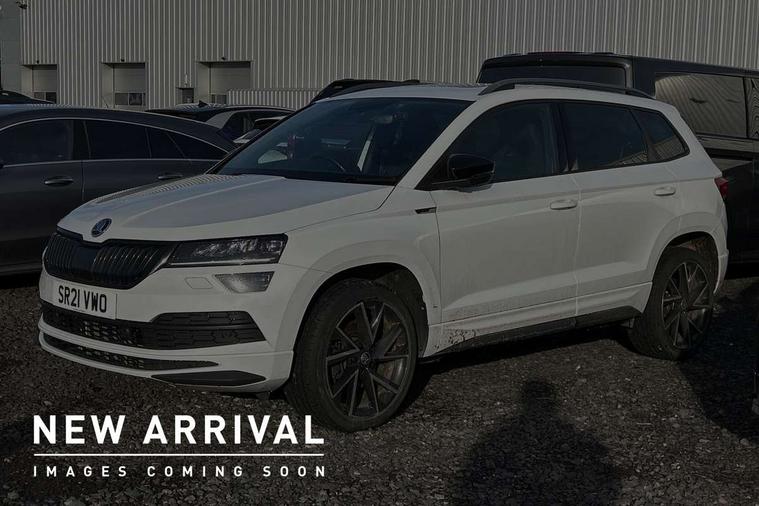Care connect, Drive mode selection with off road, Driver fatigue sensor, Multifunction colour trip computer, Outside temperature gauge, Service interval indicator, SmartLink wireless for Apple and wired for Android, Start/stop system with regenerative braking, USB C Port x 2 in front centre console, Diesel particulate filter, DAB radio with Bluetooth, USB connection, Wireless charging without wireless aerial connection, Acoustic glass, Aero front windscreen wipers with intermittent function, Automatic headlight control system, Black electric window control buttons, Black roof rails and door mirrors with radiator grille, Body colour door handles, Electric front and rear windows with child proof lock, Front door steps with SportLine logo, Full LED headlights + adaptive front light system + LED daytime running lights and front cornering fog lights, Headlight washers, Heated rear windscreen, LED rear lights with high functionality, Light assistant (coming/leaving home/tunnel light), Panoramic sliding sunroof, Privacy glass, Protective door side sills in body colour, Rear diffuser, Safety reflectors on front doors, Skoda lettering on tailgate in black, Sportline badge on front fender, Sportline decorative inserts with badging, Sports front and rear bumpers, Third brake light, 1.5 litre bottle holders in driver and front passenger door panels, 12V socket in boot, 12v socket in front centre armrest with storage compartment and rear air vents, 2 Folding hooks and nets in boot, 2 Front readings lights for driver and passenger, 3 rear height adjustable headrests, 4 foldable roof handles with rear coat hooks, 4 lashing points on luggage floor, Aluminium pedals, Backrest release, Black roof headlining, Cargo elements in boot, Chrome inner door handles, Door sill scuff plates, Driver and passenger seats height adjust, Front head restraints, Front seat and rear pockets, Height adjustable front three point seats belts with tensioners, Height/reach adjust steering wheel, Ice scraper, Illuminated and cooled glovebox, Illuminated luggage compartment, Isofix child seat preparation outer rear, Manual lumbar support for front seats, Net programme in boot, Pen holder, Pollen filter, Rear boot cover, Rear reading lights, Rear seats fixed folding and divided 60:40, Retractable parcel shelf attachable to tailgate, Safety vest holder, Storage box in upper central dashboard closed, Storage compartment below the passenger seat, Sunvisors with illuminated vanity mirrors, Textile floor mats, Umbrella under passenger seat, Welcome animation with sportline logo, LED Interior lighting pack with Skoda welcome logo - Karoq, Airbags - Front side, head, knee and curtain, Automatic door unlocking in case of crash, Automatic fuel cut off in case of crash, Driver airbag, Electronic parking brake with auto hold function, Emergency rear braking signal, ESC including ABS, MSR, ASR, EDS, HBA, DSR, RBS, MKB and traction control, Front assist radar scanning of the space in front of the car with automatic braking, Hill hold control, Passenger airbag with switch-off function, Pedestrian monitor, Seatbelt reminder signalisation and pretensioner for all seats, Three point seatbelts rear, Two tone horn, Tyre pressure display, Tyre pressure monitor, Alarm with interior monitoring, back up horn and tilt sensor with safe function, Electronic engine immobiliser, Keyless entry and keyless start with safe system, Remote central locking with 2 remote folding keys, Black air vent surround, 19" Vega anthracite alloy wheels, Anti-theft wheel bolts protection, Storage on wheel cover,