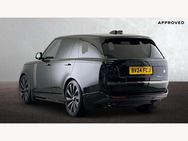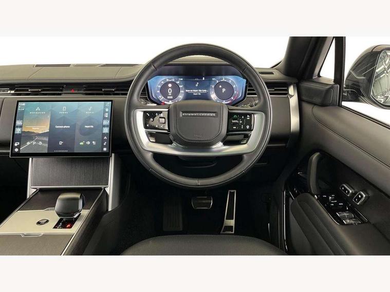 13.1" Touchscreen, 3D surround camera inc frwd traffic detection, vehicle clearance guidance, 3D view, clearsight ground view, manoevure light, 360 parking aid, wade sensing, All Terrain Info Centre, All wheel steering, Android Auto, Apple car play, Blind spot assist, Bluetooth connectivity streaming, Configurable programs, Driver condition response, Eco mode, Electric power assisted steering (EPAS), Emergency call service, Front and rear parking aid, Head up Display, Interactive driver display, Lane keep assist, Rear collision monitor, Rear traffic monitor, Remote, Traffic sign recognition with adaptive speed limiter, Wi-Fi Enabled with data plan, Wireless device charging with phone signal booster, 8 speed automatic transmission, Active damper technology system, Adaptive dynamics, Adaptive off-road cruise control, All Wheel Drive (AWD), Automatic access height, Electronic active differential with torque vectoring by braking, Electronic air suspension with dynamic response pro, Terrain Response 2 Auto, Twin speed transfer box, Digital Audio Broadcast radio-DAB, Meridian 1600W signature sound system, Pivi pro including smart settings, Connected navigation pro, nuance speech, USB socket, Acoustic laminated windscreen, Animated directional indicators, Automatic headlights, Automatic levelling headlights, Centre high mounted stop light, ClearSight interior rear view mirror, Digital LED headlights with signature DRL and image projection, Electric windows with one touch open/close and anti trap, Flush deployable exterior door handles, Front and rear recovery eyes, Front fog lights, Headlamp power wash, Heated rear window, Heated washer jets, Illuminated aluminum treadplates with illuminated SV script, Laminated front and rear side glass, LED tail lights, Power fold, auto-dimming, heated door mirrors with approach lights, Rain sensing windscreen wipers, Rear boot, Rear fog lights, Rear side wing doors, Side repeater indicators in mirror, Solar attenuating windscreen, SV branded puddle lamps, SV etched roundel on side gill inserts, SV exclusive front bumper and grille design, SV exterior badge, SV white ceramic exterior badge with black SV roundel, Trailer stability assist, Winter wiper park position, 12V power sockets, 24-way heated and cooled, hot stone massage electric front seats with Executive Class Comfort Plus rear seats, 3 seat bench in 2nd row, Air quality sensor, Auto folding loadspace cover, Bright metal pedals, Cabin air purification pro, Cabin lighting, Centre console with armrest, Customer configurable single point entry, Driver and passenger front seat armrests, Easy boot loading, Electric rear side window sunblinds, Four zone climate control, Front and rear cupholders, Front and rear grab handles, Front head restraints, Gearshift paddles, Heated steering wheel, Hook in load space, Loadspace light, Luggage tie down in loadspace, Multifunction steering wheel, Rear centre armrest, Rear head restraints, Rear ISOFIX, Single front passenger seat, SV exclusive seat foams and sculpting, SV exclusive seat pattern embroidery/ perforation, SV exclusive speaker grille design, SV start up graphics in IP screen, Twin blade sunvisors with Illuminated vanity mirrors, Upper and lower glovebox, Versatile loadspace floor in tailgate, Online pack with data plan - Range Rover, 3x3 point rear seat belts, Anti-lock braking system (ABS), Brake hold function, Cornering brake control (CBC), Customer configurable autolock, DSC - Dynamic Stability Control, Electronic brake force distribution, Electronic parking brake, Electronic traction control, Emergency brake assist, Emergency braking, Front airbags with passenger seat occupant detector, Front side airbags, Hill descent control, Hill launch assist, Illuminated seat belt buckles, Low traction launch, Occupant protection assist, Power operated child locks, Roll stability control, Tyre pressure monitoring system (TPMS), Immobiliser, Intrusion sensor and alarm, Keyless entry, Locking wheel nuts, Remote central locking, SV exclusive key fob with white and black SV roundel,