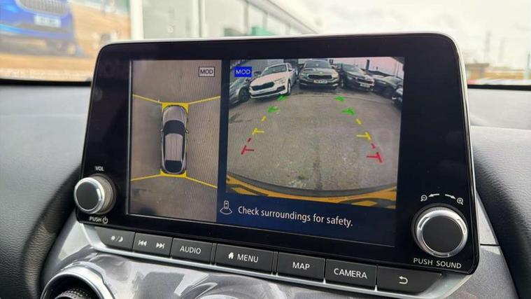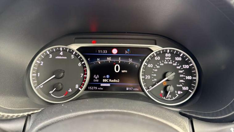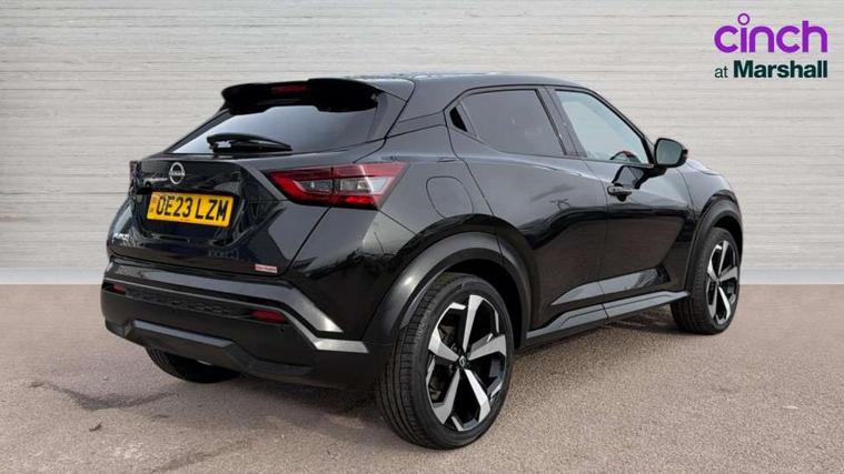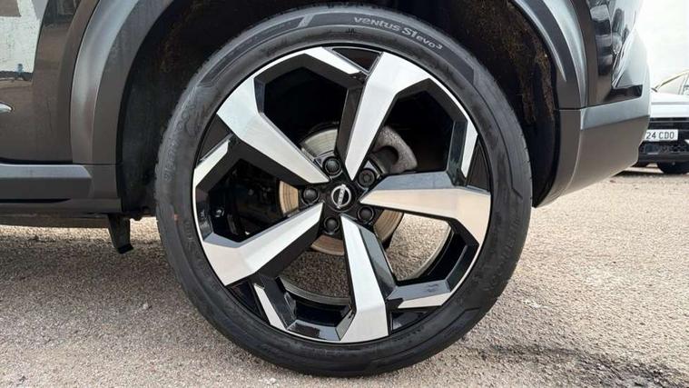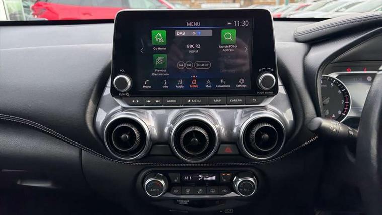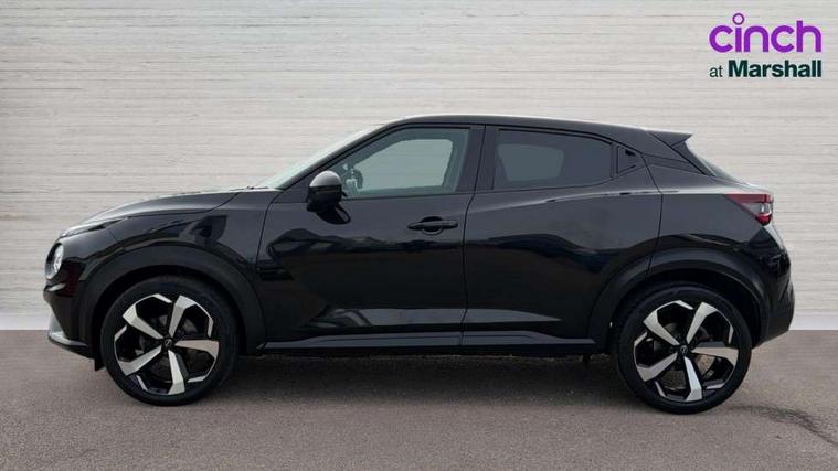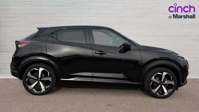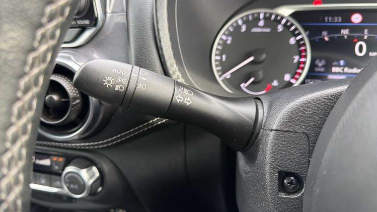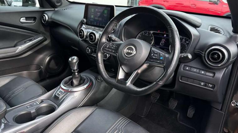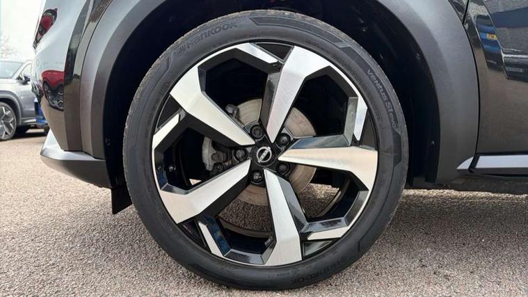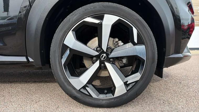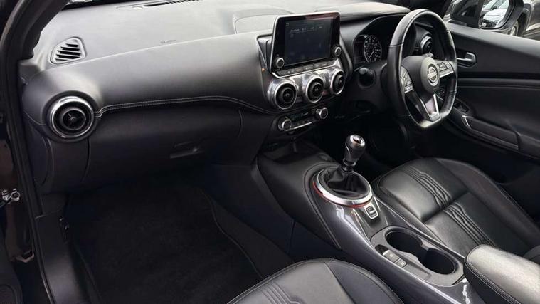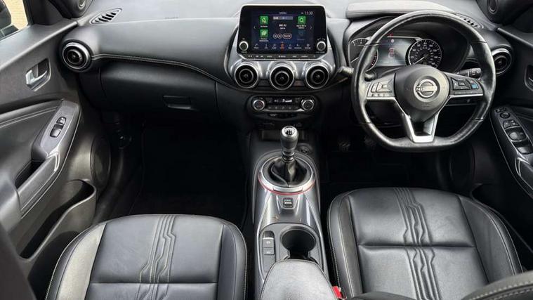7" full colour TFT screen combimeter, Apple CarPlay and Google Android auto, Drive modes select (Eco, normal and sport), Emergency and breakdown call, Front parking sensor, Idle start/stop system, Intelligent lane intervention, Lane departure warning system, Nissan connect 8" touch screen entertainment system, Nissan connect nav with TomTom traffic, Nissan connect services and Wifi connection, Outside temperature sensor, Power Steering, Rear parking sensor, Traffic sign recognition, Trip computer, Voice recognition, Gasoline particulate filter, 10 Bose speakers 6 speakers and 2 headrest speakers for driver/passenger seats, Bluetooth system, USB, Aux-in and 12V socket, Bose personal sound stage control, DAB Digital radio, Rear console USB port, Auto dimming interior rear view mirror, Auto headlights, Automatic hazard signal with emergency stop signal, Body colour bumpers, Body colour door handles, Electrically adjustable door mirrors with integrated indicators, Follow me home headlights, Front and rear electric window with one touch driver window, Heated and auto folding door mirrors, High beam assist, LED daytime running lights, LED front fog lights, LED headlamps, LED rear fog lamp, LED rear lamps, Rain sensor windscreen wipers, Rear privacy glass, Rear side wing doors, Rear wiper, Thermaclear heated windscreen, Three blink turn signal, 3 height adjustable rear headrests, 3 seat bench in 2nd row, 60/40 split folding rear seat, Automatic climate control, Card holder on driver sunvisor, Door ambient lighting, Driver and passenger sliding and reclining seats, Driver seat back pocket, Driver side rear coat hanger, Driver/passenger sunvisors and vanity mirrors, Front and rear cabin lights, Front armrest, Front door pockets with bottle holders, Front head restraints, Front passenger isofix child seat anchorage point, Front/rear passenger grab handles, Gear console ambient circle lighting, Grey synthetic leather kneepad, Heated front seats, Height adjustable driver's seat, Height adjustable passenger seat, Internal chrome door handles, Leather gearshift knob, Leather steering wheel, Luggage board, Luggage space lighting, Monoform sporty seats, Multifunction steering wheel, Passenger seat back pocket, Rear door bottle holders, Single front passenger seat, Synthetic leather upholstery, Telescopic steering wheel adjustment, Two cupholders in front centre console, Two rear isofix child seat anchorage points with top tether, Welcome light and console tray ambient lighting, Advanced safety shield pack - Juke, ABS with EBD and brake assist, Active ride control, Active Trace Control, Driver and passenger airbags, Driver and passenger side airbags, Electric handbrake with auto hold function, Electronic Stability Programme (ESP), Front and rear curtain airbags, Height adjustable seatbelts, Hill start assist, Intelligent emergency braking with pedestrian and cyclist recognition, Rear door child safety locks, Seatbelt reminder for driver/front passenger and rear seats, Single tone horn, Three 3 point rear seatbelts, Traction control, Tyre pressure monitoring system, VDC Dynamic Vehicle Control, Ventilated rear brake discs, Alarm, Immobiliser, Intelligent key and start push button with walk away lock and approach unlock functions, Remote central locking,