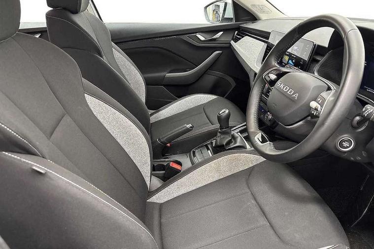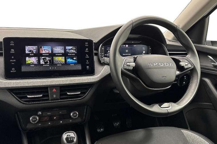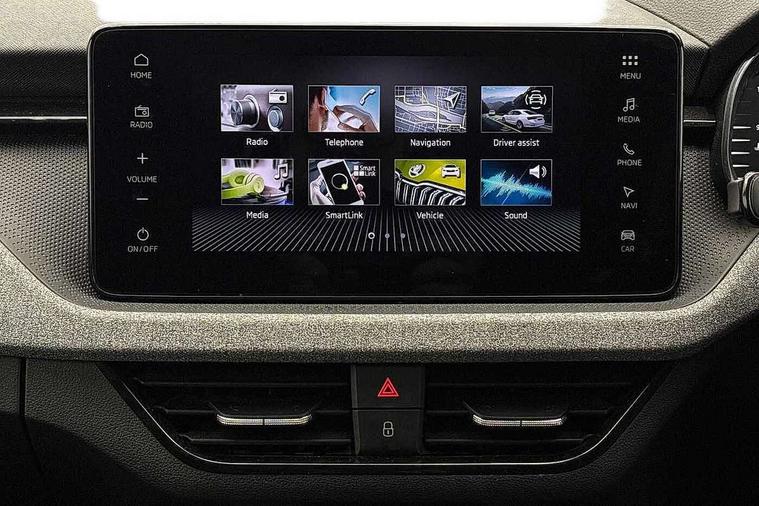 Advanced driver attention and drowsiness monitor, Bluetooth, e-Call (emergency call), Front assist system, PAS, Rear parking sensors, Rear view camera, Speed limiter, Tailgate, Traffic sign recognition, Virtual Cockpit - 10.25" digital display, Voice control system, Wireless smartlink, 4 USB C ports, 8 Speakers, 9.2" Skoda navigation display, DAB radio, Auto dimming rear view mirror, Automatic headlamp activation with Coming home and Leaving home feature, Automatic high/low beam, Body colour bumpers, Body colour door mirrors and handles, Chrome moulding around grille, Front and rear electric windows, Full LED headlights, Heated rear window, LED 3rd brake light, LED brake lights, LED daytime running lights, LED front turning lights, LED high beam, LED low beam, LED taillights, Rear LED fog light, Rear side wing doors, Rear wiper, Tinted windows, Unique dark chrome design logo on alloy wheels, 12V socket in luggage compartment, 3 seat bench in 2nd row, Black / Grey armrest stitching, Black hotstamping, Cargo elements, Chrome inner door handles, Door inserts in satin black, Driver and passenger sun visors with vanity mirror, Dual zone climate control, Front and rear roof lights, Front centre armrest, Front head restraints, Glasses storage in roof liner, Height adjustable driver seat, Height adjustable passenger seat, Ice scraper, Illuminated glove compartment, Inner circulation control with pollen filter, ISOFIX for front passenger seat, Isofix preparation for back seats, Leather gearknob and handbrake lever, Loft cloth upholstery, Luggage net under rear parcel shelf, Manual lumbar support for front seats, Net package and top tether hooks in boot space, Pearl grey ceiling, Pocket on the back of both front seats, incl. mobile phone pockets, Single front passenger seat, Skoda lettering on steering wheel, Textile floor mats, Third rear headrest, Ticket holder, Top tether for front passenger seat, Umbrella in driver's door, 3x3 point rear seatbelts, ABS, Child locks, Curtain airbags and front side airbags, Disc brakes, Driver and front passenger airbags, ESP, Hill hold control, Manual leather parking brake, One tone horn, Passenger airbag switch off function, Seatbelt reminder for driver and front passenger, Tyre pressure monitoring system, Anti theft alarm system with interior monitoring, backup horn and towing protection, Anti-theft wheel bolts, Remote central locking with 2 remote folding keys, SAFE function for remote central locking, Decord pad, door inserts Kota uni,