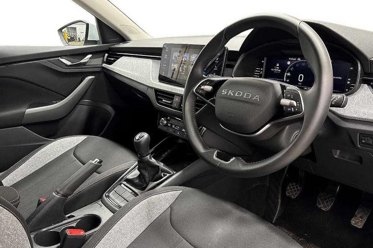 Advanced driver attention and drowsiness monitor, Bluetooth, e-Call (emergency call), Front assist system, PAS, Rear parking sensors, Rear view camera, Speed limiter, Tailgate, Traffic sign recognition, Virtual Cockpit - 10.25" digital display, Voice control system, Wireless smartlink, 4 USB C ports, 8 Speakers, 9.2" Skoda navigation display, DAB radio, Auto dimming rear view mirror, Automatic headlamp activation with Coming home and Leaving home feature, Automatic high/low beam, Body colour bumpers, Body colour door mirrors and handles, Chrome moulding around grille, Front and rear electric windows, Full LED headlights, Heated rear window, LED 3rd brake light, LED brake lights, LED daytime running lights, LED front turning lights, LED high beam, LED low beam, LED taillights, Rear LED fog light, Rear side wing doors, Rear wiper, Tinted windows, Unique dark chrome design logo on alloy wheels, 12V socket in luggage compartment, 3 seat bench in 2nd row, Black / Grey armrest stitching, Black hotstamping, Cargo elements, Chrome inner door handles, Door inserts in satin black, Driver and passenger sun visors with vanity mirror, Dual zone climate control, Front and rear roof lights, Front centre armrest, Front head restraints, Glasses storage in roof liner, Height adjustable driver seat, Height adjustable passenger seat, Ice scraper, Illuminated glove compartment, Inner circulation control with pollen filter, ISOFIX for front passenger seat, Isofix preparation for back seats, Leather gearknob and handbrake lever, Loft cloth upholstery, Luggage net under rear parcel shelf, Manual lumbar support for front seats, Net package and top tether hooks in boot space, Pearl grey ceiling, Pocket on the back of both front seats, incl. mobile phone pockets, Single front passenger seat, Skoda lettering on steering wheel, Textile floor mats, Third rear headrest, Ticket holder, Top tether for front passenger seat, Umbrella in driver's door, 3x3 point rear seatbelts, ABS, Child locks, Curtain airbags and front side airbags, Disc brakes, Driver and front passenger airbags, ESP, Hill hold control, Manual leather parking brake, One tone horn, Passenger airbag switch off function, Seatbelt reminder for driver and front passenger, Tyre pressure monitoring system, Anti theft alarm system with interior monitoring, backup horn and towing protection, Anti-theft wheel bolts, Remote central locking with 2 remote folding keys, SAFE function for remote central locking, Decord pad, door inserts Kota uni,