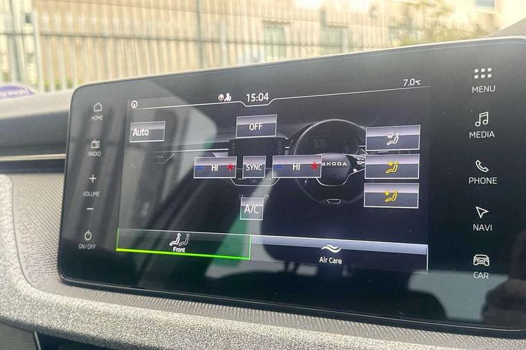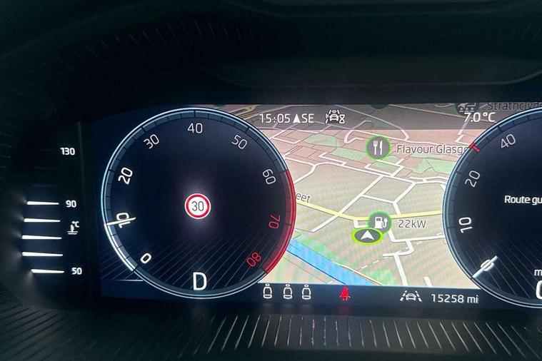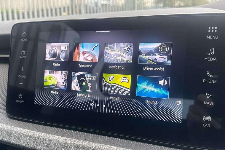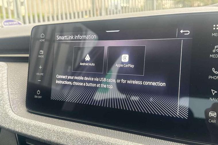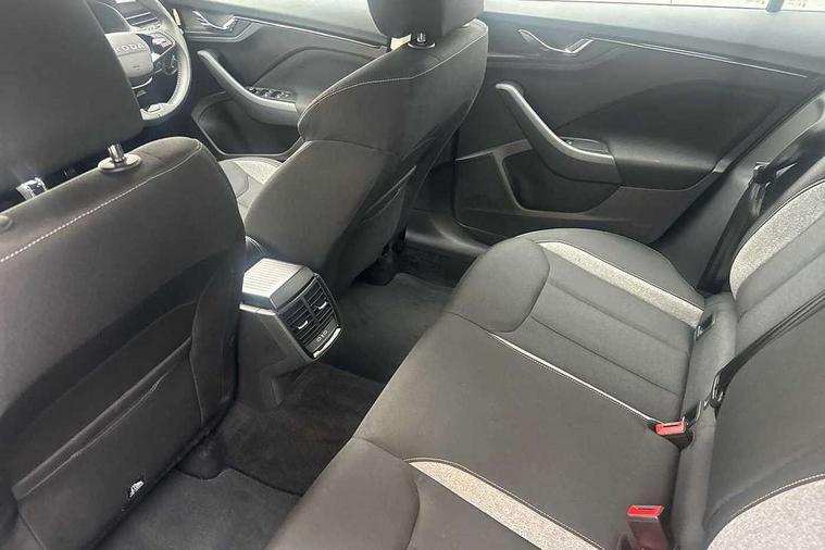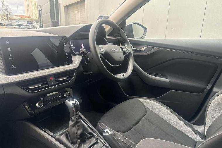 Advanced driver attention and drowsiness monitor, Bluetooth, e-Call (emergency call), Front assist system, PAS, Rear parking sensors, Rear view camera, Speed limiter, Tailgate, Traffic sign recognition, Virtual Cockpit - 10.25" digital display, Voice control system, Wireless smartlink, 4 USB C ports, 8 Speakers, 9.2" Skoda navigation display, DAB radio, Auto dimming rear view mirror, Automatic headlamp activation with Coming home and Leaving home feature, Automatic high/low beam, Body colour bumpers, Body colour door mirrors and handles, Chrome moulding around grille, Front and rear electric windows, Full LED headlights, Heated rear window, LED 3rd brake light, LED brake lights, LED daytime running lights, LED front turning lights, LED high beam, LED low beam, LED taillights, Rear LED fog light, Rear side wing doors, Rear wiper, Tinted windows, Unique dark chrome design logo on alloy wheels, 12V socket in luggage compartment, 3 seat bench in 2nd row, Black / Grey armrest stitching, Black hotstamping, Cargo elements, Chrome inner door handles, Door inserts in satin black, Driver and passenger sun visors with vanity mirror, Dual zone climate control, Front and rear roof lights, Front centre armrest, Front head restraints, Glasses storage in roof liner, Height adjustable driver seat, Height adjustable passenger seat, Ice scraper, Illuminated glove compartment, Inner circulation control with pollen filter, ISOFIX for front passenger seat, Isofix preparation for back seats, Leather gearknob and handbrake lever, Loft cloth upholstery, Luggage net under rear parcel shelf, Manual lumbar support for front seats, Net package and top tether hooks in boot space, Pearl grey ceiling, Pocket on the back of both front seats, incl. mobile phone pockets, Single front passenger seat, Skoda lettering on steering wheel, Textile floor mats, Third rear headrest, Ticket holder, Top tether for front passenger seat, Umbrella in driver's door, 3x3 point rear seatbelts, ABS, Child locks, Curtain airbags and front side airbags, Disc brakes, Driver and front passenger airbags, ESP, Hill hold control, Manual leather parking brake, One tone horn, Passenger airbag switch off function, Seatbelt reminder for driver and front passenger, Tyre pressure monitoring system, Anti theft alarm system with interior monitoring, backup horn and towing protection, Anti-theft wheel bolts, Remote central locking with 2 remote folding keys, SAFE function for remote central locking, Decord pad, door inserts Kota uni,