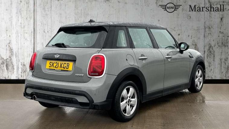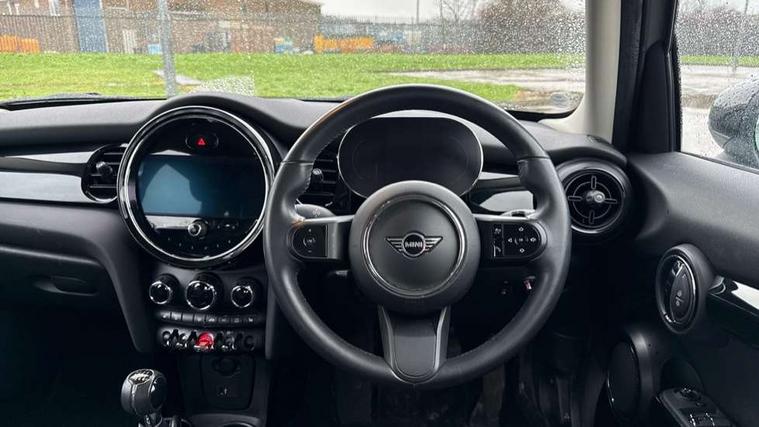 Automatic start/stop function with brake energy recuperation, Compatible mobile phone bluetooth with audio streaming, Electro-mechanical speed dependant steering assistance, Flexible car sharing preparation, Instrument cluster, Mini E-call, MINI TeleServices, On board computer, Service interval indicator, 6 Speed manual transmission including gear change indicator display, Double Vanos system, Fully variable valve control, High precision injection, Performance Control, 8.8" touchscreen with LED ring, FM tuner and DAB digital radio, Automatic headlight activation switch, Body colour fuel filler cap, Chrome border high gloss black slats radiator grille, Dynamic brake lights, Electric front+rear windows, Exhaust tailpipe on left with chrome finisher, Heated rear window, Heated windscreen washer jets, LED headlight with closed ring and daytime driving lights, Metal door sill strips with MINI imprint, Model logo Cooper on right of tailgate, Rain sensor window wipers, Rear fog lights, Rear LED lights with union jack design, Rear window wiper, Side scuttle panel with integrated indicator, Sun/heat protection glass, White indicator lenses, 12V Accessory socket in centre console, 4 lashing eyes in luggage compartment, 60/40 split folding rear seat, Carbon black colour line - Knee roll and door armrest, Chrome interior highlights, Cupholders, Front and rear head restraints, Front and rear isofix with front passenger airbag deactivation, Glove compartment, Height and length steering column adjustment, Interior lighting with 12 different colours across the dashboard, underneath door bezel with illuminated laser-engraved design on central display, Leatherette gearshift lever and handbrake gaiters, LED reading lights, vanity mirror lights, front foot well light and spotlight on front seats, Manual air conditioning, Mechanical seat adjustment - forward/back & backrest for front seats and driver seat height adjust, Multifunction steering wheel, Satellite grey headlining including grab handles and clothes hooks, Sport leather steering wheel with speed limiter and audio/communication controls, Storage compartments in doors, Sunvisors with vanity mirrors, Velour floor mats, 3 point seatbelts on all five seats, 6 Airbags - front, side, head and seat belt tensioners, Anti-lock braking system (ABS), DSC - Dynamic Stability Control, Front and rear disc brakes, Hill start assist, Single tone fanfare horn, Tyre pressure monitoring system, Alarm system with tilt sensor, monitoring doors, bonnet interior and tailgate, Electronic vehicle immobiliser, Start/stop toggle with keyless go, Piano black interior trim, Tool kit, Tyre repair kit,