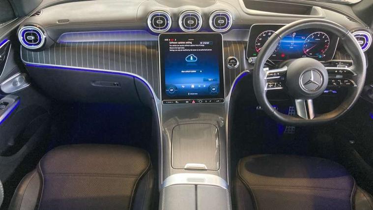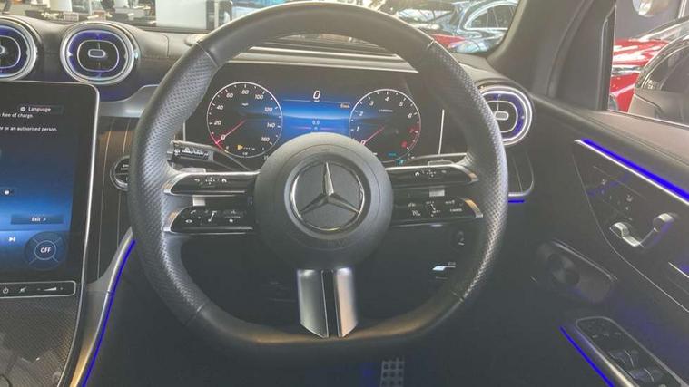 11.9" high resolution multimedia colour display, 12.3" Digital individually configurable instrument display, Acoustic presence indicator, Active lane keeping assist, Attention assist, Bluetooth interface for hands free telephone, Collision prevention assist plus, Direct steer speed sensitive steering, DYNAMIC SELECT with a choice of driving modes (ECO, Comfort, Sport and Individual), eCall emergency call system, ECO start/stop function, Fingerprint scanner, Fluorescent jacket for driver, Hard disc navigation, Head up Display, Instrument display in miles with English lettering, MBUX navigation premium, MBUX voice control activated by keywords "Hey Mercedes", Mercedes me connect, Multi function trip computer, Outside temperature display, Remote boot release, Remote services plus, Road sign recognition system, Service indicator (ASSYST), Smartphone integration, Status display for rear seat belts in instrument cluster, Tailgate, Traffic sign assist, Wireless charging system for mobile devices in the front, 48V Mild hybrid technology, 4MATIC permanent four wheel drive, 62 litre fuel tank, 9G TRONIC plus automatic transmission, Petrol Particulate Filter (PPF), Residual engine heat utilisation, Burmester 3D surround sound system, DAB digital radio tuner, MBUX extended functions, Pre installation for Mercedes Benz Link, Sound personalisation, Adaptive brake lights, Adaptive high beam assist plus, Aluminium look running boards with rubber studs, Aluminium roof rails, AMG bodystyling front apron, rear apron and side skirts, AMG Line exterior, Auto headlights, Body colour bumpers, Body colour door mirrors, Digital light LED headlights, Electric panoramic glass sunroof, Electrically adjustable door mirrors, Front and rear electric windows, Headlight washers, Heat and noise insulating acoustic glass, Heat insulating dark tinted glass, Heated rear window, High level LED brake light, Integrated LED daytime running lights, LED indicator lights, LED rear fog lights, LED tail lamp, Motor way mode function and locator lighting, Radiator grille with Mercedes Benz pattern and integreated Mercedes star and louvre in dark grey matt with chrome inlay and black frame, Rain sensor windscreen wipers, Range adjustable headlights, Rear side wing doors, Rear wiper, Transparent Bonnet, Two chrome plated tailpipe trim elements, Variable front intermittent wipers, Welcome and follow-me home light functionality, Wheel arch liners in the vehicle colour, 3 seat bench in 2nd row, 40:20:40 split folding rear seats, Air balance package, Ambient lighting premium, AMG floor mats, AMG line interior, Artico man-made leather upholstery, Audio and onboard settings control on multifunction steering wheel, Automatic child seat recognition sensor, Black fabric roof lining, Comfort seats, Double cup holder in centre console, Easy-pack removable load compartment cover, Electrically height/reach adjustable steering column, Front centre armrest with stowage compartment, Front head restraints, Galvanised steering wheel gearshift paddles, Heated steering wheel, Illuminated door sill panels with Mercedes Benz lettering, Illuminated glove compartment, Instrument panel and beltlines in ARTICO manmade leather in nappa look, Multifunction sports steering wheel in nappa leather, Partition net, Rear centre headrest, Rear head restraints, Rear top tether child seat ISOFIX attachment, Single front passenger seat, Sports pedals with stainless steel surfaces and rubber studs, Sun visors, THERMATIC 2 zone automatic climate control, Anti theft protection package - GLC, Boot comfort package - GLC, Energizing plus pack - GLC Coupe, Exterior chrome package - GLC, Interior chrome package - GLC, Interior lighting pack - GLC, Keyless-Go comfort package - GLC, Memory pack - GLC, Mirror pack - GLC, Parking package with 360 degree camera - GLC, Stowage space package - GLC, USB Plus Pack - GLC, 3 rear 3 point seatbelts, Anti-lock braking system (ABS), ASR traction control, Automatic front passenger airbag deactivation, Black seat belts, Brake calipers with Mercedes-Benz lettering + perforated brake discs, Braking system with larger brake discs on the front axle, Child proof door locks, Dual-stage airbags - driver and front passenger, driver knee bag and window bags for driver, front passenger and rear passengers, Electronic parking brake, Electronic stability programme (ESP) with curve dynamic assist and cross wind assist, Front and rear seatbelt reminder, Front passenger seat occupancy sensor, Front seatbelt pretensioners, Hill start assist, Tyre pressure monitoring system, Warning triangle and first aid kit, Automatic door locking, Guard 360 degree vehicle protection plus, Interior protection/immobiliser, Remote central locking, Black open pore aluminium lines wood trim with centre console in metal structure finish, 20" AMG multi spoke light alloy wheels in painted black with high sheen finish, Summer tyres, TIREFIT with tyre inflation compressor,