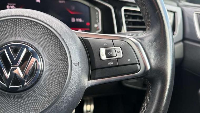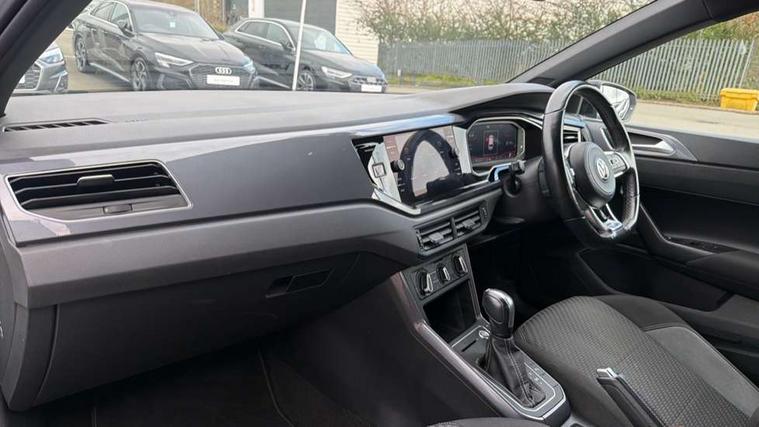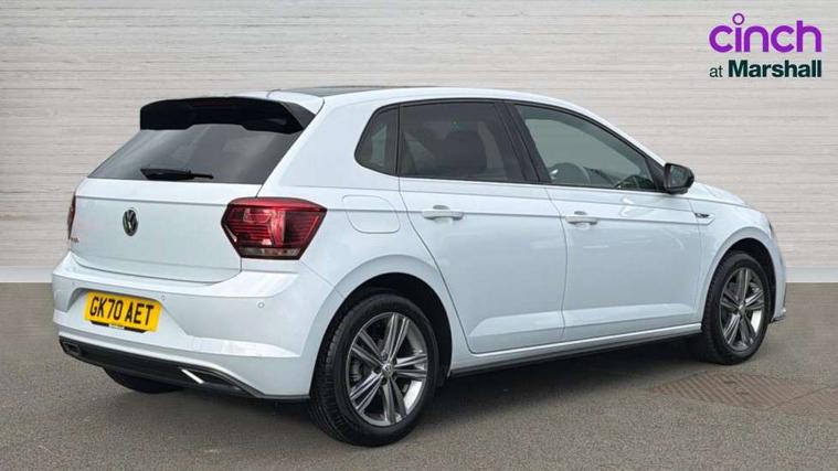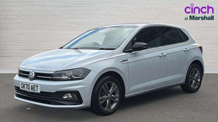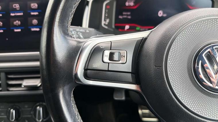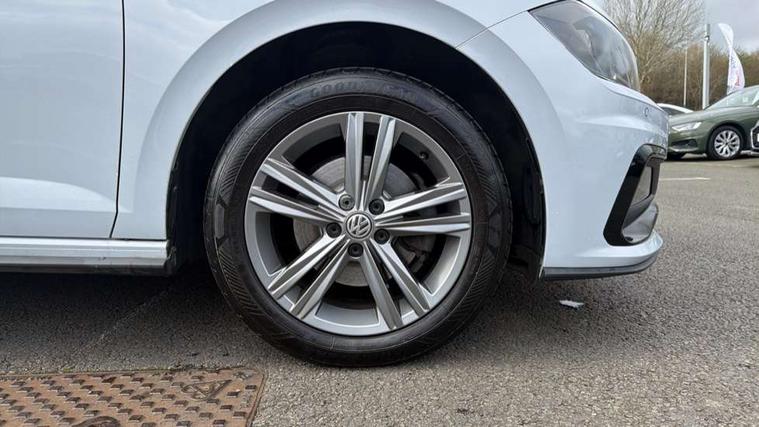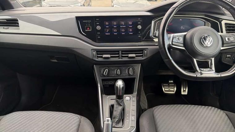 App-Connect, Digital clock, Driver alert system, Lights on warning, Multifunction computer plus, Power assisted speed sensitive steering, Speedo and rev counter, electronic odometer, trip, service interval display and fuel gauge, Start/stop system, Volkswagen connect, Warning buzzer and light for front seatbelts unfastened, Battery regeneration during braking, Galvanished body, Black grille with chrome surround, Body colour door handles, Body coloured side sills, Chrome trimmed strip on lower bumper, Electric front windows, Electrically foldable, adjustable and heated door mirrors with reverse activated kerb view adjustment on passenger's side, Front fog lights including static cornering, Front windscreen washers and wipers with 4 speed intermittent delay, Heat insulating tinted glass, Heated rear window with auto timer, High level 3rd brake light, LED darkened rear light clusters, LED daytime running lights, LED rear number plate lights, Left and right chrome effect trapezoid fascia exhaust tailpipe surrounds, Rear diffuser, Rear electric windows, Rear windscreen washer and wiper with interval delay, reverse activated, Unique R Line badging, 2 bag hooks in luggage compartment, 2 front cupholders and 12 V socket with cover, 3 rear head restraints, 60/40 split folding rear seat, Ambient lighting in front foorwell, front/rear door and dashboard light strips, Carbon flag cloth upholstery, Centre console storage with open storage compartment, Chrome-plated electric mirror adjustment switch surround, Chrome-plated electric window button surround, Driver and front passenger seat height adjustment, Driver and front passenger sunvisors with illuminated vanity mirrors, Dust/pollen filter, Folding rear seat backrest, Front + rear carpet mats, Front centre armrest with storage compartment, Front head restraints, Front seat backrest storage pockets, Front sport seats with lumbar adjustment and R line logo on seat backrest, Gear change selection via paddle shift on steering wheel, Gear lever gaiter in black trim surround, Glovebox, Handbrake grip button in chrome effect, Height/reach adjustable steering column, Instrument lighting, adjustable panel illumination, Interior light with delay, Isofix Preparation 2 Rear child seats, Jack and tool kit, Leather gear knob and handbrake grip, LED interior lighting - 2 reading lights front and rear with interior delay and dimming function, Luggage compartment cover, removable, Luggage compartment lighting, Luggage compartment with variable load floor, Stainless steel pedals, Storage compartment in front doors, Storage compartment in rear doors, Storage compartment under front seats, Three spoke leather trimmed multifunction steering wheel with aluminium inserts and R Line Logo, Titanium black roof lining and sun visors, Unique R Line door sill protectors, Light and sight pack - Polo, R Line styling pack - Polo, 3 point height adj front seatbelts + pretensioners, 3x3 point rear seatbelts, ABS, Automatic post collision braking, Driver/front passenger airbag, Drivers and front passengers safety optimised head restraints, ESP with EDL + ASR, Front and rear passenger curtain airbags, Front passenger airbag deactivation, Front seat side impact airbags, Front/rear disc brakes, Hill hold control, Hydraulic Brake Assist (HBA), Single tone horn, Tyre pressure monitoring system, Alarm with interior protection and deactivation via infotainment system, Electronic engine immobiliser, Remote central locking with 2 remote folding keys, Chrome plated air vent surround, Chrome plated instrument surrounds, Shadow steel decorative inserts, Steel space saver spare wheel,
