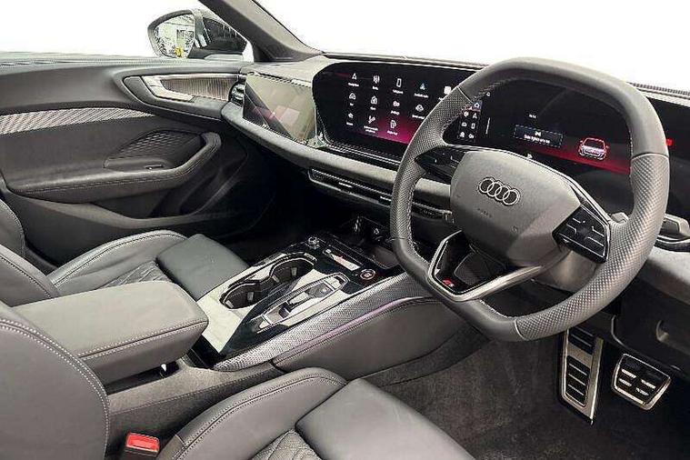 Adaptive cruise assist plus with steering intervention, Advanced driver attention and fatigue montior, Audi application store, Audi assistant, Audi connect emergency call and service, Audi drive select, Audi smartphone interface, Audi virtual cockpit plus with 11.9" OLED colour display, Automatic start/stop system with coasting functionality, Camera based traffic sign recognition, Garage door opener, Intersection assist, Lane change assistant with exit warning system, rear cross traffic alert and rear turn assist, Lane departure warning with emergency assist, MMI 10.9" front passenger touch display, MMI navigation plus with high resolution 14.5" OLED touchscreen colour display, Park assist plus, Parking system plus with 360 display, Progressive steering with servotronic, Swerve assist and turn assist, Top view camera, Traffic sign based speed limiter, Quattro with sport differential, S sports suspension with damper control lowered by 20mm, 2 USB-C ports in both the front and rear, DAB digital radio reception, Smartphone compartment with wireless charging, Aluminium window trims, Auto dimming rear view mirror, Black door handles, Dark chrome-plated tailpipe trims, Digital OLED tail lights including communication light, Door mirrors - electrically adjustable, heated, folding and auto dimming on both sides, Front and rear electric windows, Front door sill trims with aluminium inlays, illuminated with 'S' logo, Headlight cleaning system, High beam assist, LED daytime running lights, LED third brake light, Matrix LED headlights with eight light signatures selectable via the MMI or the myAudi app, Panoramic glass roof with switchable transparency, Privacy glass, Rear and side windows with heat insulating glass, Rear boot, Rear side wing doors, Red S rhombus badging with S lettering on rear, S bumpers, radiator grille and diffuser in titanium matt black and diffuser insert in matt silver, White rhombus logo projection light in exterior mirrors, Windscreen with acoustic glazing, 3 rear headrests, 3 seat rear bench, 3 spoke leather steering wheel with multi-function buttons with touch control, flattened on top and bottom, with S badging and contrast stitching, 3-zone automatic climate control, 40:20:40 split folding rear seat bench with centre armrest and cup holders, Comfort front centre armrest, Electric steering wheel adjustment, Electrically adjustable front seats, Front and rear floor mats, Front sport seats plus with integrated headrest and S embossed logo, Headlining in black cloth, Heated front and outer rear seats, Heated steering wheel, i-Size child seat mounting on the front passenger side and outer rear seats, i-Size and top tether on the outer rear seats, Luggage compartment lid, electrically opening and closing, Memory function for driver seat, Pearl Nappa leather upholstery, Pneumatically adjustable lumbar support, Single front passenger seat, Stainless steel pedals and footrest, Steering wheel grips in perforated leather and shift paddles, Ventilation seat and massage function for the driver and front passenger, Black styling package plus - A5, Sound and vision pack - A5, 3x3 point rear seat belts, Acoustic vehicle alerting system, Convenience key with safelock, Driver airbag, Electric child safety locks, First aid kit with warning triangle and vests, Front emergency brake assist, Front passenger airbag, Front passenger airbag deactivation, Hill hold assist, Occupant detection in rear seat area, Proactive passenger protection system for front, sides and rear, Red brake calipers, Seat belt monitoring with rear seat occupant reminder, Side airbags in front and rear with head airbag system and front interaction airbag, Tyre pressure loss indicator, Anti theft alarm, Anti-theft wheel bolts, Keyless Go, Accent surfaces and control buttons in gloss black, Black dashboard with contrast stitching, Softwrap in Dinamica with contrast stitching, Upper and lower interior elements in dinamica microfiber, 20" 5 twin spoke design Audi Sport alloy wheels in metallic black and gloss turned finish, Tyre repair kit,
