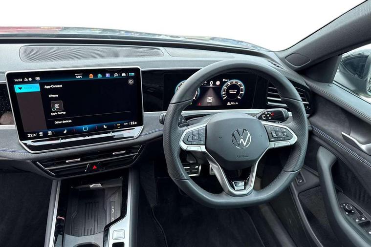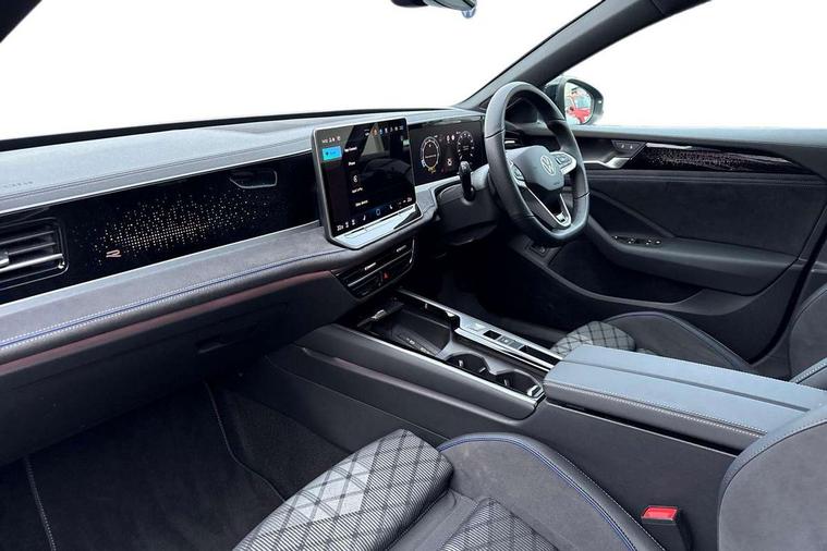 2 x Front USB-C ports, 2 x USB-C charging sockets on the centre console in the rear, charging capacity up to 45W, Adaptive cruise control, Advanced driver attention and drowsiness monitor, Digital cockpit pro 10.25" high resolution, Discover media navigation system includes streaming and internet, Dynamic road sign display, E-Sim card for online connectivity, eCall emergency call service, Full electric tailgate operation, Inductive smartphone charging without external antenna connection, Memory feature for park assist, Oncoming vehicle braking when turning including swerve support, Park assist with park distance control, Predictive speed limiter, Preparation for We connect and We connect plus, Progressive steering, Wireless app connect, Adaptive chassis control DCC pro includes driving mode selection, Front wheel drive, Petrol Particulate Filter, Rear shock absorbers, Rear shock absorption for sports version, Shock absorption in front, Auto dimming interior rear view mirror, Automatic headlights, Body colour bumpers, Body colour door handles, Heat insulating glass in side and rear windows, Heated windscreen + washer jets, LED third brake light, Rain sensor, Rear side wing doors, Rear wiper, Welcome light with surround lighting, 3 seat bench in 2nd row, 3 zone air care climatronic with rear air conditioning control panel, 30 colours options interior ambient lighting, Brushed stainless steel pedals, Front + rear carpet mats, Front head restraints, Front sports seats, Isofix child seat preparation, easy-fit (for two outer rear seats, and front passenger seat), compatible with I-size, Luggage comaprtment cover, power operated, Single front passenger seat, Standard pedal cluster, Sun visors with illuminated vanity mirrors for driver and front passenger, Sunblind for rear side windows, Three rear head restraints, Unsplit rear seat bench, split folding backrest, with centre armrest, Acoustics pack - Passat, LED High matrix headlamps pack - Passat, 3x3 point rear seat belts, ABS (Anti locking brake system) includes BAS (Brake assist) and EBD (Electronic brake pressure distribution), Autonomous emergency braking front assist with pedestrian and cyclist monitoring, Curtain and side airbags in front with centre airbag, Disc brakes in front, Driver/Front Passenger airbags, Drivers knee airbag, Electronic parking brake with auto hold, ESC (Electronic stability control) + EDL (Electronic Differential lock) and ASR (Traction control), EDTC (Engine drag torque control), Extended safety system with proactive passenger protection system, Front passenger airbag deactivation switch, Hill hold function, Tyre pressure loss indicator, Warning triangle and first aid kit, Alarm with interior protection, Keyless locking and starting system keyless access with safelock, Tool kit for tyre mobility set, Trims for alloy wheels,