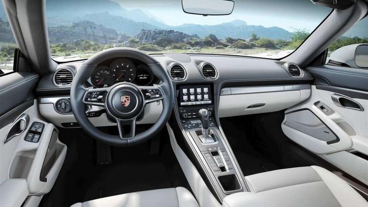 Auto start and stop system, Digital displays for vehicle speed, chosen gear, odometer, trip odometer and clock, Instrument cluster with central rev counter and high-resolution 4.6 inch colour display, Porsche Communication Management (PCM) including online navigation module, mobile phone preparation, audio interfaces and voice control system, 3-way catalytic converters and on-board diagnostics for monitoring emission control system and coated particulate filter, 4 valves per cylinder, 6 speed manual transmission with dual mass flywheel, Aluminium block and cylinder heads, Direct fuel injection (DFI), Gasoline particulate filter, Integrated dry-sump lubrication with an on-demand oil pump, Porsche Stability Management (PSM) with ABS, advanced brake functions, Rear wheel drive, Turbocharger with intercooler, Two seater vehicle with mid mounted engine, VarioCam Plus variable valve timing and switchable valve lift, Water cooled with thermal management, DAB Digital radio, Integrated 4G/LTE compatible SIM including data for the Porsche Connect Services, Integrated compatible SIM including Porsche Connect Services, Navigation incl porsche + Apple Carplay, connect module, wireless internet access, carfinder, remote vehicle status, remote service and vehicle track, Wifi and music streaming, Auto deploying rear wing, Automatic headlight activation including welcome home lighting, Automatically extending rear boot spoiler, Body colour bumpers, Body colour door handles, Electrically adjustable heated exterior mirrors on door waist rails, aspherical on driver's side, Fully automatic fabric hood, electrically operated/heatable rigid glass rear screen, operable approx 31 mph and convenient operation by key remote, Green tinted heat insulating glass, Grey top tinted windscreen, Heated rear windscreen, Intelligent lightweight body in Aluminium/Steel composite construction, Net wind deflector, Power windows with one touch operation and door seal protection, Separate auxiliary lights in the front end with LED indicators and position lights, Twin tract exhaust system with central tailpipe in stainless steel, Windscreen washer system with two wiper speeds and washer jets, 12V sockets in passenger footwell and centre console storage compartment, 718 logo on gear lever, Adjustable fan with air recirculation and defroster functions, Ascending centre console with uncovered storage compartment and closed storage compartment, Clothes hooks on front seat backrests, Footwell illumination, Front and rear luggage compartments, Front headrests, Heated seats, Hood lining in black fabric, LED reading lights, orientation, ignition lock, additionally luggage compartment and glove compartment lighting, Lockable glovebox, Seat centres in race tex, side bolsters and headrests in leather, Smooth finish leather on steering wheel rim, gear lever and door handles, Storage compartments in each doors, Two individual cup holders (Passenger side, integrated into dashboard trim strip), 3 point automatic seatbelts, ASR, Electrically controlled parking brake, Front and rear lightweight spring strut axle, Front seatbelt pretensioners + load limiters, Full size driver and passenger airbags, Passenger airbag deactivate switch, Porsche side impact protection doors with thorax airbag in outer backrest side bolster and head airbag for driver/passenger in door panel, Tyre pressure monitoring system, Alarm system with interior surveillance, Anti-theft wheel bolts, Engine immobiliser with in key transponder, central locking and remote control,