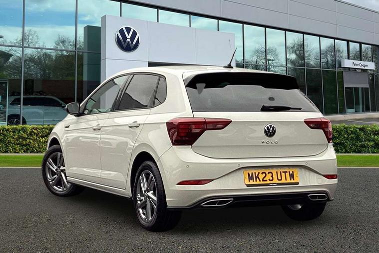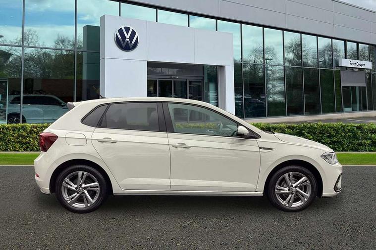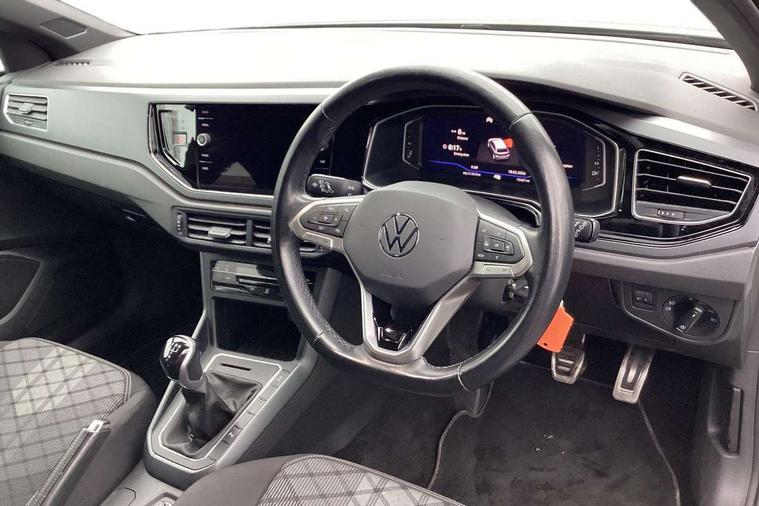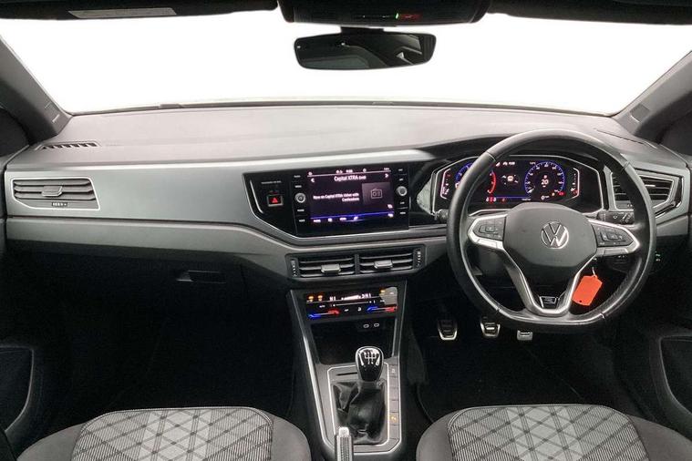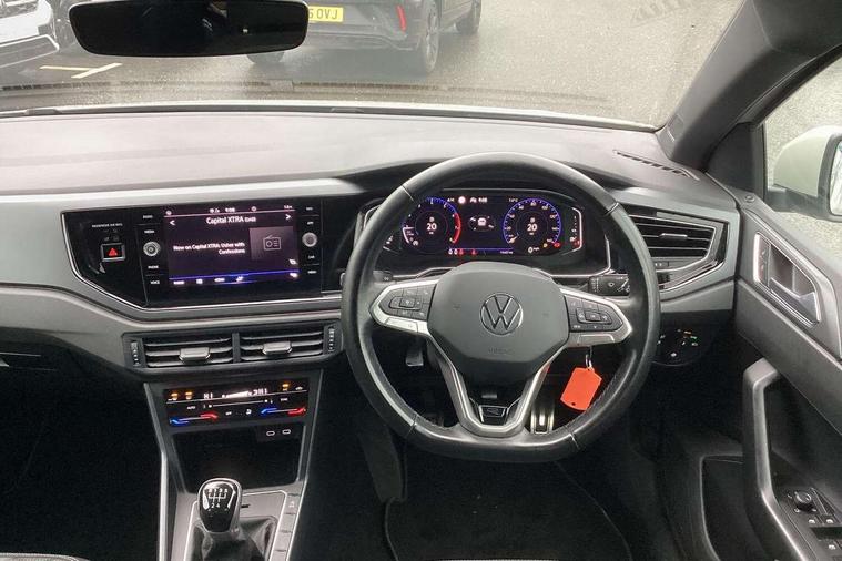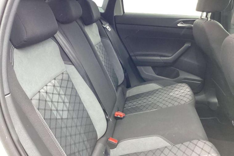 Adaptive cruise control without follow-to-stop and speed limiter, Bluetooth mobile phone interface, Digital Cockpit Pro with 10.25" Display, Driver alert system, Dynamic road sign display, Emergency call service, Power assisted speed sensitive steering, Preparation for We connect and We connect plus, Speedo and rev counter, electronic odometer, trip, service interval display and fuel gauge, Standard rear axle, Travel Assist - Lane keeping system and traffic jam assist, Travel assist including emergency assist, Trip computer, Warning signal and warning light for front and rear seatbelts not fastened, Washer fluid level indicator, Wireless app connect, Front wheel drive, Rear shock absorpion, Start-stop system with battery regeneration (recuperation - energy recovery during braking), DAB Digital radio, Diversity antenna for FM reception, Front and rear 6 speakers, Body colour bumpers, Body colour door handles, Electric front windows, Front scuff plates with R-Line logo, Heat insulating darkened glass in side and rear windows, Heat insulating glass windscreen, Power folding adjustable/heated exterior mirrors and front passenger exterior mirror lowering function, Rear electric windows, Rear fog light, Rear side wing doors, Rear windscreen washer and wiper with interval delay, Third brake light, 12V power socket in centre console, 2 USB-C ports in the front, 2 USB-C charging sockets on the center console in the rear, 3 rear head restraints, 60/40 split folding rear seat and rear seat bench not split, Air care climatronic air conditoning system with active combination filter and 2-zone temperature control, Black roof lining, Chrome plated radiator grille inserts, air vent surrounds and light switch surrounds, Door and side trim panel, Driver and front passenger seat height adjustment, Driver/passenger sunvisors with illuminated vanity mirrors, Front + rear carpet mats in recycled material, Front centre armrest, Front footwell illumination, Front seat backrest storage pockets, Front sports comfort seats, Handbrake lever handle in leather, Headliner in recycled material, Isofix child seat preparation easy-fit (for two outer rear seats, and front passenger seat) compatible with I-size, Karoso artvelours cloth upholstery, Leather trimmed gear knob, LED interior light with switch off delay and dimmer, 2 reading lights front and rear, Luggage compartment cover, Luggage compartment floor, Luggage compartment lighting, Lumbar adjustment for front seats, Multifunction steering wheel, Single front passenger seat, Stainless steel pedals, Standard pedal cluster, Light and sight pack - Polo R-Line/Black Edition, 3 point height adj front seatbelts + pretensioners, 3x3 point rear seatbelts, ABS, Driver and front passenger airbag with front passenger airbag deactivation, Drivers and front passengers safety optimised head restraints, ESC (Electronic stability control) + EDL (Electronic Differntial lock) and ASR (Traction control), Extended and predictive pedestrian/ cyclist protection, Front curtain and side airbags with center airbag, Hill hold control, Manual child lock in rear doors, Single tone horn, Tyre pressure loss indicator, Alarm with interior protection, Anti-theft alarm system with interior monitoring, backup horn, and towing protection, Anti-theft wheel bolts, Electronic engine immobiliser, Chrome applications on rotary light, mirror adjustment, window regulator switches, outlet with frame in black, Dark grey anodised matt decorative inserts in dash and front door panels, Low rolling resistance tyres,