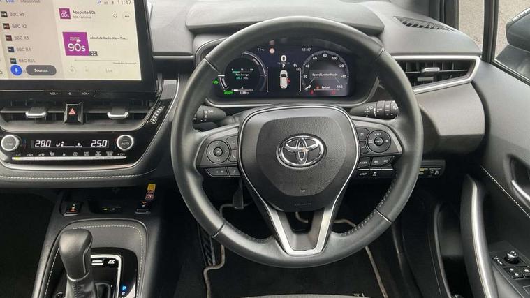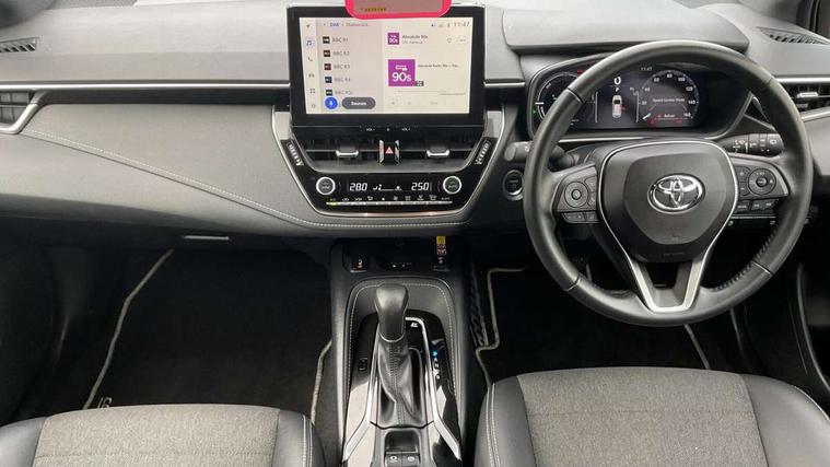 10.5" Multimedia display screen, 12.3" multi information screen, Adjustable speed limiter, Bluetooth telephone connectivity, Colour multi information display with 3D, Connected car functionality upgrade, tracker, remote status and e-care, Drive mode select (Eco, Normal), E-call, Electrically assisted power steering, EV drive indicator, Front and rear parking sensors, Full Digital 12.3" TFT Digital Combimeter, Gear position indicator with meter, Hybrid system indicator, Intelligent parking assist, Key reminder warning, Lane Departure Alert (LDA) switch on steering wheel, Lane departure alert - LDA, Memory on adjustable speed limiter, MyT connected services, Proactive driving assist (PDA), Reversing camera, Smart entry and push button start, Smartphone integration with Apple CarPlay and wired android auto, Speedometer, Toyota remote services, Toyota smart connect multimedia system, Toyota smart connect navigation, Wireless charger, Catalytic converter, Double wishbone rear suspension, Electric accelerator pedal, Front and rear stabilizers, Front differential 2.834, Gasoline particulate filter, MacPherson front suspension, Vehicle Stability Control (VSC), 6 speakers, DAB Digital radio, Smart voice assist/ Voice recognition, USB connector, 20% privacy rear side and quarter glass, A - Pillar garnish, Adaptive automatic high beam system (AHS), Aluminium roof rails, Anti-jam protection on power windows, Auto dimming rear view mirror, Auto headlights, Auto up and down function on all power windows, Automatic folding mirrors, B - Pillar in Black, Black door moulding, Black metallic meshed front grille, Black side air vents, Black toyota logo in front, Body colour rear roof spoiler, Body coloured door mirrors, Body coloured front spoiler, Body coloured outside door handles, Body coloured rear bumpers, Electrochromatic mirror, Ethanol washer fluid, Follow me home headlights, Front and rear fender high liner, Front bumper, Fuel caution label, Gloss black diffuser, Gloss black upper front grille, Height memory opening on power tailgate, LED daytime running lights, LED dual beam projector headlights, LED front fog lights, LED High mounted stop light, LED rear combi lights with LED lightguide, Light remind warning with auto cut off, Lower back and back door plated garnish, Manual headlight levelling system, New grille pattern, Noise reduction layer on front windows, Noise reduction layer on windscreen, Paint protective wrap guard, Power adjustable heated door mirrors, Power front windows, Power rear windows, Power tailgate with kick sensor, Rain sensing wipers, Rear bumper decoration with chrome plated inserts, Rear privacy windows, Rear side wing doors, Rear under guard with chrome ornament, Rear window defogger, Rear window wiper, Remote tailgate release on key, Reverse tilting door mirrors, RHD aimed headlight levelling system, Satin chrome insert on front door assist grips, Satin chrome inserts on rear passenger air vents, Satin chrome surround on lower front grille, Shark fin antenna, Single exhaust tailpipe, Tailgate release with push button, Tailgate remote release in cabin, Time adjustment on intermittent wiper, Turning signal integrated indicators in door mirrors, Unique lower skirt, UV-filter on driver and passenger windows, 12v power outlet - front, 12v power outlet - luggage side, 2 Shopping bag hooks in luggage compartment, 3 rear height adjustable headrests, 3 seat bench in 2nd row, 3 spoke steering wheel with satin insert, 4 tie down hooks in luggage compartment, 60/40 split folding rear seat, Adaptive cruise control (ACC) switch on steering wheel, Adjustable speed limiter switch on steering wheel, Aluminium door scuff plates with corolla batch, Audio, multi-info and telephone switches on steering wheel, Automatic light control system, Black armrest on centre console box, Black out with door sash and wheel house, Boot underfloor storage, Center console cover, Clean air filter, Driver and front passenger personal light, Driver and passenger sun visor with mirror and light, Dual level deckboard, Dual mike in roof, Dual sided boot floor, Dual zone automatic air conditioning with ECO mode switch, Electric lumbar support for passenger, Fabric upholstery, Forward tilting 2nd row seats, Front and rear bottle holders, Front and rear door pockets, Front console box with stitching, Front floor mats, Front head restraints, Front overhead assist grips, Front passenger seat, Front sliding synthetic leather armrest, Gear knob, Gloss black gear shift console, Heated front seats, Illuminated entry system in room lamp, ISOFIX child restraint system, Leather gear shift with satin chrome on gear shift console, LED boot light, Manual height adjustable for driver and front passenger seat, Manual tilt and telescopic steering wheel, Manually sliding driver seat, Manually sliding front passenger seat, Matt black front door assist grip, Nanoe-X air purifier, Passenger seat back pocket, Pollen filter, Power adjustable lumbar support on driver seat, Power window switches with satin chrome inserts, PVC door armrest, Rear air vents, Rear armrest with 2 cupholders, Rear fabric floor mats, Rear overhead assist grips, Rear passenger coat hooks (2), Rear passenger personal lights, Refrigerant correspondent hf01234f, Regulation compliancy wvta label +, Remote air conditioning, Remote controlled Toyota easy flat system, Retractable tonneau cover with luggage partition net, Satin chrome inserts on centre air vents, Satin chrome inside door handles, Satin chrome surround on heater control panel, Satin chrome surround on multimedia, Satin chrome surround on speedometer, Side storage in boot, Slow opening glovebox with lights, Soft touch front and rear door trim, USB charger front, Voice recognition switch on steering wheel, Whiplash Injury Lessening (WIL) feature (active headrest) for seats, White ambient lighting on open tray and front cup holder, Toyota safety sense 3 pack - Corolla, 15" Front brakes, 3x3 point rear seatbe