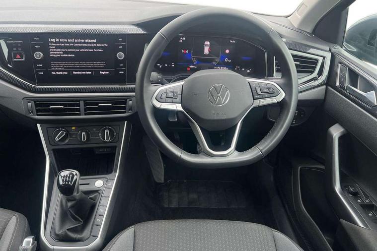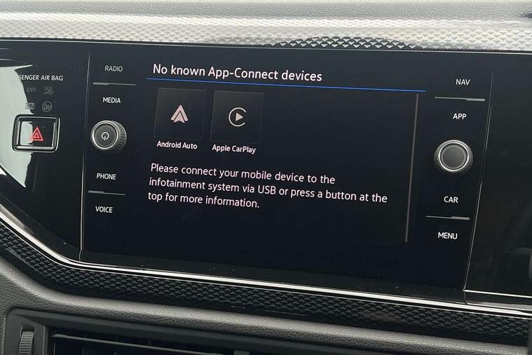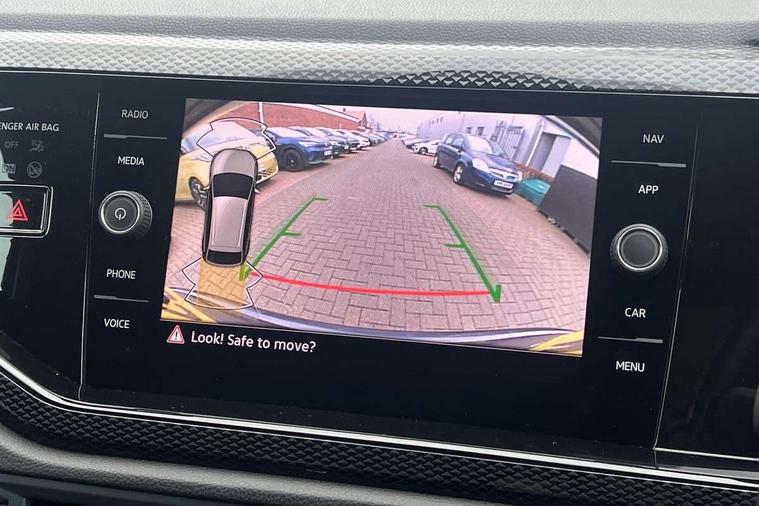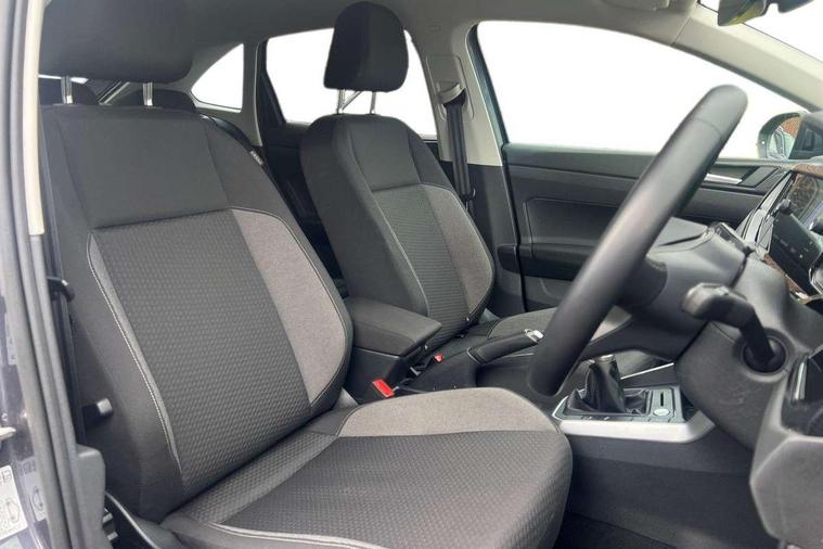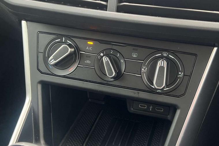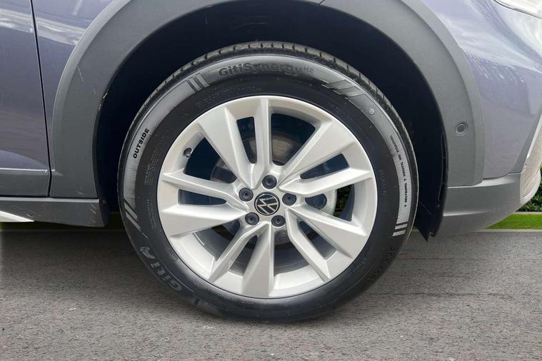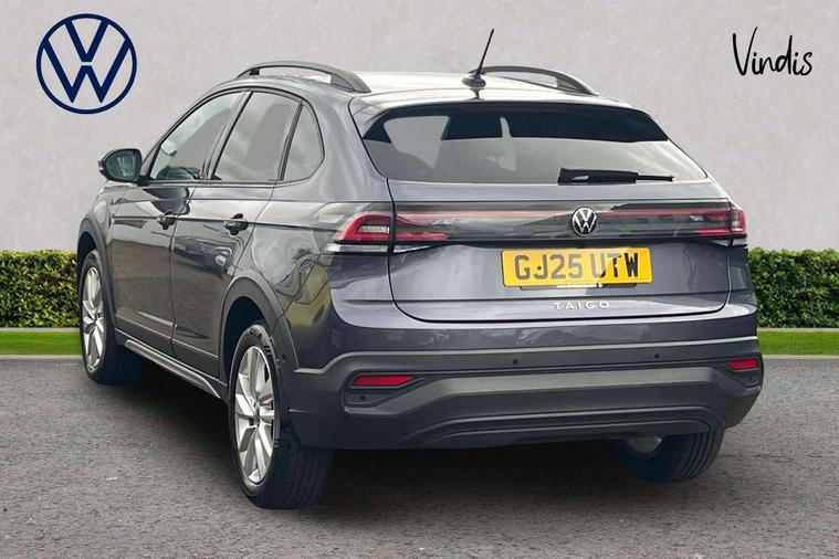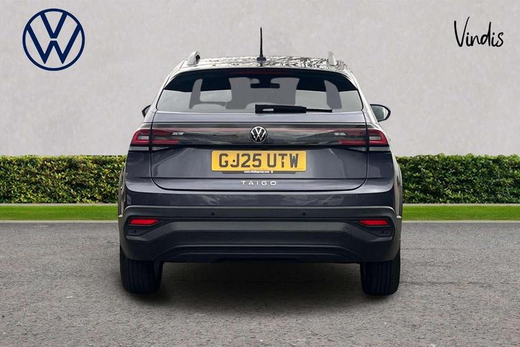 Advanced driver attention and drowsiness monitor, Dynamic road sign display, e-Call (emergency call), Power Steering, Predictive adaptive cruise control, Rear view camera, Travel assist including emergency assist, Washer fluid level indicator, Wireless Charging including Bluetooth, Start-stop system with battery regeneration (recuperation - energy recovery during braking), WeConnect plus, Ambient lighting with logo projection, Aspherical driver's exterior mirror, Body coloured bumpers, Body coloured exterior mirror housings and door handles, Electric windows, External USB type C socket and charging sockets, Heat insulating glass windscreen, LED rear combination lamp, LED third brake light, Left convex exterior mirror, Power folding adjustable/heated exterior mirrors and front passenger exterior mirror lowering function, Rear fog light on one side, reversing light on both sides, Rear side wing doors, Rear wash/wipe with intermittent wipe setting, Side windows in heat-insulating glass, from B-pillar and rear window dark tinted, 'Slash/ Austin' Cloth upholstery, 12V socket in centre console, 2 front reading lights, 3 rear head restraints, 3 seat bench in 2nd row, Black carpets, Ceramique headliner, Child seat anchor for child seat system i-Size, 2x top tether and child seat anchor in front on front passenger side, Door and side trim panels in titan black, Driver and front passenger seat height adjustment, Front centre armrest, Handbrake lever handle in leather, Height and reach adjustable steering wheel, Leather trimmed gear knob, Leather wrapped multifunction steering wheel, Luggage compartment floor, Luggage compartment light, Lumbar support for driver's and front passengers seat, Seat covers in titanium black, Single front passenger seat, Split folding backrest with centre armrest and unsplit rear seat bench, Storage compartment under front seats, Sun visors with illuminated vanity mirrors, Titanium black instrument panel, Chrome Package - Taigo, Drivers assistance package - Taigo, Light and sight pack - Taigo, 2 x 3-point seatbelts/outer rear seats with ECE label, 3-point seat belts in front with pretensioner and height adjustment, 3-point seatbelt for centre rear seat, Driver and front passenger airbag with front passenger airbag deactivation, Driver and front passenger safety-optimised head restraints, Electronic stability control, Extended and predictive pedestrian/ cyclist protection, Front and rear disc brakes, Front curtain and side airbags with center airbag, Hill start assist, Manual rear child locks, Single tone horn, Tyre pressure loss indicator, Anti-theft alarm system with interior monitoring, backup horn, and towing protection, Keyless locking and starting system keyless access with safelock, Black (slush) Dashboard, Lava stone black gloss/matt decorative inserts in dash and front door panels, Low rolling resistance tyres,