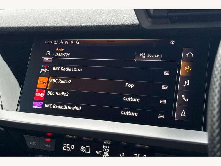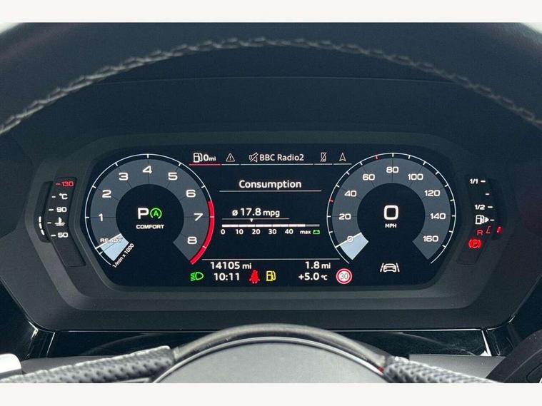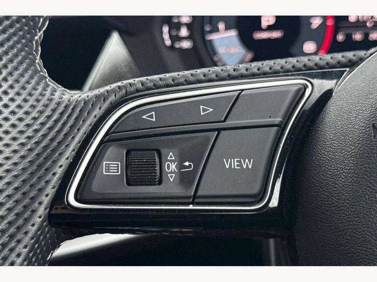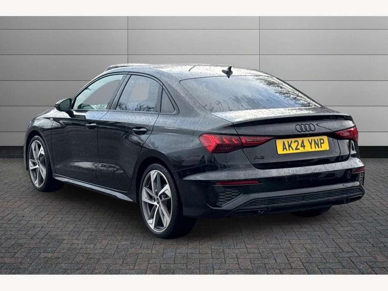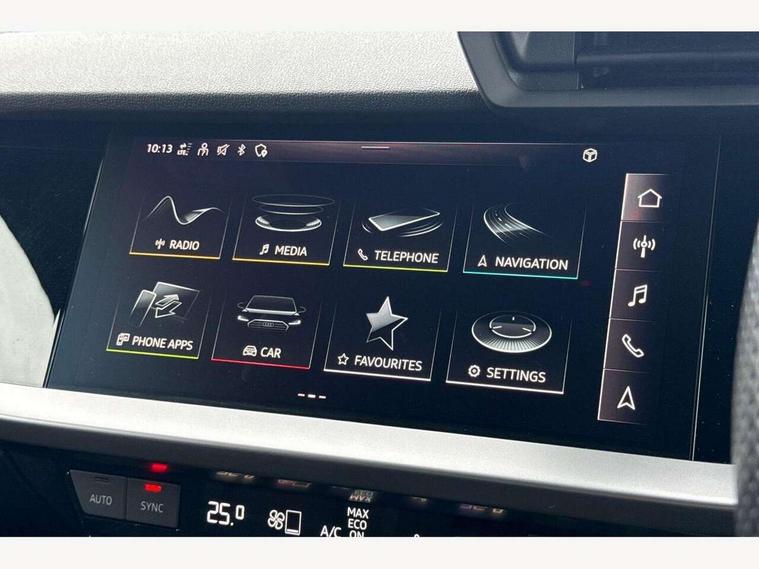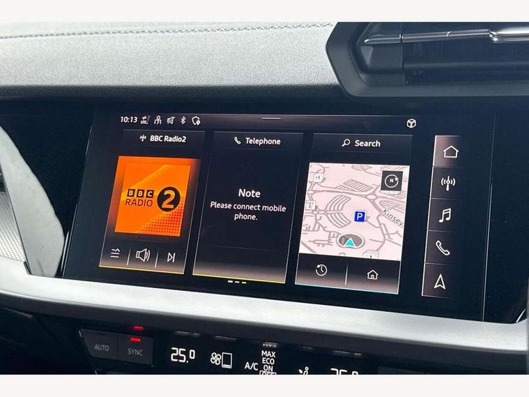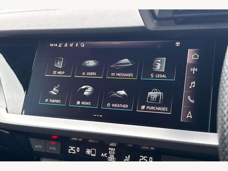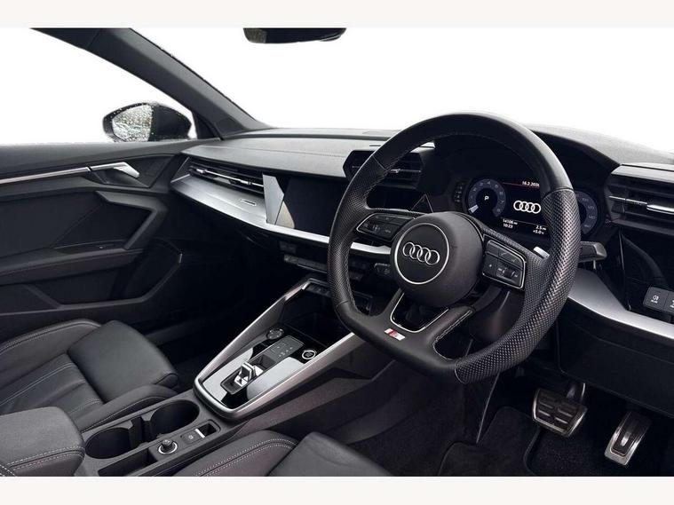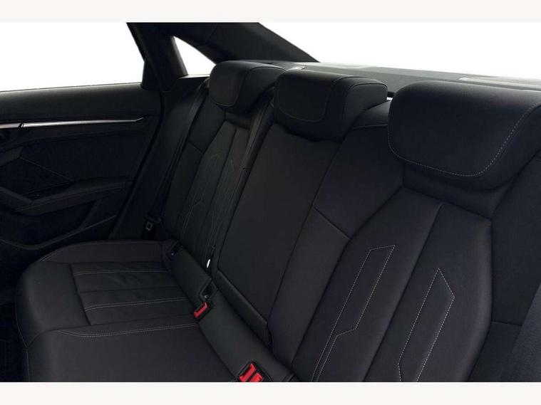 Audi drive select (Auto, Comfort, Dynamic, Efficiency and Individual), Audi smartphone interface, Audi Virtual Cockpit - 10.25" digital and colour instrument cluster, Automatic start/stop system with recuperation, Bluetooth interface, Camera based traffic sign recognition, Collision avoidance assistant, e-Call (emergency call), Electromechanical power speed sensitive steering, Lane departure warning system, MMI Navigation Plus with high resolution 10.1" colour touch screen display, Service indicator, Trip computer, Voice control system with natural language interaction, Sports suspension, 2xUSB-C connection with data and charging functions, 6 passive loudspeakers, CD player, DAB Digital radio, 3rd brake light, Acoustic glass windscreen, Audi beam uses LEDs to project the Audi logo onto the ground as you exit your A3, Auto dimming frameless rear view mirror, Electrically adjustable/heated/folding/auto dimming door mirrors with integrated LED indications + kerb view function for passenger side, Front electric windows, Illuminated door sills with aluminium inserts at the front with S logo, LED daytime running lights, LED headlights with LED rear lights and dynamic rear indicators, Light and rain sensors, Model and engine designation badges at rear, Privacy glass - dark tinted rear window, rear door and side windows, Rear boot, Rear electric windows, Rear side wing doors, S roof spoiler, 12V socket and storage compartment in front centre console, 3 seat bench in 2nd row, 3 spoke flat bottomed leather multifunction sport steering wheel with gear shift paddles, 4 way electrically adjustable lumbar support for driver and front passenger, 60/40 split folding rear seat bench, Black cloth headlining, Dual zone electronic climate control, Front and rear centre armrest in artificial leather, Front and rear headrests, Front/rear floor mats, Height and reach adjustable steering wheel, Interior lighting - glove compartment light and right hand side, Luggage compartment floor covering, Manual boot compartment lid, Single front passenger seat, Stainless steel pedals and front footrest in black, Twin leather upholstery with front sports seats S embossed logo, Aluminium interior elements pack - A3, Black styling pack - A3 Saloon/Black edition, LED interior lighting pack - A3 Saloon, 3x3 point rear seat belts, Driver and front passenger airbag with passenger airbag deactivation, Electronic Stabilisation Control (ESC) including ABS, ASR and EDL, First aid kit with warning triangle and 2 safety vests, Front side airbags with head airbags and interaction airbag, Pre-sense front with pedestrian and cyclist detection, Seatbelt monitoring, Tyre pressure loss indicator, Anti theft alarm, Anti-theft wheel bolts, Electronically operated child locks, Immobiliser, Remote control central locking, Aluminium air vent surrounds, Dark spectrum aluminium inlays, accent surfaces in the dashboard and centre console in platinum grey silk effect paint finish, 19" 5 arm trapezoid design alloy wheels in matt grey with diamond cut finish,