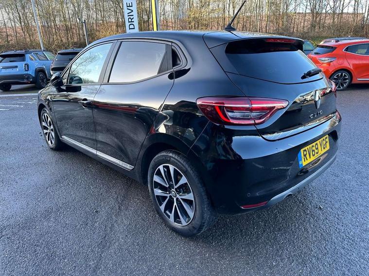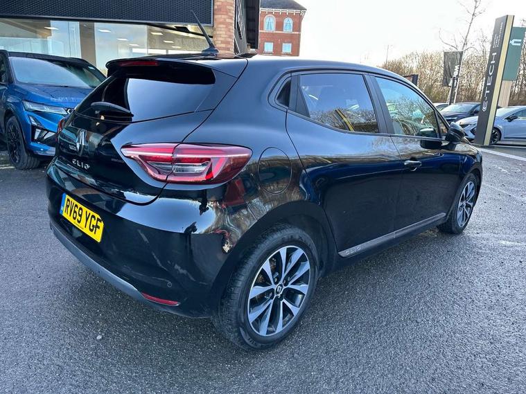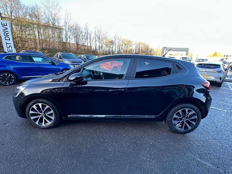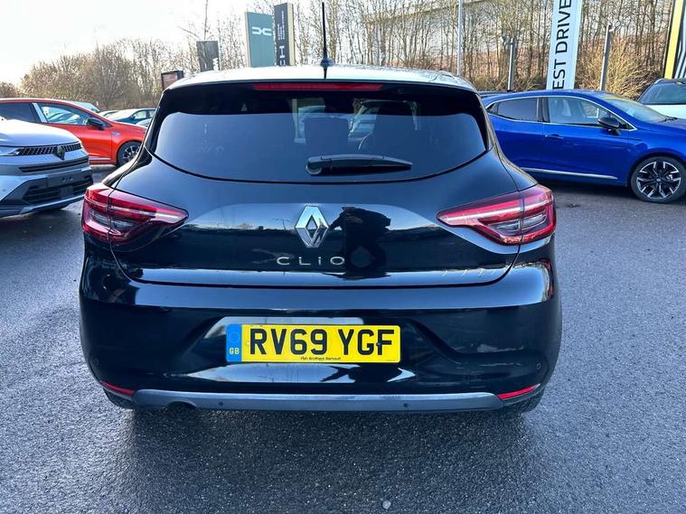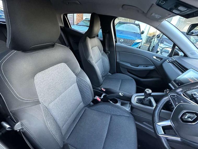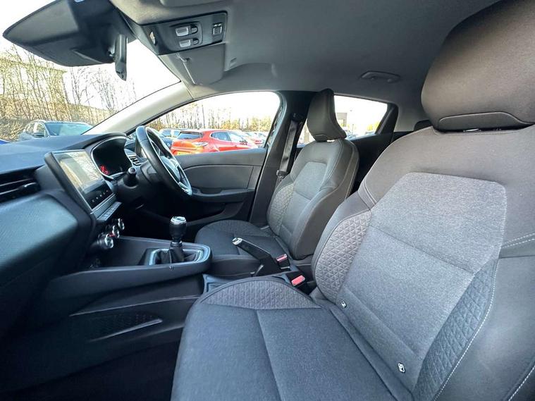 Anti-drill door locks, Central door locking, Child lock control of rear doors and windows, Deadlocking system, Hands free Renault card, Locking fuel filler cap, RAID (Renault Anti-Intruder Device) with automatic door locking, Remote central locking, Thatcham Cat 2 engine immobiliser, 4x20W Arkamys radio with bluetooth handsfree and USB, Aux-in socket, DAB Digital radio, Sound auditorium, 3 point seatbelts on all rear seats, ABS+EBD+Brake assist, Automatic emergency braking system, Curtain airbags, Distance warning alert, Driver and passenger front and side airbag deactivation, Driver/Front Passenger airbags, ESC - Electronic Stability Control + traction control, Front side airbags(head+thorax), Height adjustable driver's seatbelt, Hill start assist, Seatbelt warning, Tyre pressure warning, Black headlamp surrounds, Body colour door handles, Body colour door mirrors, Body coloured bumpers, Body coloured rear spoiler, Chrome boot lid finisher, Chrome insert on lower side doors with Clio embossing, Drivers one touch window with anti-pinch feature, Electric adjustable/heated/folding door mirrors, Electric front windows, Exterior rear hidden door handles, Extra tinted glass on rear windows + tailgate, Full LED front and rear headlamps integrating daytime running lights at the front and rear, LED front fog lights, Rear fog lights, Rear wiper, Variable front intermittent wipers, 12V Accessory socket, 3 rear height adjustable headrests, 60/40 split rear seats, Air recirculation control, Cloth upholstery, Driver's seat height adjustment, Front cupholders, Front door storage bin, Glovebox, Height adjustable front headrests, Height/reach adjust steering wheel, Isofix system on outer rear seats, Leather steering wheel, Multi function steering wheel, Pollen filter, System for Restraint and Protection SRP-front seats, 4.2" colour instrument display, Bluetooth Handsfree Phone Connection, Cruise control + speed limiter, E-call, Eco mode, Gear change indicator, Lane departure warning system, Lane keep assist, Over speed prevention, Push button starter, Rear parking sensors, Smartphone cradle, Traffic sign recognition, Trip computer, Variable assistance electric PAS,