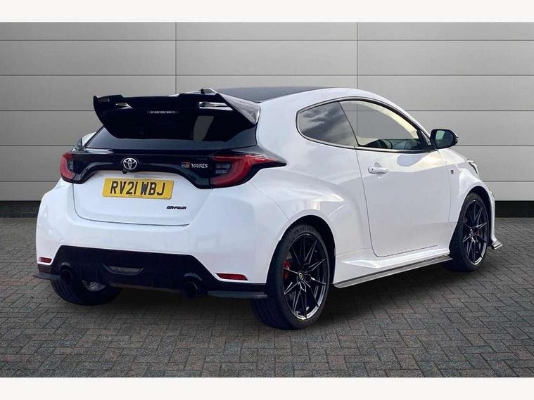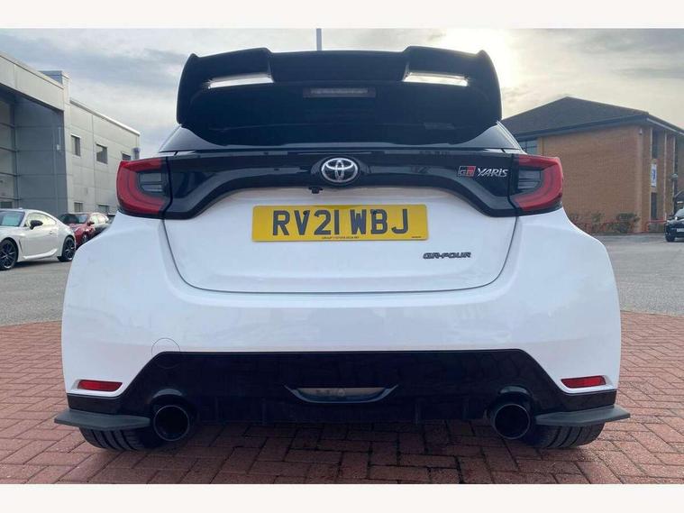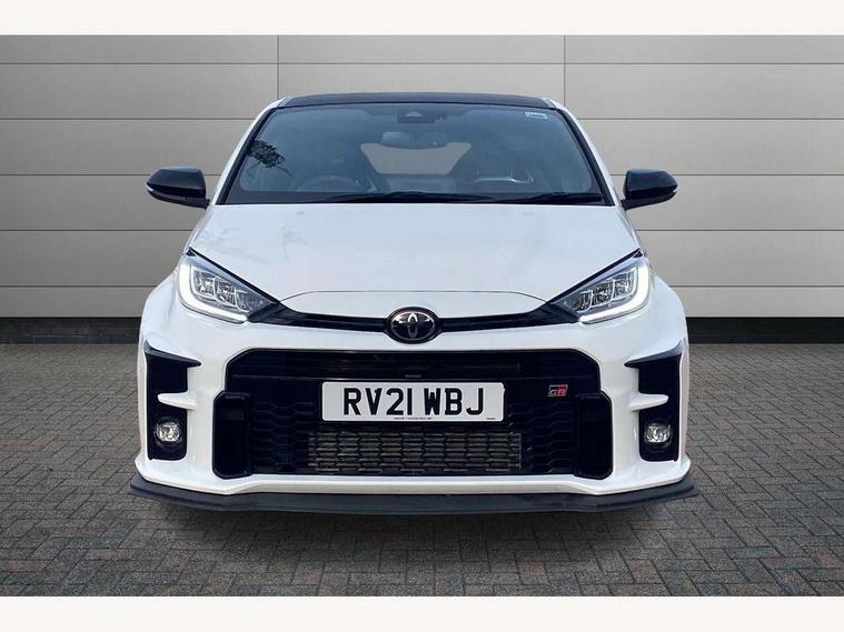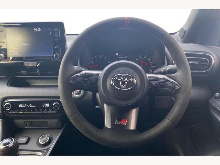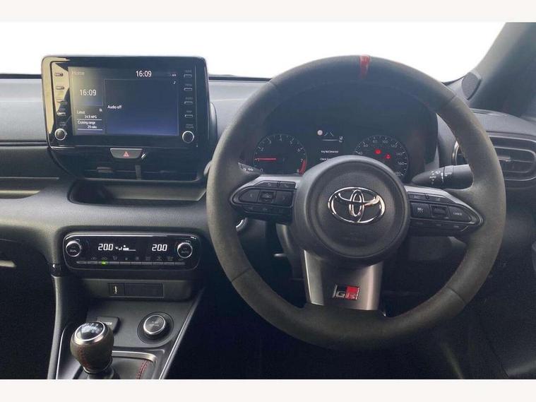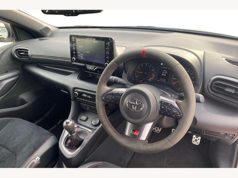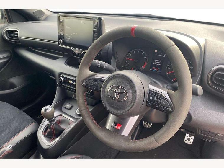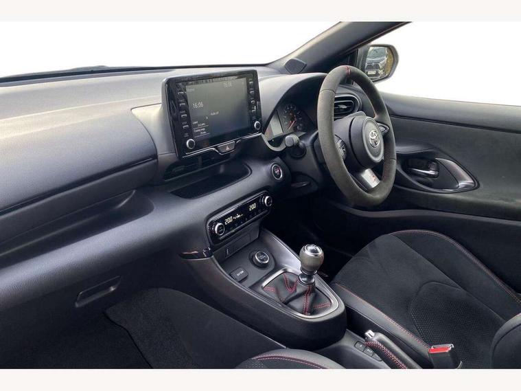 Apple car play/Android Auto, Coloured TFT multi informational display, eCall emergency system, Emergency steering assist, Intelligent adaptive cruise control, Lane Departure Alert (LDA) switch on steering wheel, Lane trace assist, Power Steering, Pre-collision system (PCS), Reversing camera, Road sign assist - RSA, Circuit tuned GR suspension, Double wishbone rear suspension, GR-Four AWD switch, MacPherson front suspension, Vehicle Stability Control (VSC), 6 speakers, 8" Multimedia display touch screen, DAB Digital radio, Toyota touch 2 multimedia system, USB connection, Adaptive high beam assist, Adaptive LED Headlights, Air intakes for brake cooling, Auto dimming eletrochromatic rear view mirror, Auto windscreen wipers, Automatic headlights, Automatic headlights cut-off, Automatically retractable door mirrors, Black contrasting colour door mirrors, Black rear spoiler, Body coloured door handles, Body coloured rear bumper, Carbon fibre roof wrap, Door scuff plates, Dual exhaust pipes, Electric adjustable heated door mirrors, Follow me home headlights, Front auto power windows with anti jam protection, Gloss black GR front bumper, GR badges 1 front, 1 rear and 2 sides, GR lower front grille, Integrated LED indicators in door mirrors, LED daytime running lights, LED fog lights, LED High mounted stop lamp, LED rear combination lights, Piano black side air vents, Privacy glass on rear and back windows, Rear auto power windows with anti jam protection, Rear window defogger, Shark fin antenna, 12V socket in front, 2 rear head restraints, 3 spoke leather sports steering wheel, 60/40 split folding rear seat, Aluminium pedals, Clean air filter, Driver and passenger headrests, Driver's sun visor with vanity mirror, Dual zone automatic air conditioning, Front bottle holders, Front cup holders, Front map light, Front sports seats, GR floor mats, GR logo on steering wheel, GR Ultrasuede leather upholstery, Height adjustable driver's seat, Isofix child rear seat restraints, Leather gearshift, Leather handbrake, Manual slide adjustable on driver's and passenger seats, Microphone on front personal light, Multimedia switch on steering wheel, Pollen filter, Red stitching on gearshift, Red stitching on handbrake lever, Satin chrome interior door handles, Soft tonneau cover, Ticket holder on driver's sun visor, Tilt/telescopic steering column, ABS with Brake Assist, Airbags - driver and front passenger, Driver and passenger side airbags, Emergency brake light system (EBS), Front passenger airbag on/off switch, Front seatbelt reminder, Hill start assist control (HAC), Rear passenger airbag, Rear seat belt reminder, Red brake callipers, Red sport front and rear brake pads, Start holding control, Torsen limited slip differentials x2, Tyre pressure warning system, Alarm/immobiliser, Keyless smart entry with push button start, 18" 10 spoke forged alloy wheels with Michelin pilot sport, Tyre repair kit,