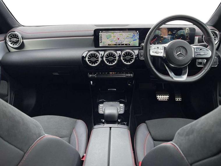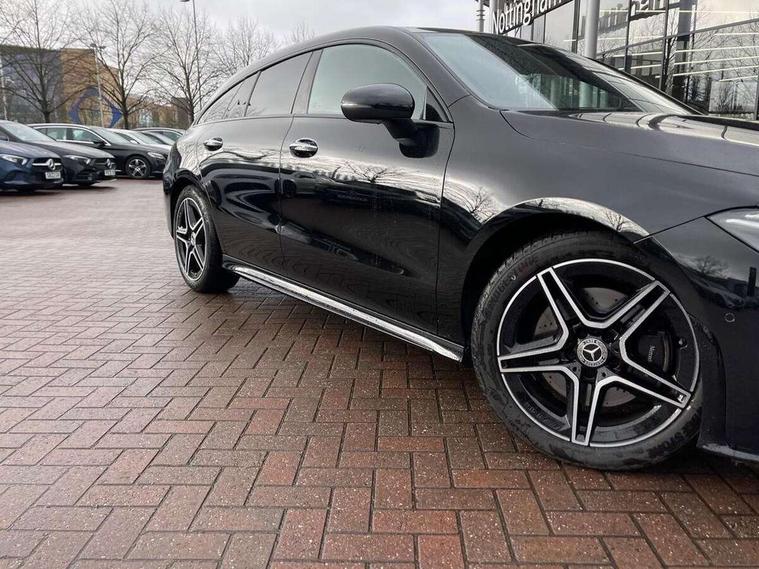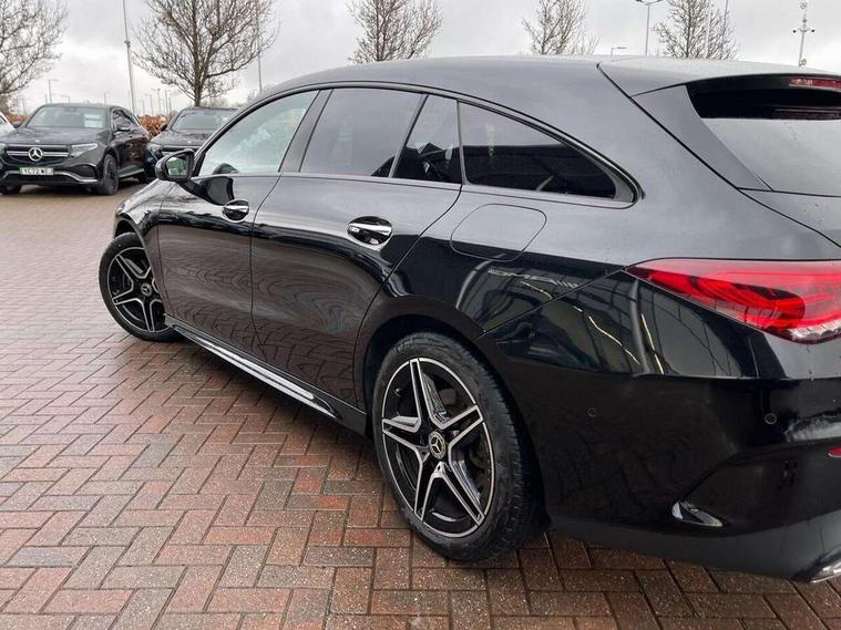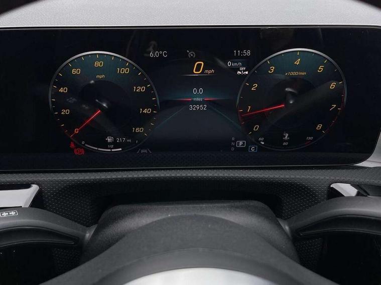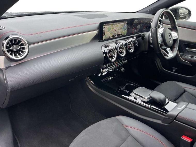10.25 inch Instrument display with digital cockpit, 10.25 inch touchscreen central media display, Active lane keeping assist, Attention assist - Monitors steering behaviour and long journey fatigue, Bluetooth connection, Car wash mode, Cruise control with limiter, Direct steer system with speed sensitive power steering, DYNAMIC SELECT with a choice of driving modes (ECO, Comfort, Sport and Individual), ECO start/stop function, Fluid level warning indicator for fuel, oil, coolant and washer fluid, Hard-disk navigation, Hey Mercedes Voice activation, Lamp failure indicator, Mercedes me connect including emergency call system, accident recovery, breakdown and maintenance management, Mercedes me remote services, Outside temperature gauge, Owners manual and service booklet in English, Pre-installation of private car share, Preinstallation for Mercedes Benz link, Radio aerial integrated into front and rear windshields, Service indicator (ASSYST), Smartphone integration with Apple CarPlay and Android auto, Speed limit assist, Tailgate, Trip computer in multifunction display with current consumption indicator, Lowered comfort suspension, Rear axle multi-link, DAB digital radio tuner, MBUX multimedia system, Mid-range sound system, USB (type C) ports (2) in stowage compartment and 1 in front of centre console, Adaptive brake lights, AMG body styling with AMG front apron and rear apron and visible exhaust tailpipe in chrome trim elements, AMG bodystyling side skirts, Body colour bumpers, Body colour door handles, Chrome beltline strips, Diamond radiator grille pins in chrome, Electric windows, Electrically adjustable and heated door mirrors with integrated LED indicators, Exhaust system with 2 Visible tailpipe trim elements and rear apron with trim in chrome, Headlamp assist automatic headlamp activation, Heated glass rear windscreen + timer control, High level LED third brake light, Interior mirror with black reading lamps and frameless, LED high performance headlamps with integrated LED daytime running lights, LED tail lamp, Privacy glass with dark tinting on rear side windows and rear window, Rain sensing windscreen wipers with two sensitivity settings, Rear fog lamp, Rear side wing doors, Rear wiper, Variable front intermittent wipers, Window line trim strip in chrome, 3 seat bench in 2nd row, 3 spoke flattened bottom nappa leather multifunction steering wheel with perforated leather in grip area, 40:20:40 split folding rear seat backrests, Air conditioning - Two zone thermotronic luxury automatic climate control with display, Air vents with surround in silver chrome, Artico man-made leather upholstery, Automatic child seat recognition sensor, Black roof lining, Brushed stainless steel sports pedals with rubber studs, Floor mats with stitched AMG lettering, Front centre armrest with stowage, Galvanished gear shift paddles on steering wheel, Heated front seats, Illuminated front door sills with changeable cover, Illuminated glove compartment stowage, Interior lighting - 64 colour Ambient lighting, Luggage net on driver/front passenger seat backrest, Manually adjustable front seats, Manually height and reach adjustable steering column, Rear armrest with two integral cup holders for drinks, Rear head restraints, Single front passenger seat, Sport seats with fixed head restraints, Stowage compartment in centre console with retractable cover, Sunvisors with illuminated vanity mirrors, Touchpad on center console, Twin front cupholders, Two outer rear seat isofix and top tether child seat fixing points, Keyless go comfort pack - CLA with easy pack tailgate, Light and sight pack - CLA, Mirror pack - CLA, Night package - CLA, Parking package - CLA, Seat comfort pack - CLA, Active bonnet pedestrain safety measure which detects an impact and raises bonnet by 65mm, Active brake assist includes forward collision warning system with autonomous braking, Adaptive brake assist with hold function and hill start assist, Anti lock braking system (ABS) with brake assist, Black seat belts, Bonnet with power domes, Brake pad wear warning indicator, Childproof locks manually operated for rear doors and electrically operated for rear power windows, Crash responsive emergency lighting, Driver and front passenger head and sidebags, Driver and front passenger windowbags, Drivers knee airbag, Dual stage driver and front passenger airbags, Electric parking brake, Electronic stability programme with acceleration skid control, ESP curve dynamic assist, Front and rear seatbelt reminder, Front passenger seat occupancy sensor, Three point rear seat belts, Tyre pressure monitoring system, Warning triangle and first aid kit, Guard 360 degree guard vehicle protection system with immobiliser and interior protection, Remote central locking and crash sensor with emergency opening function, Light aluminium with longitudinal grain interior trim, 18" AMG 5 twin spoke light alloy wheels painted in black with high sheen finish, Summer tyres, Tirefit tyre sealant kit,