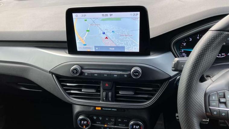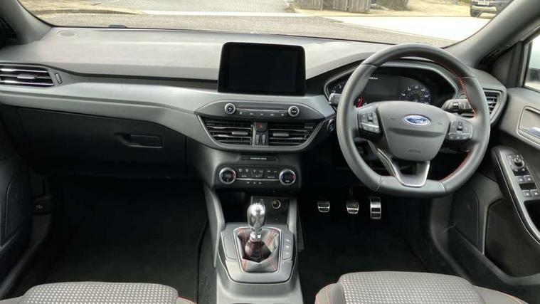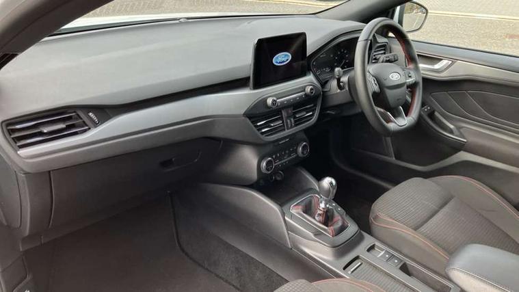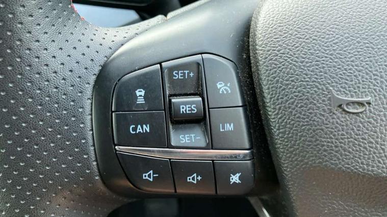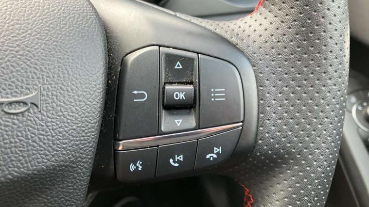 4.2" Colour TFT Ice blue illumination analogue cluster with trip computer, Bluetooth system, Digital clock, Easy fuel capless refuelling system, eCall emergency call system, Eco mode, Lane keeping system - lane keeping alert and lane keeping aid, PAS, Rev counter, Selectable drive mode, Service interval indicator, Sports tuned suspension, 2 USB ports, Auto headlamps (on/off), Body coloured door handles, Electrically operated front and rear windows with one touch opening and closing, Electrically operated heated power fold door mirrors with puddle lamp with side indicators, Front variable intermittent wipers with electric wash, Full fixed LED headlamps, Heated rear window, LED daytime running lamp, LED rear lamps, LED third brake light, Polished twin tailpipe, Privacy glass, Quickclear heated windscreen, Rain sensor, Rear side wing doors, Tailgate wash/wipe, Unique ST-Line grille, full bodystyling kit, and large body coloured rear spoiler, 3 rear headrests, 3 seat bench in 2nd row, Cloth upholstery, Dual zone electronic air temperature control, Height adjustable front headrests, Isofix child seat preparation, Reach + rake adjustable steering column, Single front passenger seat, 3x3 point rear seatbelts, ABS+Electronic Brake force Distribution, Auto hold function, Driver airbag, EDL traction control, Electronic parking brake, Electronic stability control, Front and rear seatbelt reminder, Front inertia reel height adjustable seatbelts with pre-tensioners, Front passenger airbag, Front side airbags, Passenger airbag deactivate switch, Post collision braking, Pre collision assist with autonomous emergency braking and pedestrian/cyclist detection, Remote/power child rear door locks, Side curtain airbags, Three rear inertia reel lap/diagonal seatbelts, Tyre pressure monitoring system, Keyless entry and keyless start, MyKey system, Remote central locking & engine immobiliser, Thatcham alarm with power door dead locks, 17" 5 spoke Rock mettalic finish alloy wheels with mini spare wheel,