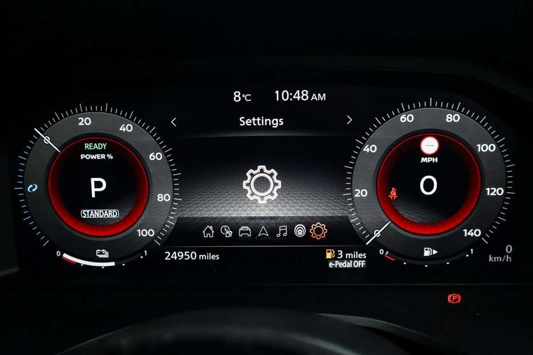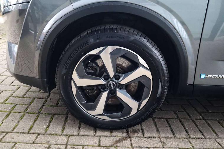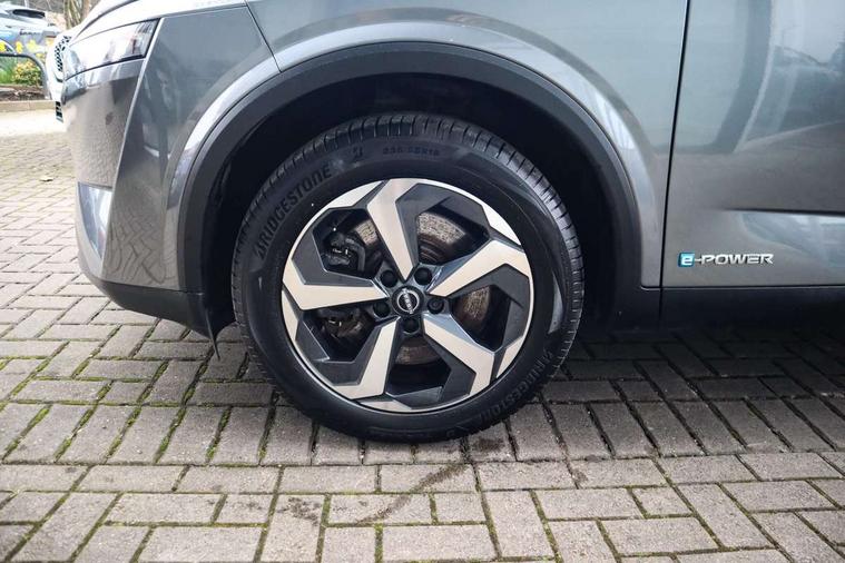 Android auto/Apple CarPlay (Wired), Blind spot warning, Drive modes (sport, normal, eco), Electric speed sensitive power steering, Emergency and breakdown call, Front and rear parking sensors, Full Digital 12.3" TFT Digital Combimeter, Google maps services - search, weather, 3D maps and Google street view, Idle stop/start system, Intelligent around view monitor, Intelligent Cruise control (ICC), Intelligent driver alert system, Intelligent forward collision warning, Intelligent lane intervention, Lane departure prevention, Lane departure warning system, Maximum speed limiter, Moving object detection, Nissan connect 12.3 inch touchscreen infotainment system, Nissan connect navigation, Push button starter, Rear cross traffic alert, Rear view camera, Remote control services - door locks, lights, horn and car locator, Telematics - notifications and connectivity services, TomTom live traffic services, Traffic sign recognition with legal speed adjustment, Trip computer, Virtual personal assistant and firmware over the air capability, Wireless apple carplay, 6 speakers, AM/FM audio system with DAB, Bluetooth audio streaming, Front USB connections (Type-A and Type-C), Rear USB charging only ports (Type-A and Type-C), Auto dimming rear view mirror, Auto rear wiper when reversing, Automatic hazard signal with emergency stop signal, Body colour mirror caps, Body coloured door handles, Bodyside mouldings, Chrome side window finisher, Door handle with button, e-POWER badging, Electric auto folding door mirrors, Electrically adjustable and heated door mirrors with LED turn indicator, Follow me home headlights, High beam assist, Intelligent auto headlights, LED daytime running lights, LED Headlights, LED rear lights, One touch front and rear electric windows with remote opening and closing, Partially body coloured bumpers, Privacy glass, Rear bumper with graphite insert, Rear reversing light (bulb lighting), Rear roof spoiler, Rear side wing doors, Rear styling plate, Shark fin antenna, Splash free rain sensing wipers, Super UV and infrared cut glass, Three blink turn signal, 12v power socket in dashboard and luggage, 2x Rear coat hooks, 3 bench rear seats in 2nd row, 3 rear headrests, 4 folding assist grip, 6-way manually adjustable driver's seat, 60/40 split folding rear seat bench, Ambient lighting around centre console, Centre console storage tray, Chrome interior door handles, Cloth monoform upholstery, Driver and front passenger sunvisors with illuminated vanity mirrors, Driver seat back pocket, Dual zone automatic climate control with pollen filter, e-POWER shifter, Front and rear door storage, Front centre console and armrest, Front cupholders x 2, Front door with bottle holders, Glovebox with light, Hard trunk cover, Height adjustable driver's seat, Height adjustable front headrests, Height adjustable passenger seat, Leather steering wheel, Luggage board system, Luggage space lighting, Manually adjustable passenger (slide recline + lifter), Multifunction steering wheel, Passenger seat back pocket, Rear armrest with 2 cupholders, Rear door bottle holders, Single front passenger seat, Soft PVC kneepad, Steering wheel switches, Sunglasses holder, Tilt/telescopic adjustable steering wheel, Two rear isofix child seat anchorage points with top tether, Welcome light and console tray ambient lighting, 3x3 point rear seatbelt pretensioners + load limiters, ABS with EBD and brake assist, Active brake limited slip, Auto hold function, Child locks on rear doors, Curtain and front side, far side airbags, Driver and passenger airbags, Driver, passenger and 2nd row rear seat belt reminder, Electronic parking brake, Front seatbelt pretensioners + load limiters, Height adjustable front seatbelts, Hill start assist, Intelligent blind spot intervention, Intelligent front emergency braking with pedestrian, cyclist recognition and junction assist, Intelligent rear automatic braking, Tyre pressure monitoring system, Vehicle dynamic control, Capless fuel filler, Engine immobiliser, Intelligent Key, Remote central door locking with deadlocking, Thatcham Cat.1 alarm, Interior instrumental panel B finisher, 18" Diamond cut alloy wheels, Tyre puncture repair kit,