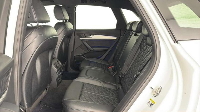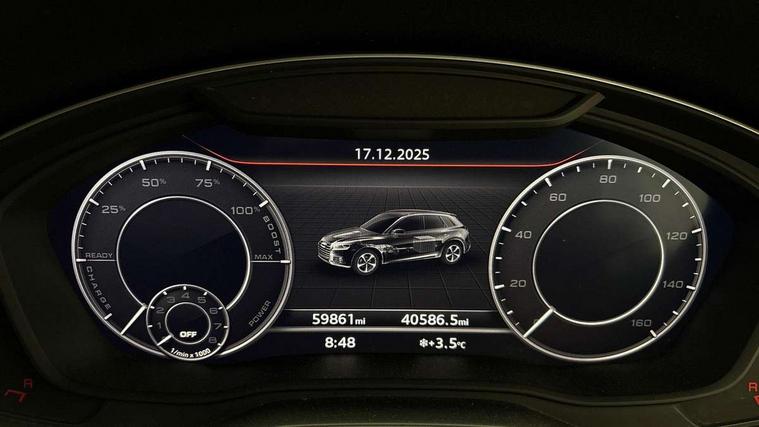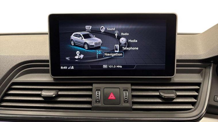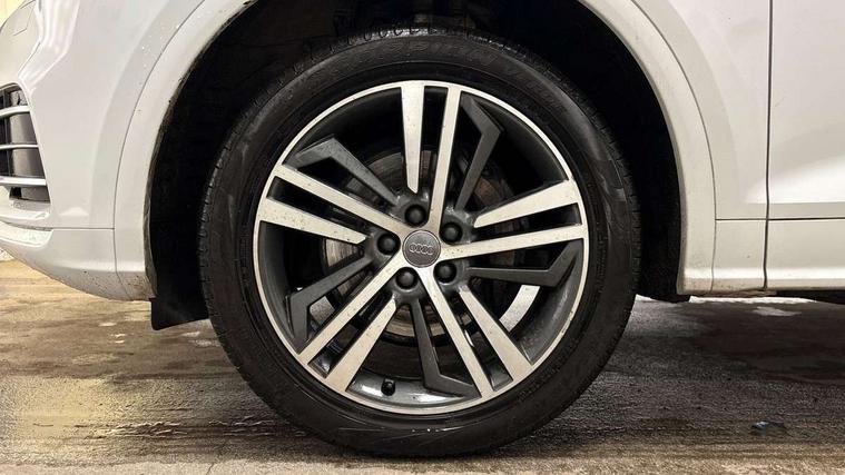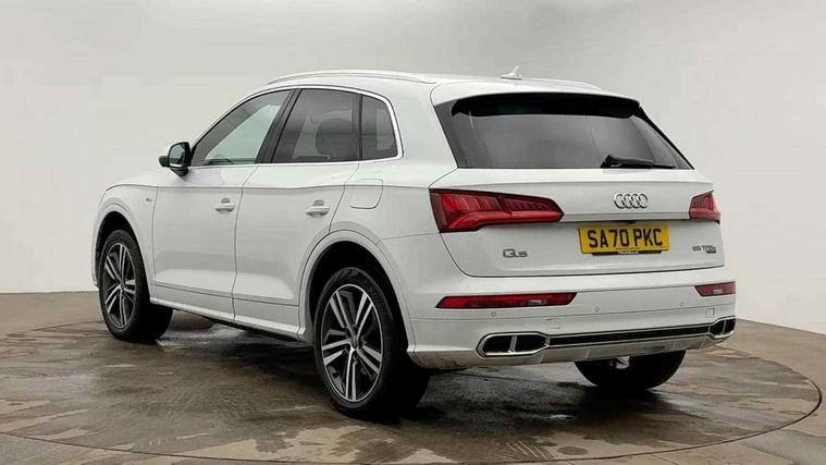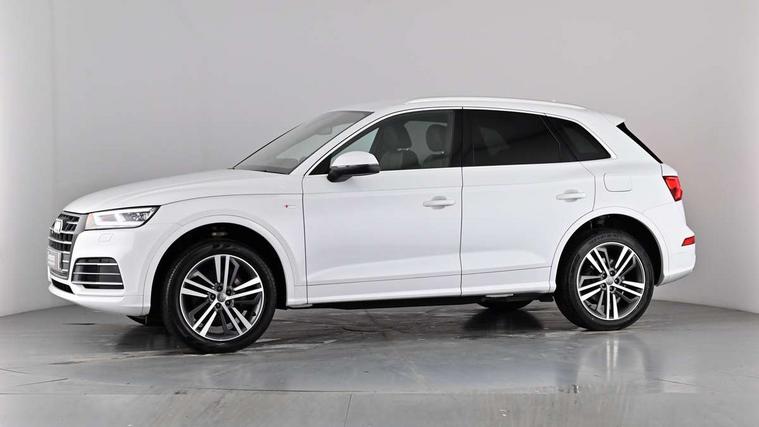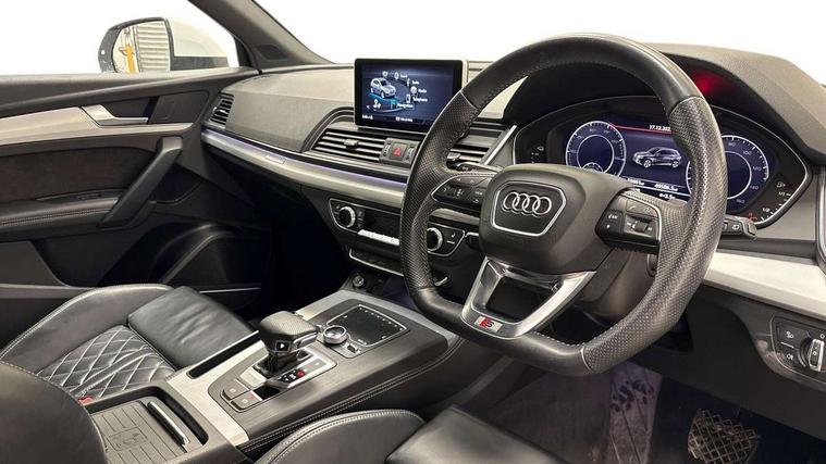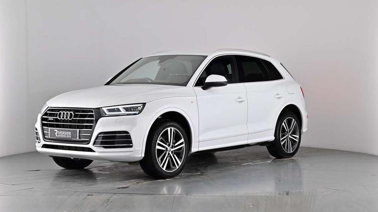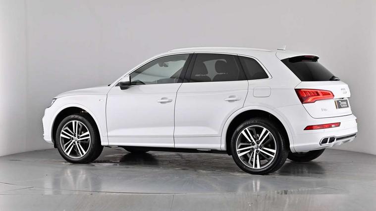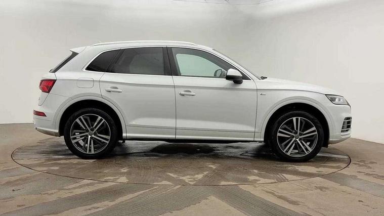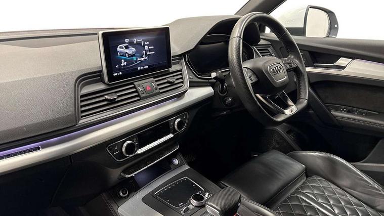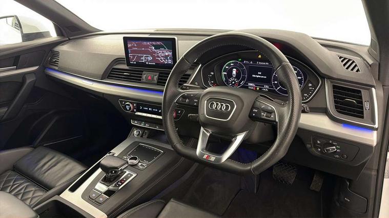 Audi connect safety and service (e-call), Audi drive select, Audi phone box with wireless charging, Audi smartphone interface, Audi virtual cockpit - 12.3" high resolution LCD digital instrument cluster display, Automatic start-stop system with coasting functionality and efficiency programme, Electro - mechanical power assisted steering, MMI navigation plus with 8.3" colour MMI screen and MMI touch, Mobile telephone preparation - bluetooth interface, Power tailgate, Service interval indicator, Voice control system, 3 pin 10 amp domestic charging cable, Dynamic suspension, Mode 3 32amp charging cable - Type 2, Quattro on demand, 2x SD card slot, CD player, DAB Digital radio, MMI radio plus with 7" colour MMI screen and MMI controller, Acoustic windscreen, Aluminium roof rails, Audi Beam uses LEDs to project the Audi Sport logo, Auto dimming rear view mirror, Automatic headlight levelling, Body colour bumpers, Body colour door mirrors, Body colour S Line side skirts, Body colour S specific rear diffuser, Body colour underbody protection, Chrome exhaust tailpipe, Chrome rear bumper inserts, Electric adjustable/heated/folding door mirrors, Front and rear electric windows, High beam assistant, LED headlights with LED rear lights + dynamic rear indicators, Light and rain sensor for auto activation of lights and windscreen wipers, Loading sill protector in stainless steel, Privacy glass with front acoustic glazing, Rear wiper, S air inlet in titanium black, S front and rear bumpers, S Line badges on the front wings, S Line rear spoiler, Twilight grey matt radiator grille with matt aluminium horizontal chrome struts, 2 x USB charging port with aux input socket, 3 rear headrests, 3 spoke flat bottom high multi-function leather steering wheel, 4 way electric lumbar support for driver and front passenger, 40:20:40 split folding rear seat with rear centre armrest, Black cloth headlining, Contrast stitching on seats, steering wheel and gear lever gaiter, Deluxe 3 zone electronic climate control, Fine Nappa leather upholstery with diamond stitching, Front centre armrest, Front sport seats with S embossed logo, Front/rear floor mats, Fully electrically adjustable driver's seat, Fully electrically adjustable front passenger seat, Heated front seats, Height adjustable front head restraints, Height/reach adjustable steering column, Illuminated door sill trims with S logo, ISOFIX child seat mounting and top tether, Luggage compartment carpet, Massage function for front seats, Perforated leather gearknob, Rear seat bench plus, Removable luggage compartment floor, Sunvisors with vanity mirrors, Tool kit, Trunk roller cover, Extended leather pack - Q5, High gloss pack - Q5, Non Smokers pack, 3 point seatbelts on all seats, 6 airbags - Driver, front passenger, curtain and side airbags, Electromechanical parking brake, Electronic stabilisation control including ABS, ASR and EDL, Front passenger airbag deactivation, Hill descent control, Hill hold assist, Multi collision brake assist, Pop-up bonnet for pedestrian protection, Pre sense city, Seat belt force limiter, Seatbelt monitoring, Tyre pressure warning, Warning triangle and first aid kit, Anti theft alarm, Anti-theft wheel bolts, Keyless Go access/ignition system, Remote central locking, Matt brushed aluminium inlays, Tyre repair kit,