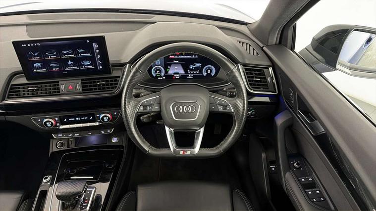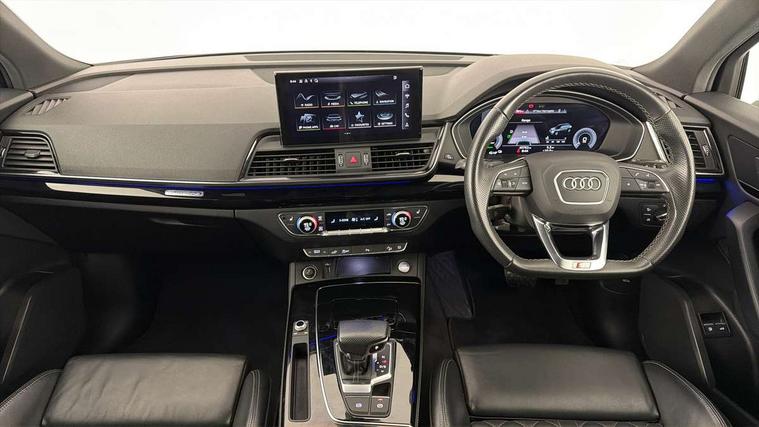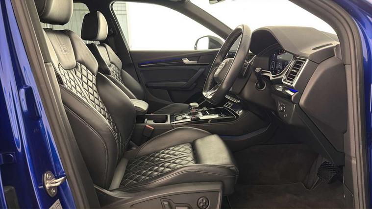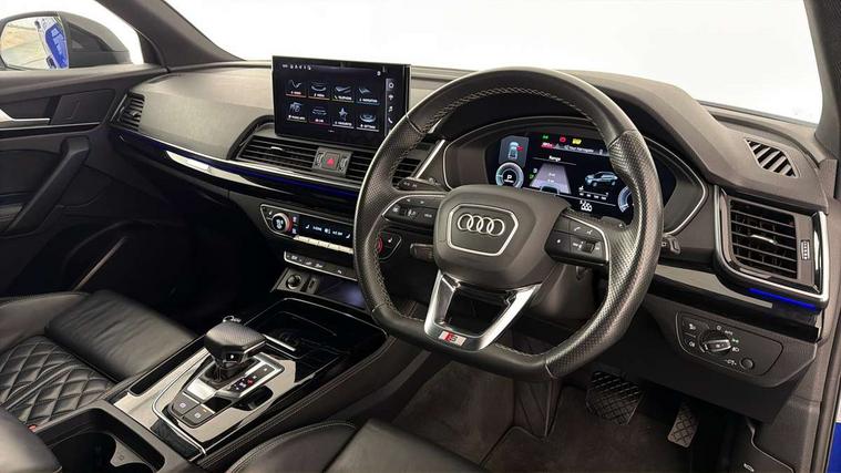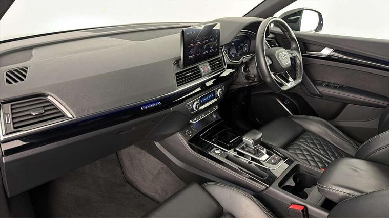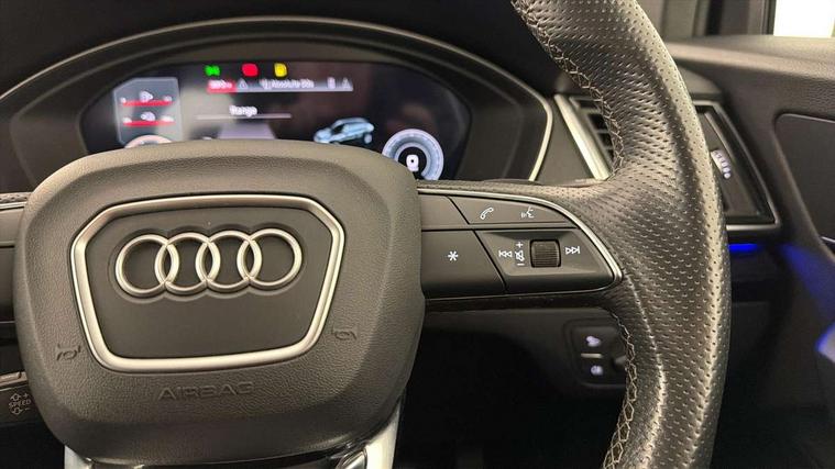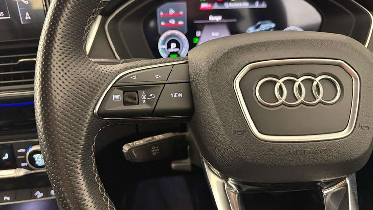 Audi connect safety and service (e-call), Audi connect with Amazon Alexa Integration, Audi drive select, Audi virtual cockpit plus with 12.3" screen and three different layout designs, Audi wireless smartphone interface, Automatic start-stop system with coasting functionality and efficiency programme, Bluetooth interface, Electro - mechanical power assisted steering, MMI navigation plus with 10.1" touch screen, Power tailgate, Reversing camera, Service interval indicator, Voice control system with Audi hotword activation "Hey Audi", 3 pin 10 amp domestic charging cable, Dynamic suspension, Quattro on demand, Type 2 mode 3 22kW 32 amp charging cable, Type 2 socket for AC charging, 2 x USB charging port with aux input socket, DAB Digital radio, Acoustic windscreen, Audi beam with Audi rings logo, Audi matrix LED headlights with dynamic front and rear indicators, Audi rings at front and rear in black, Audi rings decal on rear doors, Auto dimming door mirrors, Auto dimming rear view mirror, Automatic headlights and windscreen wipers, Black door mirrors, Black roof rails, Body colour bumpers, Body colour underbody protection, Chrome plated exhaust trims, Daytime running lights, Door sills in Selenite silver, Electric adjustable/heated/folding door mirrors, Front air inlet surrounds in titanium black, Front and rear electric windows, Headlight washers, High gloss black B pillar trims and triangular rear door trim, High level LED brake light, Rear chrome trim strip below lights, Rear privacy glass and rear side windows, Rear side wing doors, Rear spoiler, Rear wiper, Roof bars, Without model and engine badging at rear, 3 rear headrests, 4 way electric lumbar support for driver and front passenger, 40:20:40 split folding 3 rear bench seat in 2nd row with rear centre armrest, Black cloth headlining, Comfort front centre armrest, Contrast stitching on seats, steering wheel and gear lever gaiter, Deluxe 3 zone electronic climate control, Electrically adjustable front seats, Fine Nappa leather upholstery with diamond pattern contrast stitching + front sport seats with S embossed logo, Front/rear floor mats, Gear lever in black leather, Heated front seats, Height adjustable front head restraints, Height/reach adjustable steering column, Illuminated door sill trims with S logo, ISOFIX child seat mounting and top tether, Rear seat bench plus, Single front passenger seat, Sunvisors with vanity mirrors, Trunk roller cover, Black styling package - Q5 Edition 1, Extended interior upholstery pack - Q5, Extended LED Interior multi coloured Lighting Pack - Q5, 3 point seatbelts on all seats, 6 airbags - Driver, front passenger, curtain and side airbags, Electrically operated child locks on rear doors, Electromechanical parking brake, Electronic stabilisation control including ABS, ASR and EDL, Front and rear brake calipers painted in red, Front passenger airbag deactivation, Hill descent control, Hill hold assist, Multi collision brake assist, Pop-up bonnet for pedestrian protection, Pre sense city, Seat belt force limiter, Seatbelt monitoring, Tyre pressure warning, Warning triangle and first aid kit, Anti theft alarm, Anti-theft wheel bolts, Keyless Go access/ignition system, Remote central locking, Piano black finish inlay, 20" 5 V spoke star design Audi sport alloy wheels in gloss anthracite black with diamond cut finish, Tool kit, Tyre repair kit,