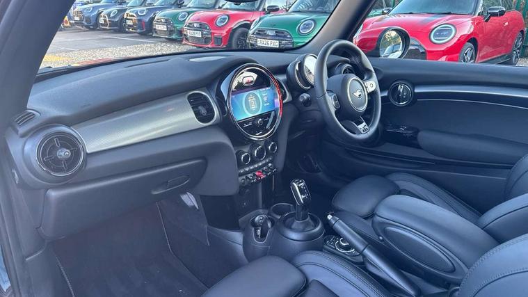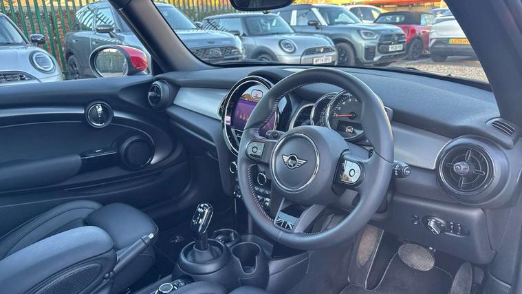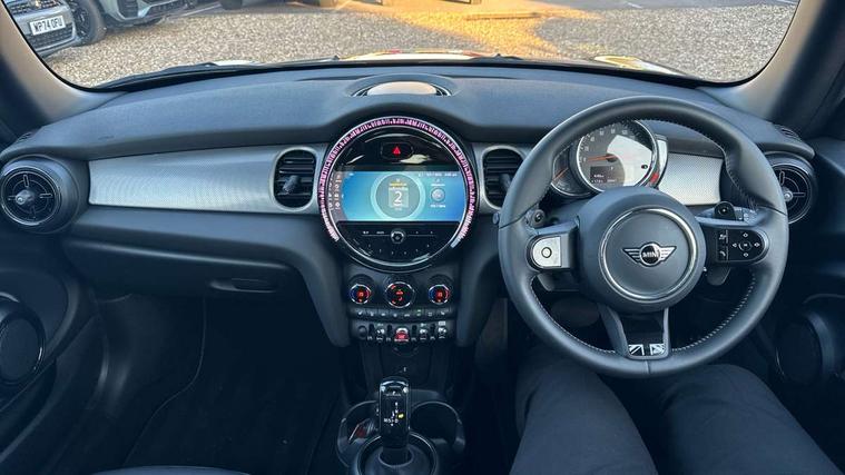 Apple CarPlay, Automatic start/stop function with brake energy recuperation, Compatible mobile phone bluetooth with audio streaming, Cruise control with brake assist, Electro-mechanical speed dependant steering assistance, Flexible car sharing preparation, Instrument cluster, MINI Driving Modes - centre toggle switch to control driving setting (sport, mid and green), Mini E-call, MINI TeleServices, On board computer, Rear park distance control, Service interval indicator, Double Vanos system, Fully variable valve control, High precision injection, Performance Control, Steptronic sport transmission with double clutch and steering wheel paddles, 8.8" touchscreen with LED ring, FM tuner and DAB digital radio, 3rd brake light, Automatic headlight activation switch, Bonnet scoop, Chrome line exterior - radiator grille bars, tailgate handle, lower front grille grating and rear central fog-light, Dynamic brake lights, Electric front windows, Heated rear window, Heated windscreen washer jets, LED headlight with closed ring and daytime driving lights, Metal door sill strips with Cooper S, Model logo Cooper S on right of tailgate, Rain sensor window wipers, Rear fog lights, Rear LED lights with union jack design, Rear window wiper, Side scuttle panel with integrated indicator, Sun/heat protection glass, White indicator lenses, 12V Accessory socket in centre console, 2 seat bench in 2nd row, 4 lashing eyes in luggage compartment, 60/40 split folding rear seat, Carbon black colour line - Knee roll and door armrest, Chrome interior highlights, Chrome line interior - air vents, gear lever base, door handles and speakers in doors, Cupholders, Front and rear head restraints, Front and rear isofix with front passenger airbag deactivation, Front floor mats in velour, Glove compartment, Height and length steering column adjustment, Interior lighting with 12 different colours across the dashboard, underneath door bezel with illuminated laser-engraved design on central display, Leatherette gearshift lever and handbrake gaiters, LED reading lights, vanity mirror lights, front foot well light and spotlight on front seats, Manual air conditioning, Mechanical seat adjustment - forward/back & backrest for front seats and driver seat height adjust, MINI yours badge on exterior pillar, Multifunction steering wheel, Passenger seat height adjuster, Satellite grey headlining including grab handles and clothes hooks, Single front passenger seat, Storage compartments in doors, Storage pocket on back of front seats, Sunvisors with vanity mirrors, Walknappa leather steering wheel with grey seam and MINI Yours badge on Piano Black lower steering wheel spoke, 3 point seatbelts on all four seats, 6 Airbags - front, side, head and seat belt tensioners, Anti-lock braking system (ABS), DSC - Dynamic Stability Control, Front and rear disc brakes, Two tone horn, Tyre pressure monitoring system, Alarm system with tilt sensor, monitoring doors, bonnet interior and tailgate, Electronic vehicle immobiliser, Start/stop toggle with keyless go, Tool kit,