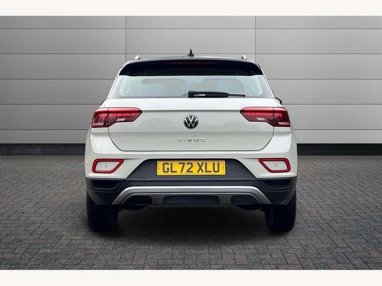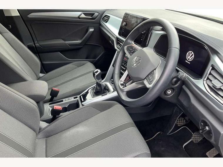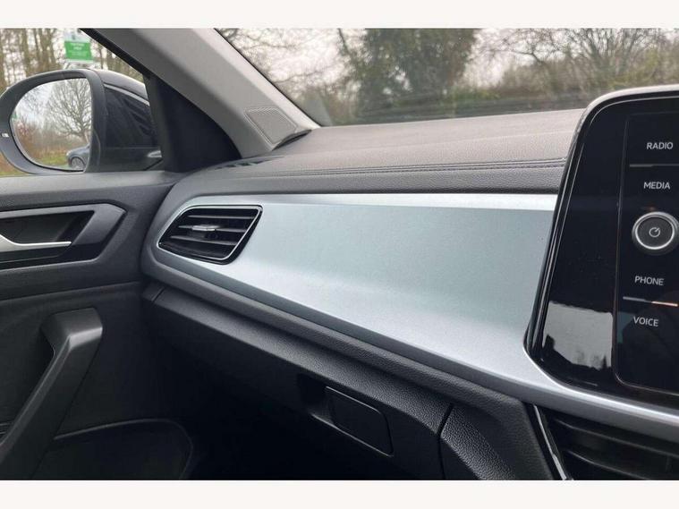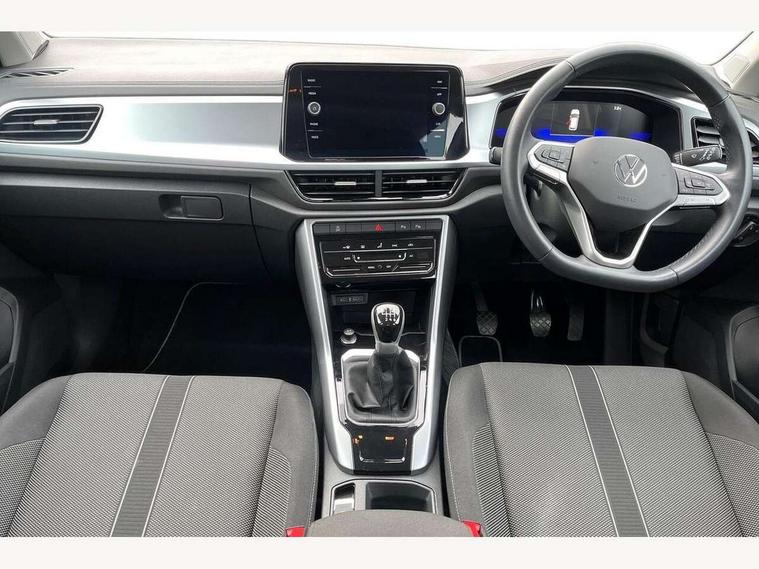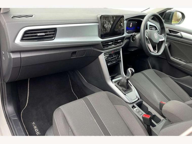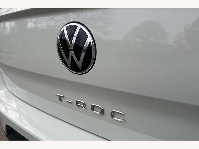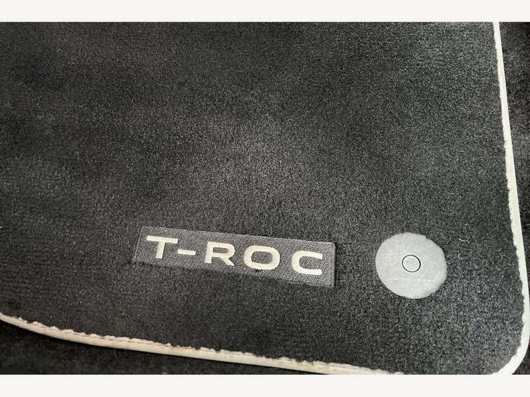Bluetooth mobile phone interface, Driver alert system with fatigue detection, Driver tips and journey analysis, Emergency call service, Lane keeping system Lane Assist, Modified key software - reduce switch off time for key status change to Long no motion, Online services, Park assist including front and rear parking sensors, Power assisted speed sensitive steering, Service interval indicator, Tailgate/trunk lid release from outside, Think blue trainer driver tips and journey analysis, Warning sound and light for front seatbelts unfastened, Wireless app connect, Battery regeneration during braking, Front shock absorption, Rear shock absorption chassis with increased ride height, Start/stop function with battery regeneration, DAB Digital radio, Diversity antenna for FM reception, Front and rear 6 speakers, Music playback - MP3, WMA and AAC files, Premium USB cable in choice of either Apple or Android smartphone compatibility, SD card slot, Simultaneous pairing of 2 compatible mobile devices, Title and cover art display, We Connect and We Connect Plus functionality, 3rd brake light, Auto dimming interior rear view mirror, Automatic hazard lights activation under emergency braking, Automatic headlight control with LED separate daytime running lights with coming/leaving home function, Black roof rails, Body coloured bumpers and radiator grille with chrome trim and front fog lamps with chrome bezel, Body coloured exterior mirror housings and door handles, Extended roof spoiler, Exterior mirrors aspherical on driver side, convex on front passenger side, External USB type C socket and charging sockets, Front windscreen wiper with intermittent wipe and 4 position delay, Heated rear window, LED Headlights, LED rear combination lamps, LED rear number plate lights, LED tail lamp rear comination lamps, Power windows with comfort operation and circuit breaker, Rain sensor, Rear exhaust tailpipe, Rear fog light on one side and reversing lights on both sides, Rear side wing doors, Rear wash/wipe with intermittent wipe setting, Remote electrically foldable door mirrors, puddle lights and reverse activated passenger's door mirror, 12V power socket in centre console, 3 rear head restraints, 3 seat bench in 2nd row, 4 load lashing points in luggage compartment, Air care climatronic air conditoning system with active combination filter and 2-zone temperature control, Ambient lighting with mirror logo projection, Cloth upholstery, Door and side trim panel in cloth, Drawer under drivers seat, Driver/front passenger seat height adjustment, Front centre armrest, Front comfort sports seats, Front cupholders x 2, Front reading light, Instrument lighting, white adjustable panel illumination, Interior light delay, Isofix child seat preparation, Leather gearshift handle, Load-through provision with cup holder when folded down ('Unsplit rear seat bench, split folding backrest, with centre armrest), Luggage compartment lighting, Lumbar support for driver's and front passengers seat, Non-folding front passenger seat backrest, Single front passenger seat, Storage compartment in left and right luggage area, Storage compartment in rear doors, Storage compartments in driver and front passenger doors, Sunvisors with illuminated vanity mirrors, Variable boot floor, height adjustable and removable, Driver assistance pack without proactive passenger protection - T-Roc, 3 point height adj front seatbelts + pretensioners, 3 point seatbelts in outer rear with ECE label, ABS, Child locks on rear doors, Driver and front passenger airbag with front passenger airbag deactivation, Driver and front passenger safety-optimised head restraints, Drivers seatbelt reminder, Electronic parking brake, Electronic Stability Control (ESC) inc EDL (Electronic Differential Lock) and ASR (Traction Control), Front and rear passengers curtain airbag system including front side airbags, Front assist with city emergency braking and pedestrian monitoring, Front disc brakes, Front seat side impact airbags, Hill start assist, Predictive pedestrian protection, Rear disc brakes, Single tone horn, Tyre pressure loss indicator, Volkswagen roadside assistance, Alarm with interior protection, Anti-theft alarm system with interior monitoring, backup horn, and towing protection, Remote central locking with SAFELOCK, radio remote control with 2 remote control folding keys, Pewter matt decorative inserts for intrument panel, centre console and door panels at the front, Trims for alloy wheels,
