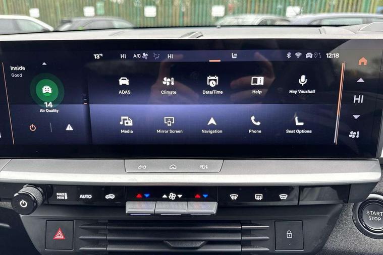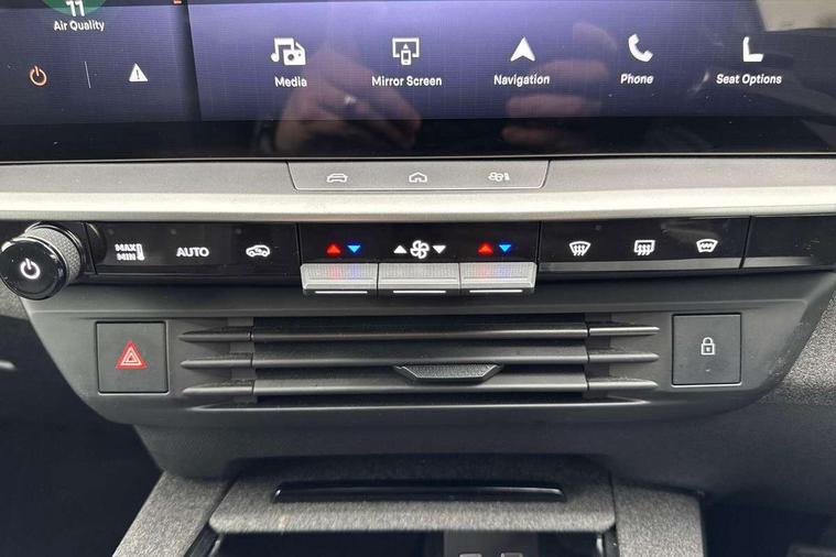 10" digital instrument cluster, 16" multimedia navigation with wireless Apple Carplay/Android auto, 360 degree surround camera, Anticipated intelligent speed adaptation, Central facia display with digital clock, outside air temperature and audio information, Curve speed adaptation, Digital fuel gauge with low fuel level warning light, Digital rev counter, Digital speedometer, Digital water temperature gauge with warning light, Drive mode selector (Eco, Normal, Sport), Driver information - Total mileage, service indicator, oil life, Electric power steering, Front and rear parking sensors, In-crash braking, Intelli-HUD (Extended heads up display), IntelliDrive 2.0 - Semi autonomous lane change assist with lane positioning assist, rear cross traffic alert and side long range blind spot detection, Lights on audible warning, Multi function trip computer - Trip odometer, vehicle range, average speed and fuel economy, instantaneous fuel economy and driving time, Power tailgate, Speed sign recognition, Start/stop system, Vauxhall connect including Emergency call (SOS e-call) and Breakdown call (b-call), Wireless charger for mobile devices, Anti-roll bars, Compound crank rear suspension with coil springs and gas pressure dampers, Independent decoupled MacPherson strut front suspension with gas pressure dampers and coil springs, anti-roll bar, Stability control, 2 rear USB-C sockets, AM/FM and DAB radio, Premium focal Hifi sound system includes 10 speakers and subwoofer, Radio controls on steering wheel, Acoustic windscreen, Auto headlights, Automatic headlight beam levelling, Black door mirrors, Black grained wheel arch claddings, Body colour door handles, Dark tinted rear windows, Electrically defrosting driver and passenger door mirrors, Electrochromic frameless rear view mirror, Front illuminated griffin, Front wiper system spraying directly from wipers, Grained lower door claddings, Heated windscreen, High gloss black front and rear bumpers, High gloss black roof spoiler, Illuminated rear Vauxhall, IntelliLux LED headlights with 3D illuminated vizor, welcome and farewell animation, 11 driving modes and adaptive high beam assist, Intermittent rear window wash/wipe, LED 3rd brake light, LED daytime running lights, LED tail lights, Magic wash, Panoramic opening glass roof, Power folding door mirrors with memory function and reverse mode, Power front and rear windows, Rain sensor windscreen wipers, Rear side wing doors, Rear wipers with camera cleaning, Two speed windscreen wipers with variable intermittent wipe, Welcome lighting, 10 way manual adjustable heated front seats with AGR approved with pneumatic lumbar support, cushion nose extension and power tilt, 2 cupholders with slider, 3 12V plugs, 3 bench rear seats in 2nd row, 3 spoke leather effect steering wheel with dimpling, 7 colour ambient lighting, Automatic air conditioning, Centre console armrest, Chrome effect interior door handles, Clean cabin system, Cooled glove box and central console storage with LED light, Dashboard and door panels polychromatic ambient lighting, Dual zone electronic climate control, Front door storage with 1.5 litre capacity, Front seat back storage pockets, Fully carpeted luggage area, Heated steering wheel, Height adjustable headrests, Illuminated vanity mirrors, Intelli air, Paddle shifts, Pixel storage, Rear armrest, Rear centre seat head restraint, Rear clothes hooks on B pillar trims, Single passenger seat, Sunglasses Box, Touch sensitive front and rear reading lights, Anti-lock braking system (ABS), Automatic emergency braking system, Child proof locks on rear doors, Deactivation switch for front passenger front and side impact airbags, Deflation detection system, Driver airbag, Dual seatbelt pretensioners on front seats, EBD - Electronic brakeforce distribution, Electronic parking brake, Front and rear ventilated discs, Front passenger airbag, Front seat side impact airbags, Full-size curtain airbags for driver and front passenger, Hill assist control, Hydraulic Brake Assist (HBA), Inertia reel lap and diagonal seatbelts for all seats, Load limiters on outer rear seatbelt retractors, Pretensioners on outer rear seatbelt retractors, Rear 3 point ISOFIX, Smart seatbelt reminder for front and rear seats, Tyre pressure monitoring system, Central locking, Deadlocking system, Electronically protected audio equipment, Engine deadlock immobiliser, Keyless entry and start, Locking wheel nuts, Remote security alarm system, Mistral dark ambience, 19" Diamond cut alloy wheels, Tyre repair kit,