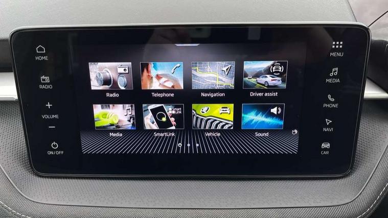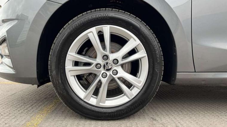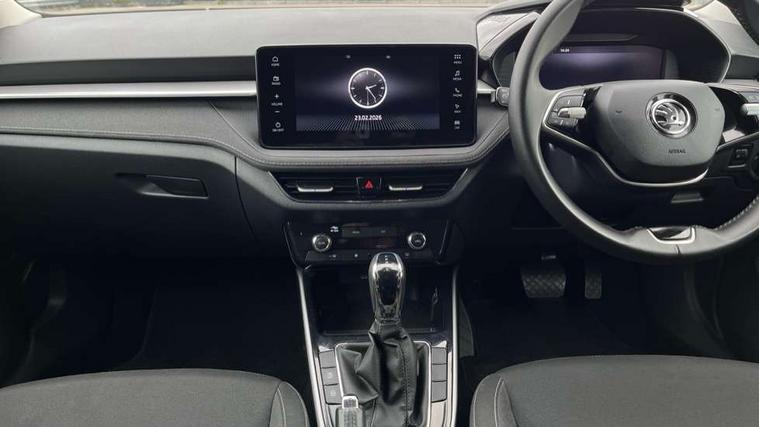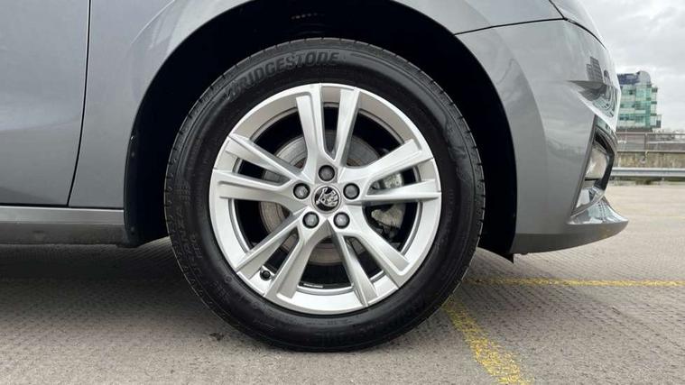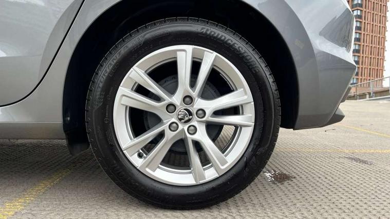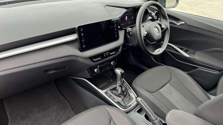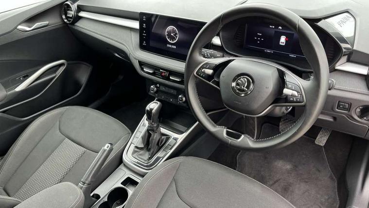 Advanced driver attention and drowsiness monitor, Bluetooth connection, Electromechanical power steering, Exterior temperature gauge, Service interval indicator, Traffic sign recognition, Virtual cockpit with 10.25" colour display, Wireless SmartLink for Apple CarPlay and Android Auto, 6 Speakers (4 in front and 2 in rear), 9.2" colour display skoda navigation system with voice control and web radio, Auxiliary socket for external MP3 player, DAB digital radio reception, Auto dimming rear view mirror, Body colour door mirrors, Body coloured bumpers, Chrome window surround, Door mirror integrated indicators, Front and rear electric windows, Front window wiper intermittent control, Headlight range control - Automatic, Ice scraper in fuel cap, LED daytime running lights with coming and leaving home feature, LED rear lights, Privacy glass, Rear LED fog light, Rear side wing doors, Rear window wiper with washing nozzles, Roof mounted spoiler, SKODA tailgate lettering in chrome, Third brake light, 2 reading lights in front and 2 reading lights in rear, 3 rear headrests, Backrest split and folding, Central console with removable cup holder and storage box, Chrome handbrake release button, Comfort seats, Door sills with fabia badging, Dual zone air conditioning with climatronic electronic control, Fabric upholstery, Front centre armrest, Gearshift knob/handle in leather, Hand brake lever handle in leather, Height adjustable front headrests, Height adjustable front seats, Height adjustable steering wheel, ISOFIX and TopTether anchorage points to the outer rear seats, ISOFIX and TopTether on the front passenger seat, Luggage compartment lighting, Manually adjustable lumbar support in front seats, Metallic grey interior door handles, Pollen filter, Rear seat bench unsplit, Single front passenger seat, Storm grey headlining, Sun visors with mirror and airbag label on passenger side, Textile floor mats, Ticket holder, Umbrella in drivers door, 3-point height adjustable front seats belts with pretensioner and force limiter, Automatic warning lights in case of crash, Driver and passengers airbag with switch off function, e-Call+, ESC including ABS, MSR, ASR, EDS, HBA and XDS, Front and rear seat belt warning, FRONT ASSIST (AEB City and AEB Inter Urban), Front side airbags, Head airbags, Hill hold control, One tone horn, Pedestrian protection, Three rear 3-points safety seat belts with pretensioner and force limiter including stop function for outer rear seat belts, Tyre pressure monitoring system, Anti-theft alarm system including immobiliser, interior monitoring, backup horn, and towing protection, Central locking with radio remote control, interior controls, SAFE function and 2 foldable keys, Chrome edged air vents, Metallic grey central console cover, Metallic grey upper decorative trim, Satin black door and side trim panel in front, Textile microsuede grey lower decorative trim with art grey stitching, Anti-theft wheel bolts protection, Super-low rolling resistance tyres,