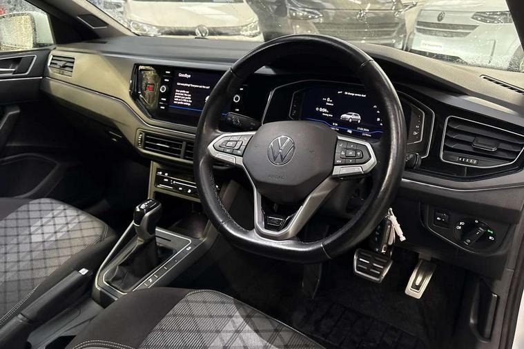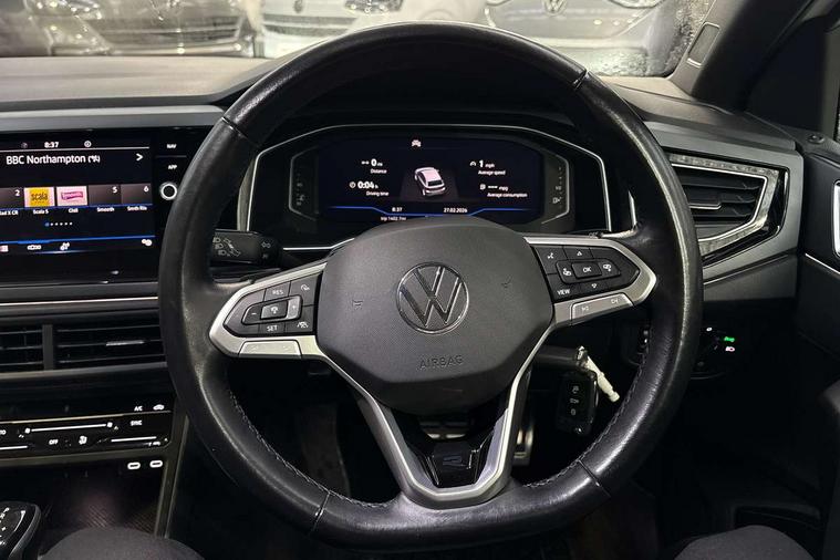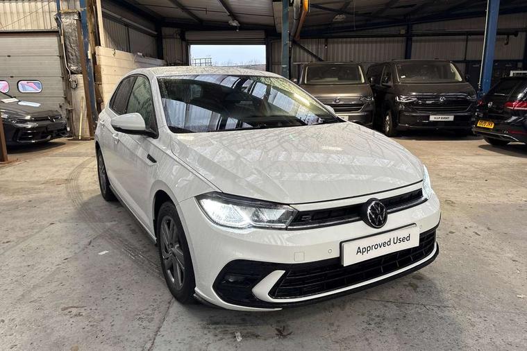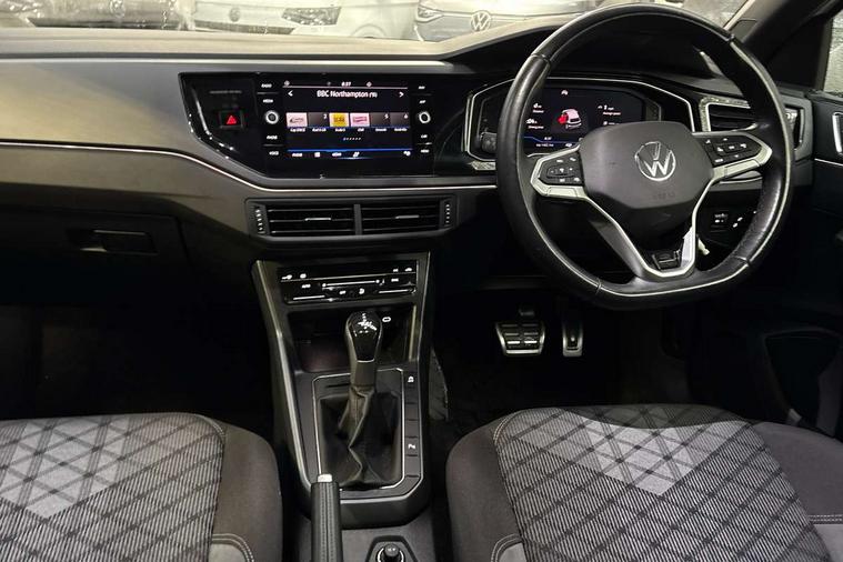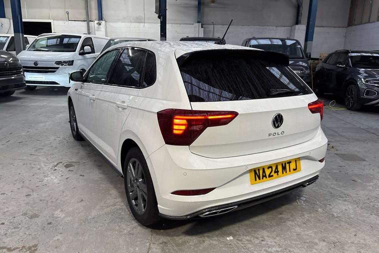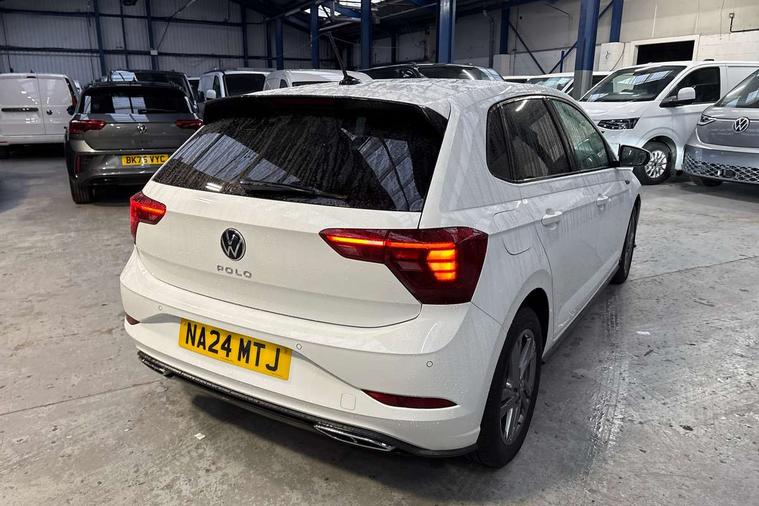 Adaptive cruise control with follow-to-stop and speed limiter, Advanced driver attention and drowsiness monitor, Bluetooth mobile phone interface, Digital Cockpit Pro with 10.25" Display, Dynamic road sign display, Emergency call service, Power assisted speed sensitive steering, Preparation for We connect and We connect plus, Speedo and rev counter, electronic odometer, trip, service interval display and fuel gauge, Standard rear axle, Travel Assist - Lane keeping system and traffic jam assist, Travel assist including emergency assist, Trip computer, Warning signal and warning light for front and rear seatbelts not fastened, Washer fluid level indicator, Wireless app connect, Front wheel drive, Rear shock absorpion, Start-stop system with battery regeneration (recuperation - energy recovery during braking), DAB Digital radio, Diversity antenna for FM reception, Front and rear 6 speakers, Body colour bumpers, Body colour door handles, Electric front windows, Front scuff plates with R-Line logo, Heat insulating darkened glass in side and rear windows, Heat insulating glass windscreen, Power folding adjustable/heated exterior mirrors and front passenger exterior mirror lowering function, Rear electric windows, Rear fog light, Rear side wing doors, Rear windscreen washer and wiper with interval delay, Third brake light, 12V power socket in centre console, 2 USB-C ports in the front, 2 USB-C charging sockets on the center console in the rear, 3 rear head restraints, 60/40 split folding rear seat and rear seat bench not split, Air care climatronic air conditoning system with active combination filter and 2-zone temperature control, Black roof lining, Chrome plated radiator grille inserts, air vent surrounds and light switch surrounds, Door and side trim panel, Driver and front passenger seat height adjustment, Driver/passenger sunvisors with illuminated vanity mirrors, Front + rear carpet mats in recycled material, Front centre armrest, Front footwell illumination, Front seat backrest storage pockets, Front sports comfort seats, Handbrake lever handle in leather, Headliner in recycled material, Isofix child seat preparation easy-fit (for two outer rear seats, and front passenger seat) compatible with I-size, Karoso artvelours cloth upholstery, Leather trimmed gear knob, LED interior light with switch off delay and dimmer, 2 reading lights front and rear, Luggage compartment cover, Luggage compartment floor, Luggage compartment lighting, Lumbar adjustment for front seats, Single front passenger seat, Stainless steel pedals, Standard pedal cluster, Three spoke leather wrapped multifunction steering wheel with shifting paddles, Light and sight pack - Polo R-Line/Black Edition, 3 point height adj front seatbelts + pretensioners, 3x3 point rear seatbelts, ABS, Driver and front passenger airbag with front passenger airbag deactivation, Drivers and front passengers safety optimised head restraints, ESC (Electronic stability control) + EDL (Electronic Differntial lock) and ASR (Traction control), Extended and predictive pedestrian/ cyclist protection, Front curtain and side airbags with center airbag, Hill hold control, Manual child lock in rear doors, Single tone horn, Tyre pressure loss indicator, Alarm with interior protection, Anti-theft alarm system with interior monitoring, backup horn, and towing protection, Anti-theft wheel bolts, Electronic engine immobiliser, Chrome applications on rotary light, mirror adjustment, window regulator switches, outlet with frame in black, Dark grey anodised matt decorative inserts in dash and front door panels, Low rolling resistance tyres,