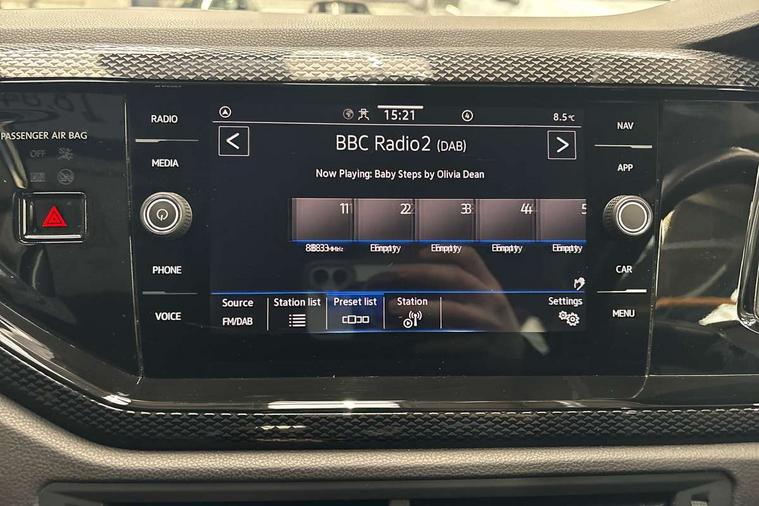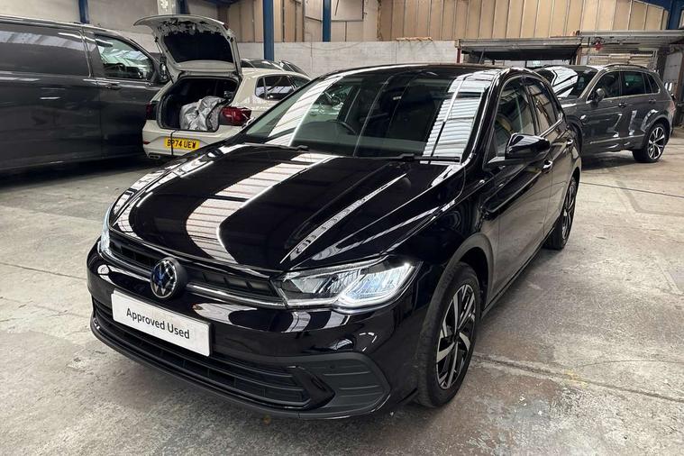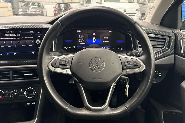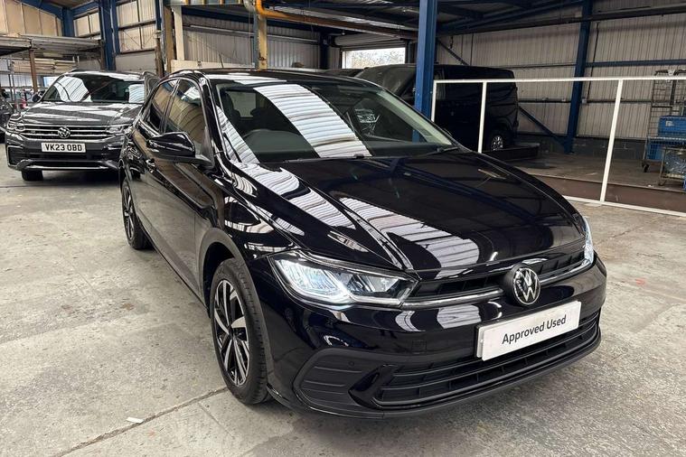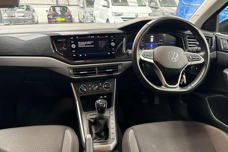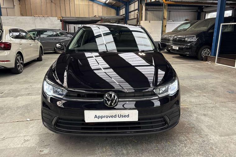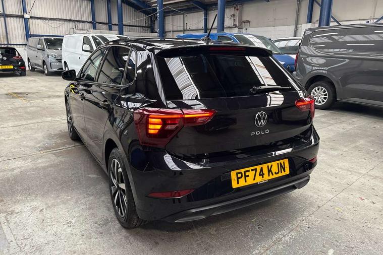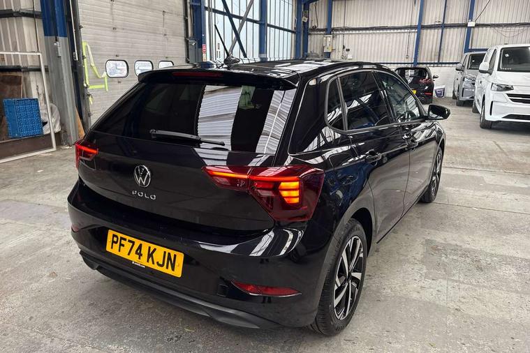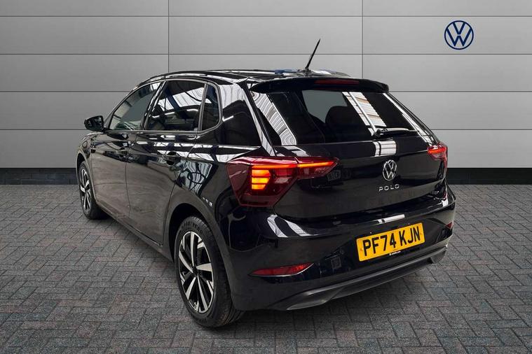 Adaptive cruise control without follow-to-stop and speed limiter, Advanced driver attention and drowsiness monitor, Bluetooth mobile phone interface, Dynamic road sign display, Emergency call service, Multifunction front facing camera for distance control, Park distance control, Power assisted speed sensitive steering, Preparation for navigation system with media and internet package, Preparation for We connect and We connect plus, Rear view camera, Speedo and rev counter, electronic odometer, trip, service interval display and exterior temperature gauge, Standard rear axle, Travel Assist - Lane keeping system and traffic jam assist, Travel assist including emergency assist, Trip computer, Warning signal and warning light for front and rear seatbelts not fastened, Washer fluid level indicator, Wireless app connect, Front wheel drive, Rear shock absorpion, Start-stop system with battery regeneration (recuperation - energy recovery during braking), DAB Digital radio, Diversity antenna for FM reception, Front and rear 6 speakers, Automatic dimming interior rear view mirror, Automatic headlight control with LED separate daytime running lights with coming/leaving home function, Body colour bumpers with chrome inserts, Body colour door handles, Body colour door mirrors, Electric front windows, Engine badge deletion, Headlight range adjustment, Heat insulating and laminated safety glass windshield, LED Headlights, LED rear combination lamps, Power folding adjustable/heated exterior mirrors and front passenger exterior mirror lowering function, Rain sensor, Rear electric windows, Rear fog light, Rear side wing doors, Rear tinted glass from B-pillar backwards approx 65% tinted, Rear windscreen washer and wiper with interval delay, Third brake light, 12V power socket in centre console, 2 front and 2 rear reading lights with switch off delay and dimmer, 2 USB-C ports in the front, 2 USB-C charging sockets on the center console in the rear, 3 rear head restraints, 60/40 split folding rear seat and rear seat bench not split, Ceramique roof lining, Chrome plated radiator grille inserts, air vent surrounds and light switch surrounds, Door and side trim panel, Driver and front passenger seat height adjustment, Driver/passenger sunvisors with illuminated vanity mirrors, Front centre armrest, Front seat backrest storage pockets, Front standard seats, Handbrake lever handle in leather, Hartley/Thomas cloth upholstery, Headliner in recycled material, Isofix child seat preparation easy-fit (for two outer rear seats, and front passenger seat) compatible with I-size, Leather trimmed gear knob, Luggage compartment cover, Luggage compartment lighting, Removable luggage compartment floor, Single front passenger seat, Standard climatic zones, Standard pedal cluster, Three spoke leather wrapped multifunction steering wheel, Light and vision pack - Polo, 3 point height adj front seatbelts + pretensioners, 3 point seat belt for centre rear seat, 3 point seatbelts, outer rear with ECE lable, ABS, Driver and front passenger airbag with front passenger airbag deactivation, Drivers and front passengers safety optimised head restraints, ESC (Electronic stability control) + EDL (Electronic Differntial lock) and ASR (Traction control), Extended and predictive pedestrian/ cyclist protection, Front assist with autonomous emergency braking (for Adaptive Cruise Control ACC up to 130 mph), Front curtain and side airbags with center airbag, Front disc brakes, Hill hold control, Manual child lock in rear doors, Rear drum brakes, Single tone horn, Tyre pressure loss indicator, Alarm with interior protection, Anti-theft alarm system with interior monitoring, backup horn, and towing protection, Anti-theft wheel bolts, Electronic engine immobiliser, Lava stone black gloss/matt decorative inserts in dash and front door panels, 16" Torsby alloy wheels, Low rolling resistance tyres,