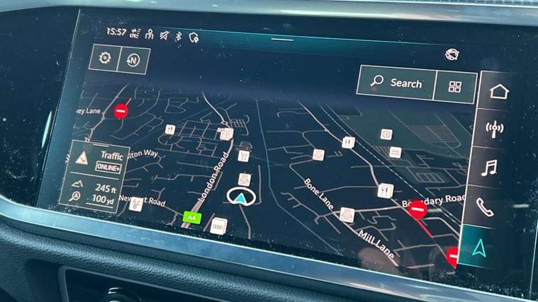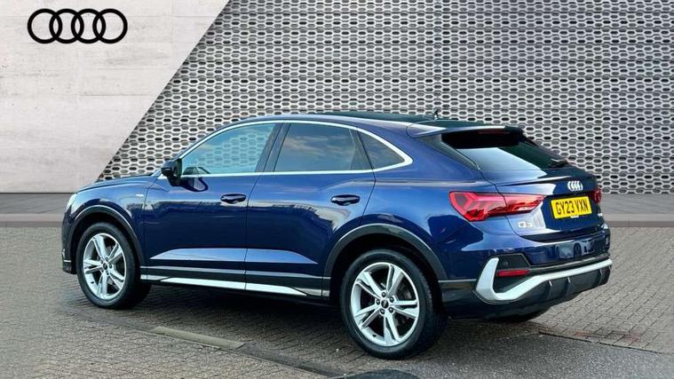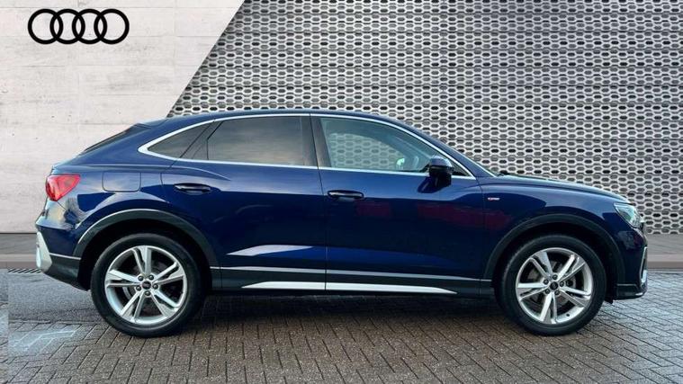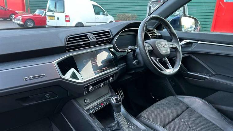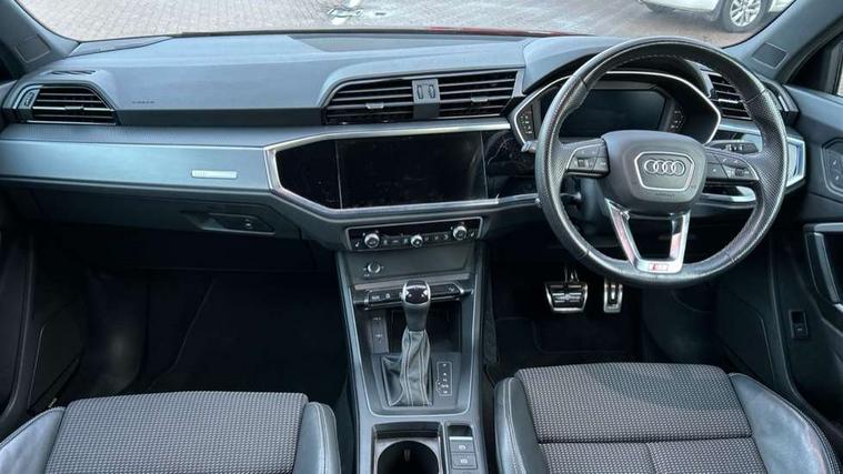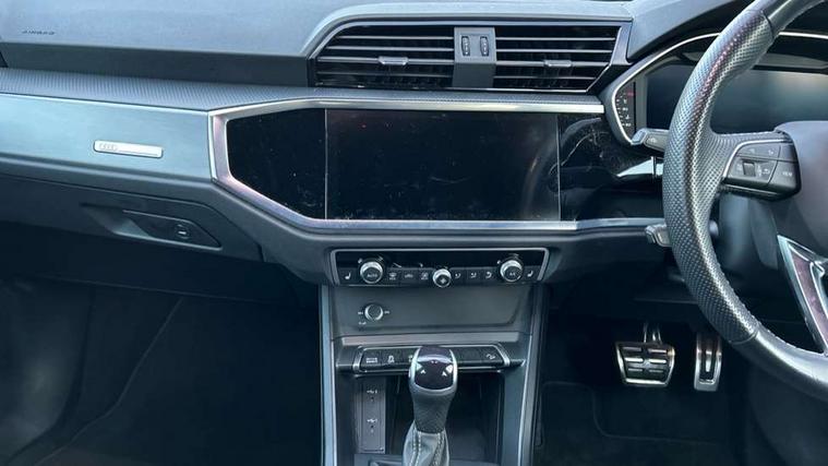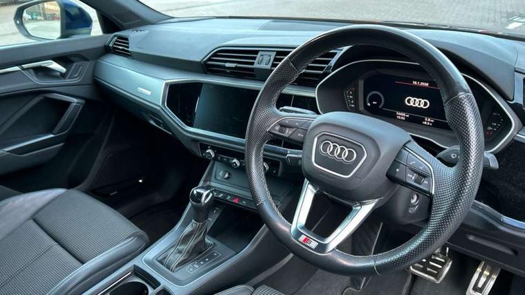 Audi drive select, Audi lane departure warning, Audi Virtual Cockpit - 10.25" display, Bluetooth interface, Camera based traffic sign recognition, Legal emergency call, MMI Navigation Plus with high resolution 10.1 inch touchscreen colour display, Power operated tailgate, Progressive steering, Service interval indicator, Smartphone interface includes wireless Apple carplay/Android Auto, Start stop system with recuperation, Voice control system with natural language interaction, Sports suspension, 2 USB-C ports with charge and data functions, 6 passive loudspeakers, DAB digital radio module, Acoustic windscreen, Aluminium window trim, Auto dimming frameless rear view mirror, Diffuser grille in grained matt black, Diffuser trim in selenite silver, Electrically folding, adjustable and heated door mirrors with integrated LED side indicators and kerb view function for passenger side, Front and rear electric windows, Front fog lights, Front side air inlets in selenite silver, Front underbody protection in manhattan grey paint finish, Grille surround in aluminium silver matt, High gloss black finish B and C pillars, LED Dynamic rear indicators, LED headlights with LED daytime running lights, LED rear lights, LED third brake light, Privacy glass dark tinted rear and rear-side windows (from B-pillar backwards), Radiator grille in anthracite black with inlay in matt aluminium silver, Rain and light sensors, Rear side wing doors, Rear underbody protection in matt black, Rear wiper, S line badges on front wings, S line front and rear bumpers and side skirts in contrasting Manhattan grey paint finish, Side skirt insert in matt Platinium grey, Variable front intermittent wipers, 12V socket in rear centre console, 3 seat bench in 2nd row, 3 spoke leather multifunction steering wheel features S badging and grips in perforated leather with contrast stitching, 40:20:40 folding with manual adjustment for 60:40 forwards/backwards position and backrest angle, Adjustable rear seat bench/backrest with centre armrest and cupholder, Black cloth headlining, Dual zone electronic climate control, Front and rear black floor mats with contrast stitching, Front and rear headrests, Front and rear roof module including reading lights, Front centre armrest, Glove compartment lighting, Height and reach adjustable steering wheel, Illuminated door sill trims with S logo, ISOFIX child seat mounting for front passenger with airbag deactivation and outer rear seat including top tether attachment point for outer rear seats, Luggage compartment light right in white, Luggage compartment sill protection in stainless steel, Manual front seats with height adjustment, Perforated leather gearknob, Single front passenger seat, Stainless steel pedals, Ambient lighting pack - Q3, Non smoking pack - Q3, 3x3 point rear seatbelts, 6 airbags - Driver, front passenger, curtain and side windows, Audi pre-sense front with pedestrain and cyclist recognition, Electrically operated child locks on rear doors, Electromechanical parking brake, Electronic stabilisation control including ABS, ASR and EDL, Front seatbelt reminder, Hill descent control, Hill hold assist, Pre sense basic, Seatbelt monitoring, Tyre pressure warning, Warning triangle and first aid kit, Anti theft alarm, Anti theft wheel bolts, Immobiliser, Remote central locking, Aluminium look interior elements, Black dashboard, Dark matt brushed aluminium inlay, Detail dashboard around MMI touch colour display in glass look, black with surround in aluminium look, Leatherette door armrest,