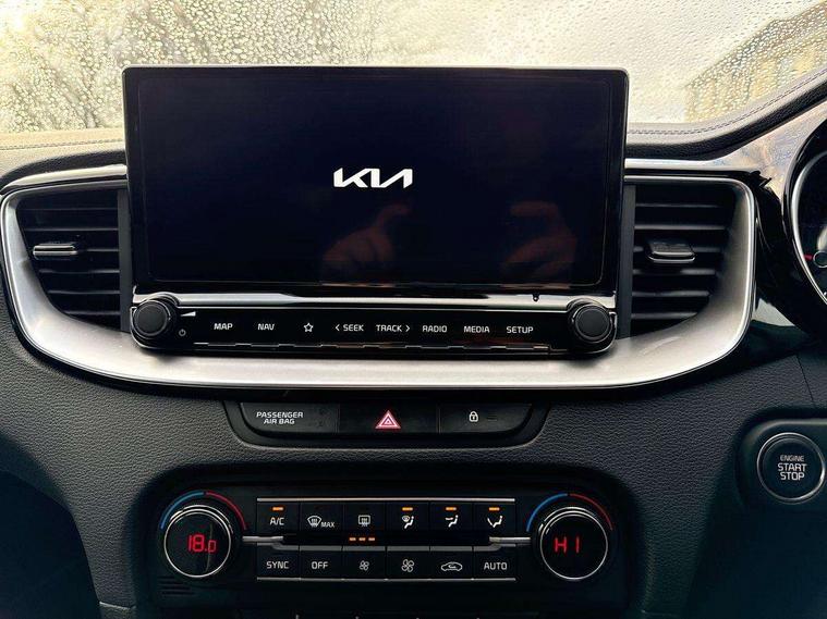 10.25" touchscreen satellite navigation, 4.2" supervision colour cluster display, Apple CarPlay and Android Auto, Bluetooth with Voice Recognition & Music Streaming, Drive mode select (Normal and Sport), Driver attention warning, Emergency call service, Forward Collision-Avoidance Assist (FCA) 1.5 - City/Pedestrian/Cyclist/Junction turning, Intelligent speed limit assist, Lane Follow Assist 1.0, Lane keep assist, Motor driven power steering, Rear parking sensor, Reversing camera with dynamic guide lines, Smart cruise control with stop and go functionality, Speed limiter, Tailgate, Trip computer, Intelligent Stop and Go, 7 speakers, DAB Radio with MP3, Front USB port for media connection, Steering wheel mounted controls, All-round Electric Windows with Auto Up & Down Function, Auto dimming rear view mirror, Automatic defog system, Automatic headlights, Black side sill mouldings with chrome inserts, Black wheel arch trim, Body colour bumpers, Body colour exterior door handles, Body colour rear roof spoiler, Body coloured door mirrors, Body coloured shark fin antenna, Electrically folding, adjustable and heated door mirrors with integrated LED indicator lights, Front and rear silver skid plates, Heated rear window, High beam assist, LED daytime running lights, LED front fog lights, LED Headlights, LED High-mounted Brake Light, LED rear fog light, LED rear lights, Matt black and satin chrome radiator grille, Privacy glass - Rear windows and tailgate, Rain sensing front wipers, Rear side wing doors, Rear wiper, Silver roof rails, Silver window surround, Smaller XCeed badge on rear left hand tailgate, Tinted glass, Variable front intermittent wipers, Wide view drivers door mirror, Windscreen Washer Level Warning, 3 seat bench in 2nd row, 60/40 split folding rear seat, All-round height adjustable headrests, Automatic air conditioning, Centre Console with Storage Box and Sliding Armrest, Chrome interior door handles, Cloth/faux leather upholstery, Cupholders in centre console, Driver + front passenger electric lumbar support, Driver and passenger front seat pockets, Driver's seat height adjuster, Faux leather door trim, Faux leather gearshift, Front and luggage area 12V power sockets, Front and rear cabin lights, Front and rear door storage, Front passenger 1 x USB-C charging port, Front Passenger Seat Height Adjuster, Glovebox, Heated front seats, Heated steering wheel, Illuminated driver and front passenger sunvisors with vanity mirror, ISOFIX Child seat top tethers and anchor fixings outer rear seats, Leather steering wheel, Luggage area parcel shelf, Luggage compartment light, Luggage hooks, Manual steering wheel adjustment, Rear centre armrest with cupholders, Rear passenger 1 x USB-C charging port, Single front passenger seat, All round 3-point seatbelts, Anti-Lock braking system with emergency stop signalling, Dual horn, EBD + Brake Assist, Electronic parking brake with auto hold function, Electronic stability control (ESC) and vehicle stability management (VSM), Front passenger airbag cut off switch, Front, side and curtain airbags, Height adjustable front seatbelts, Hill start assist control (HAC), Impact sensing auto door unlocking, Rear door child safety locks, Seatbelt reminder warning, Traction control, Tyre pressure warning system, Customisable automatic door locking, Customisable automatic door unlocking, Engine Start/Stop Button with Smart Entry System, Locking wheel nuts, Smart key with motion sensor, Thatcham category 2 security alarm and immobiliser, Visible vehicle identification number, 18" Alloy wheels, Tyre mobility kit,