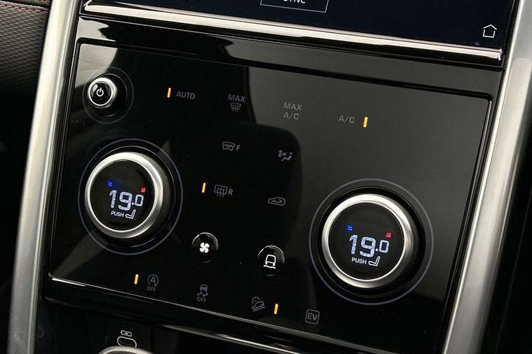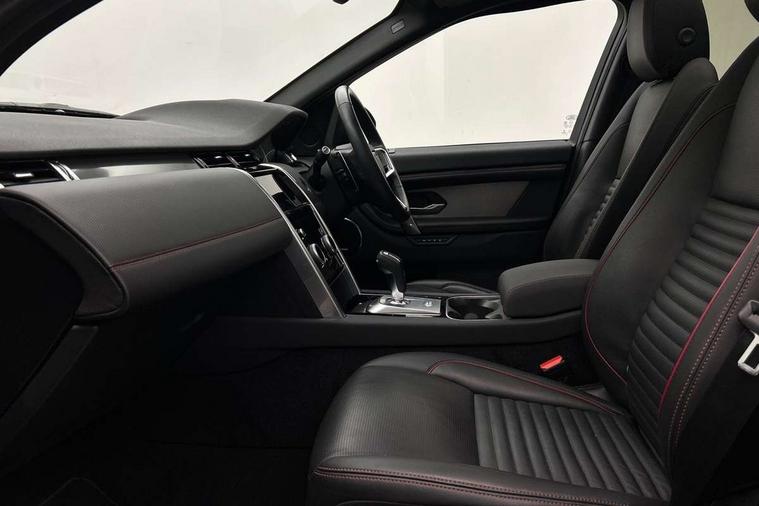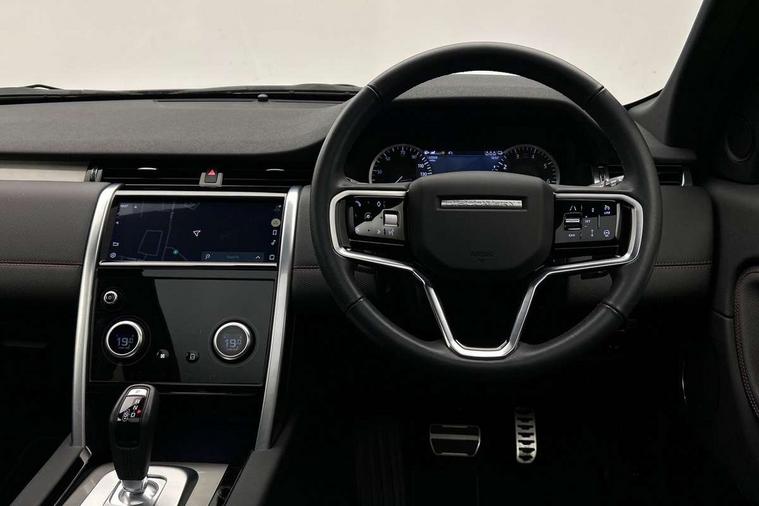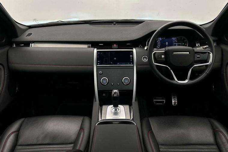 10" touch screen, Adaptive cruise control, Android Auto, Apple CarPlay, Blind spot assist, Clear exit monitor, Driver condition monitor, eCall emergency call system, Front and rear parking aid, InControl remote premium, Lane keep assist, Locking fuel flap, PAS, Pivi Pro connected navigation system with upgraded Infotainment, Powered tailgate/boot lid, Push button start, Rear collision monitor, Rear traffic monitor, Service interval indicator, Traffic sign recognition with adaptive speed limiter, Trip computer, Wade Sensing, 7 kW onboard charger, All terrain progress control, Coil suspension system, Dynamic stability control, Home charging cable, Public charging cable, Terrain Response 2, Bluetooth connectivity including audio streaming, Digital Audio Broadcast radio-DAB, Steering wheel mounted audio controls, 3rd brake light, Automatic headlight levelling, Automatic headlights, Electric front/rear windows, Electric heated/power fold door mirrors with approach lights and auto dimming driver side, Fixed panoramic sunroof with powered sunblind, Front and rear recovery eyes, Heated rear window, Heated windscreen including heated washer jets, Privacy glass, R Dynamic badge, Rain sensing windscreen wipers, Rear fog lights, Rear side wing doors, Rear wing door, Rear wiper, 5 seats, Bright metal pedals, Centre console with armrest, Footwell lights, Front and rear grab handles, Front passenger isofix child seat attachment, Loadspace cover, Loadspace light, Overhead lighting console, Overhead stowage for sunglasses, Rear headrests, Satin chrome gearshift paddles, Sunvisors with illuminated vanity mirrors, Tilt/reach adjustable steering wheel, Black exterior pack - Discovery sport R-Dynamic SE/HSE, Online pack with data plan - Discovery, 3 point seatbelts on all seats, ABS, Brake hold function, Child locks on rear doors, Collision mitigation braking system, Cornering brake control (CBC), Driver/Front Passenger airbags, Drivers knee airbag, Electronic brake force distribution, Electronic parking brake, Emergency brake assist, ESP + traction control, Hill descent control, Hill launch assist, Pedestrian airbag system, Rear seat ISOFIX, Roll stability control, Side and curtain airbags for front and 2nd row seats, Trailer stability control, Tyre pressure monitoring system, Battery Back Up System (BBUS) with tilt sensor, Global lock and unlock switch on driver door, Intrusion sensor, Keyless entry, Locking wheel nuts, Centre stack rails in noble chrome,